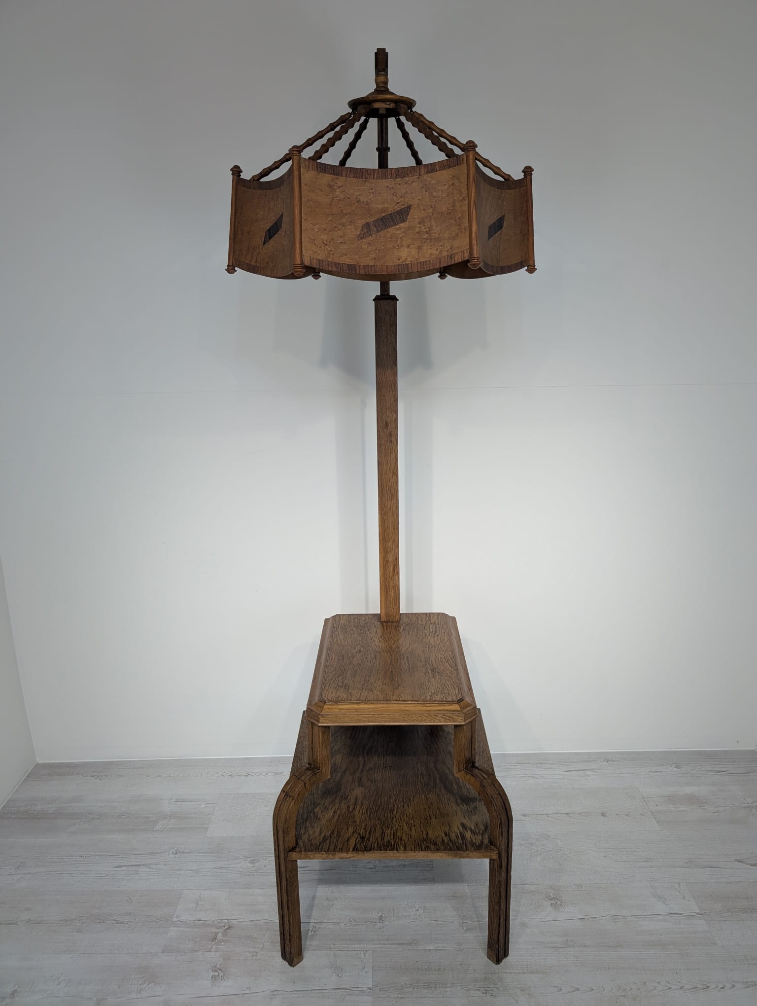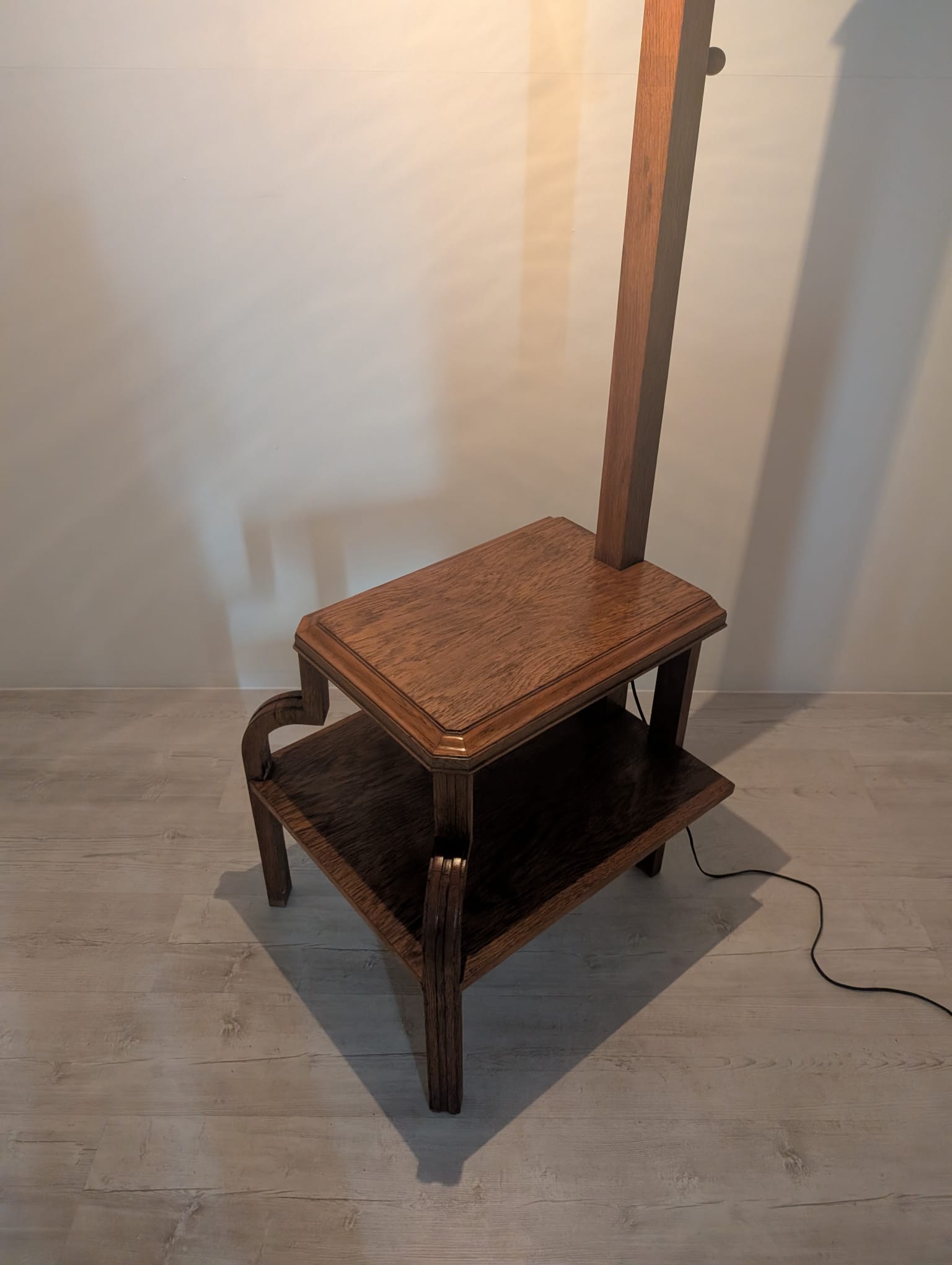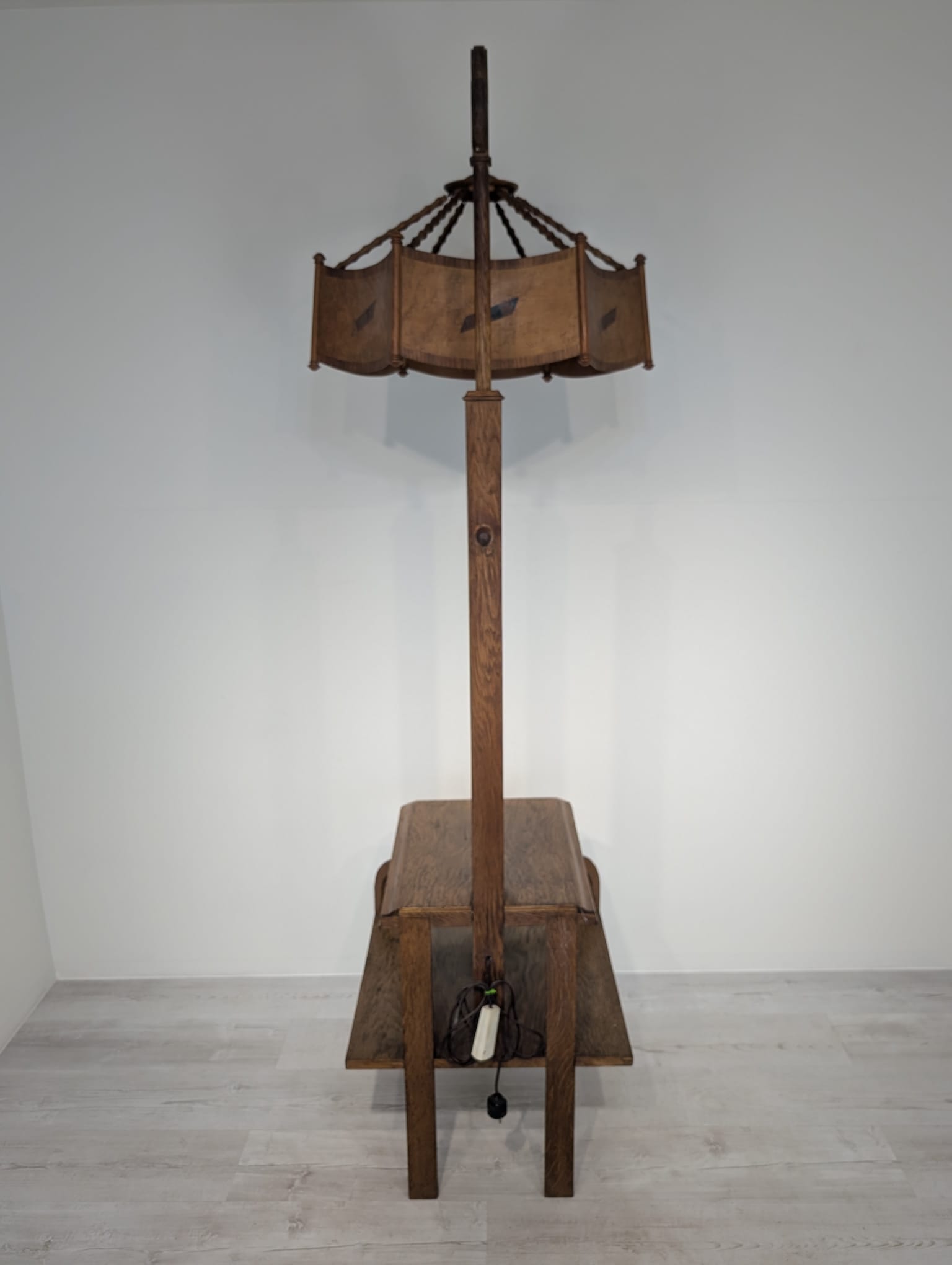 Floor lamp, nightstand with 1930s Art Deco oak table