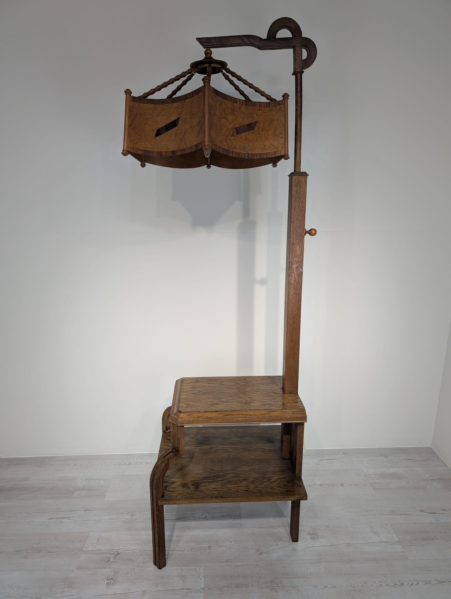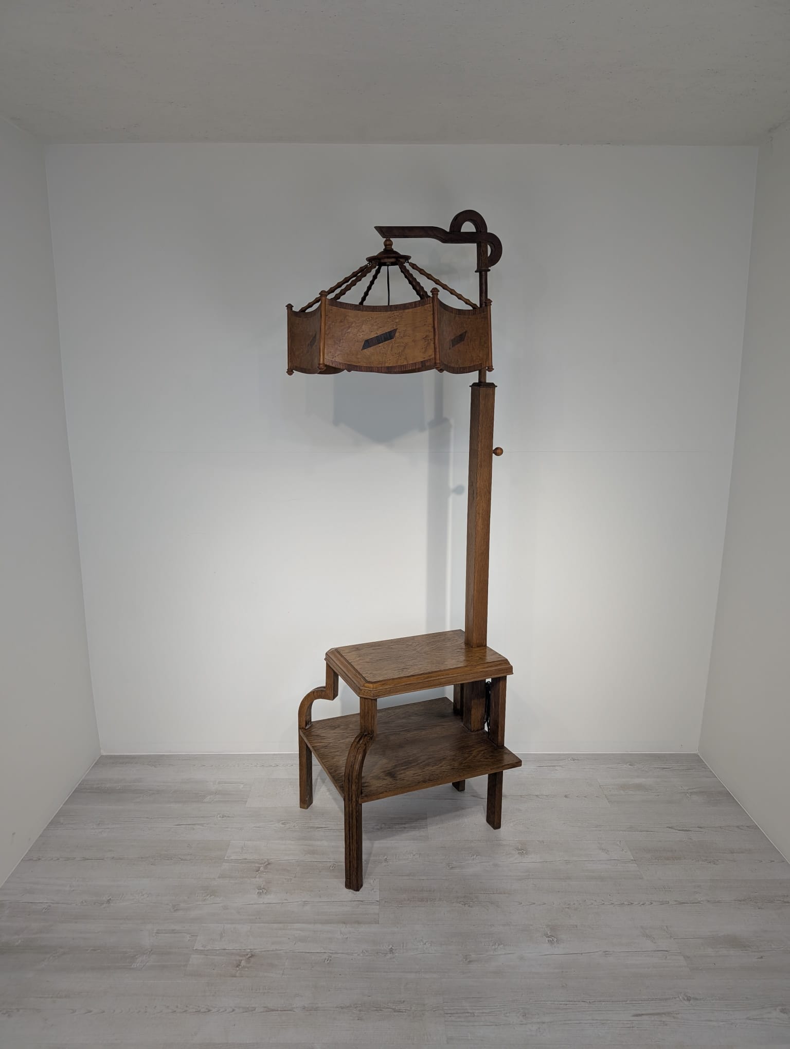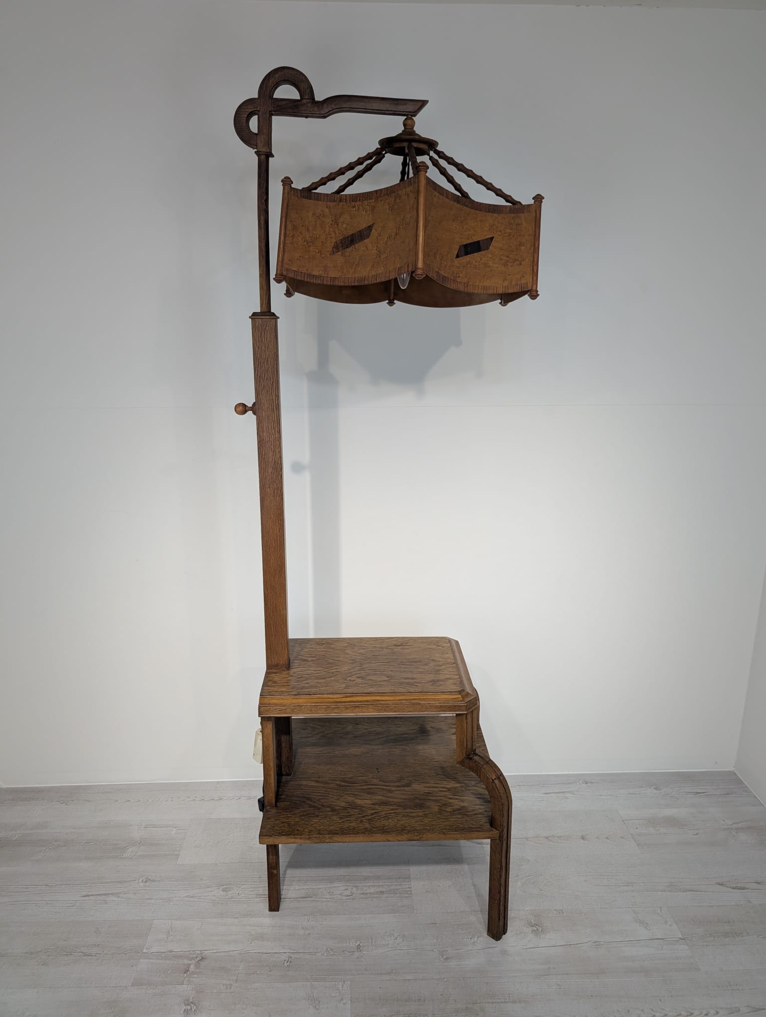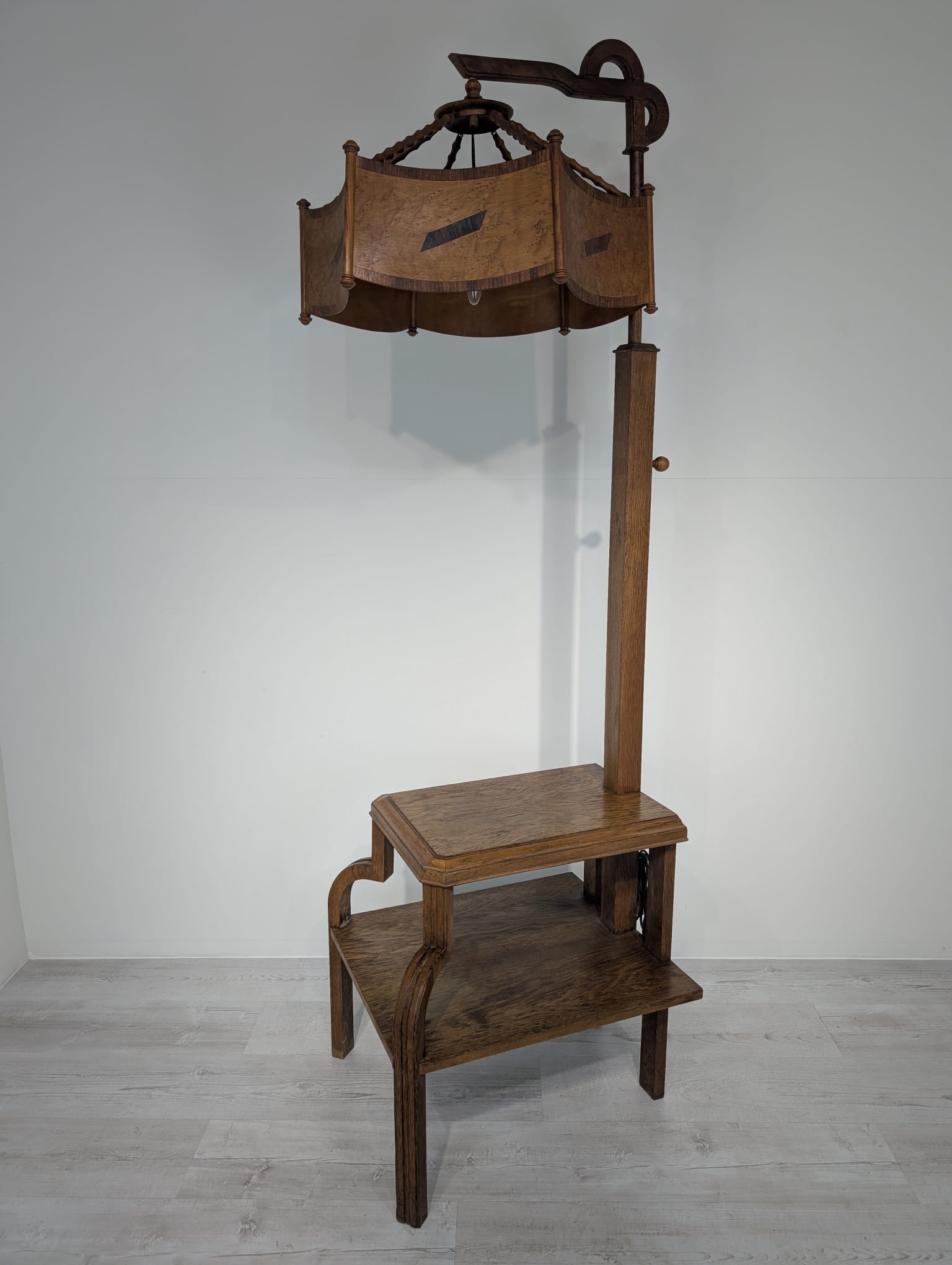 Floor lamp, nightstand with 1930s Art Deco oak table
