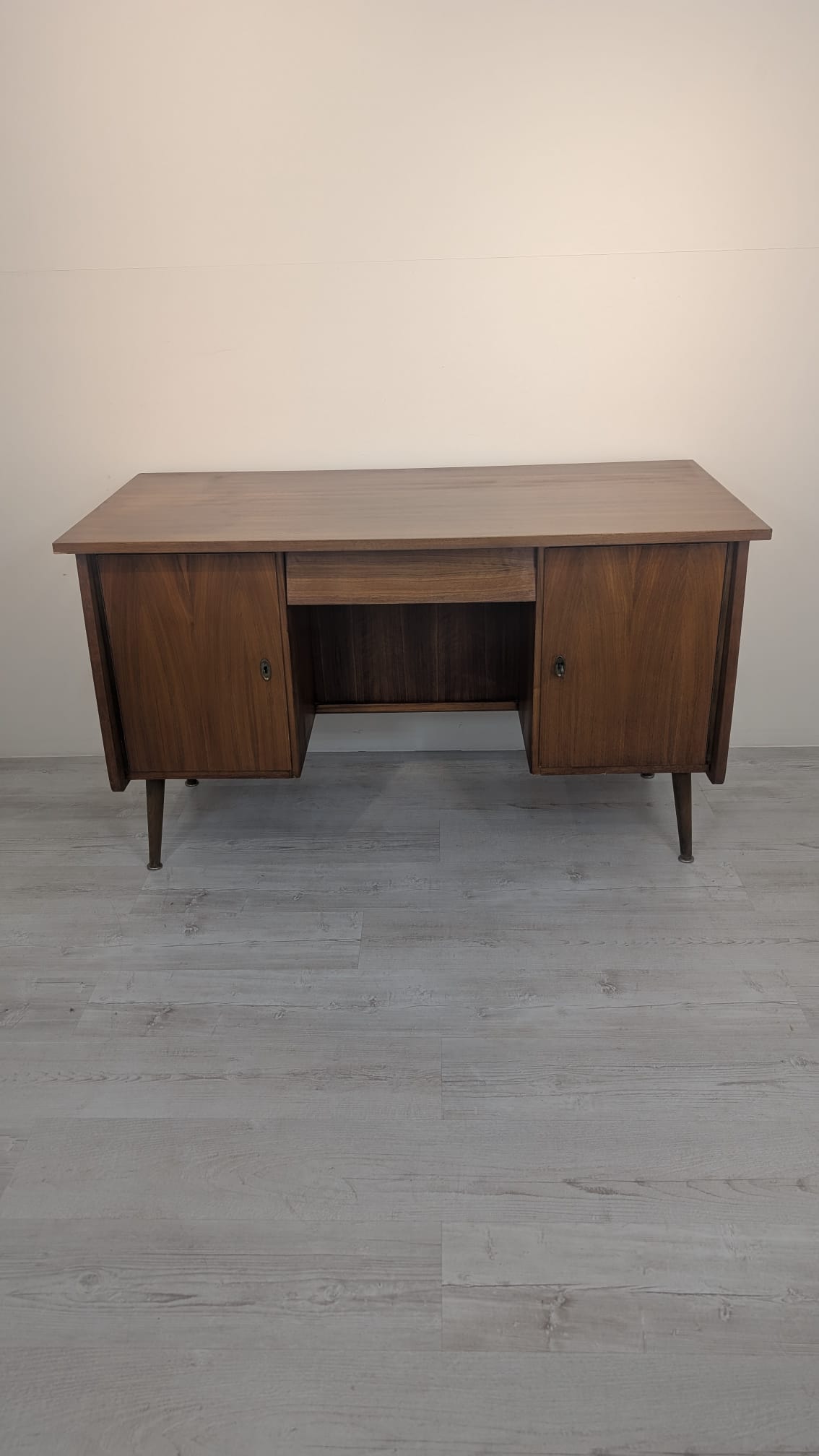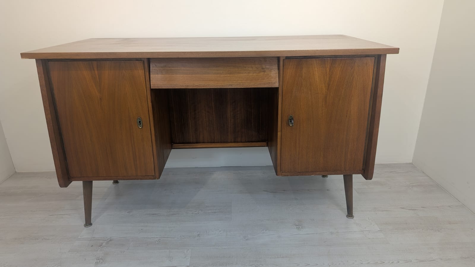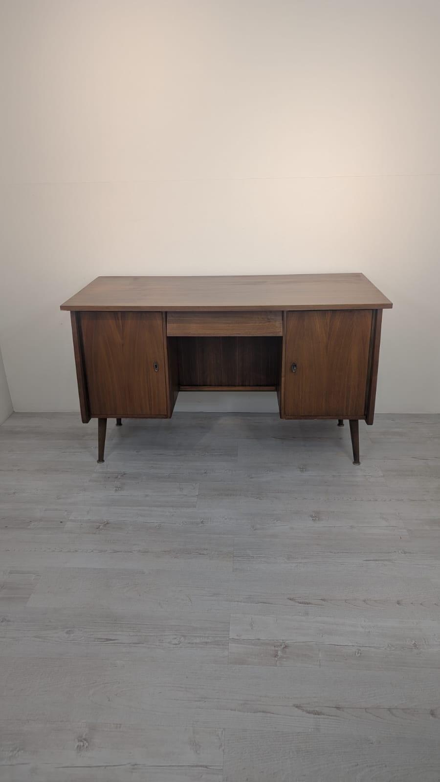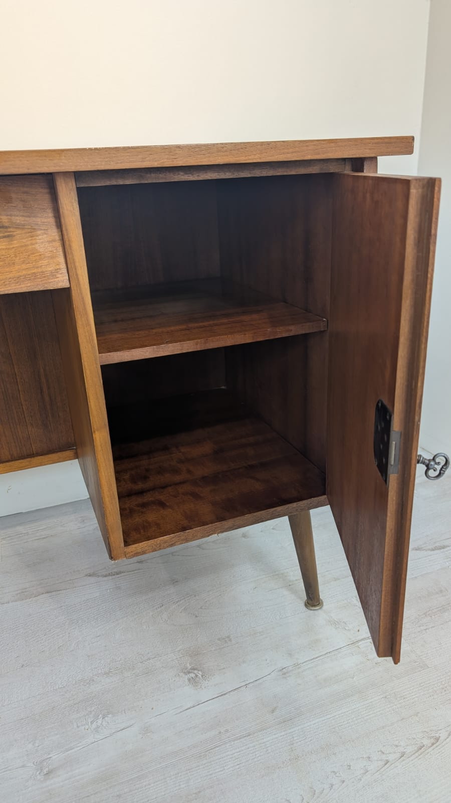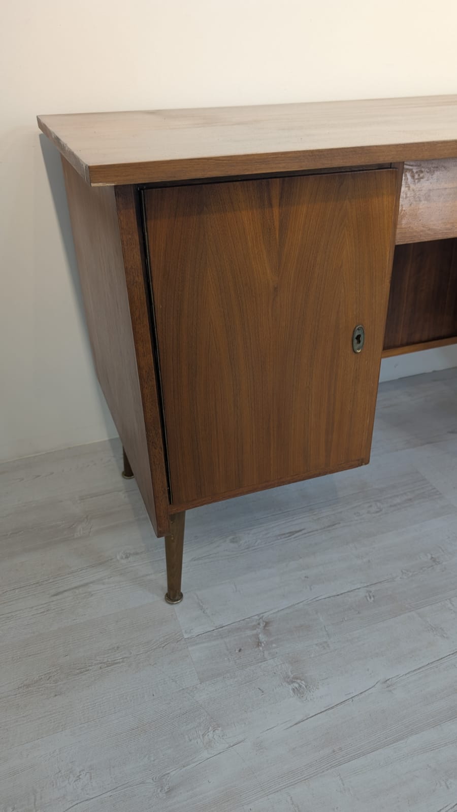 Desk has 1 key not original, one cabinet lacks a lock.