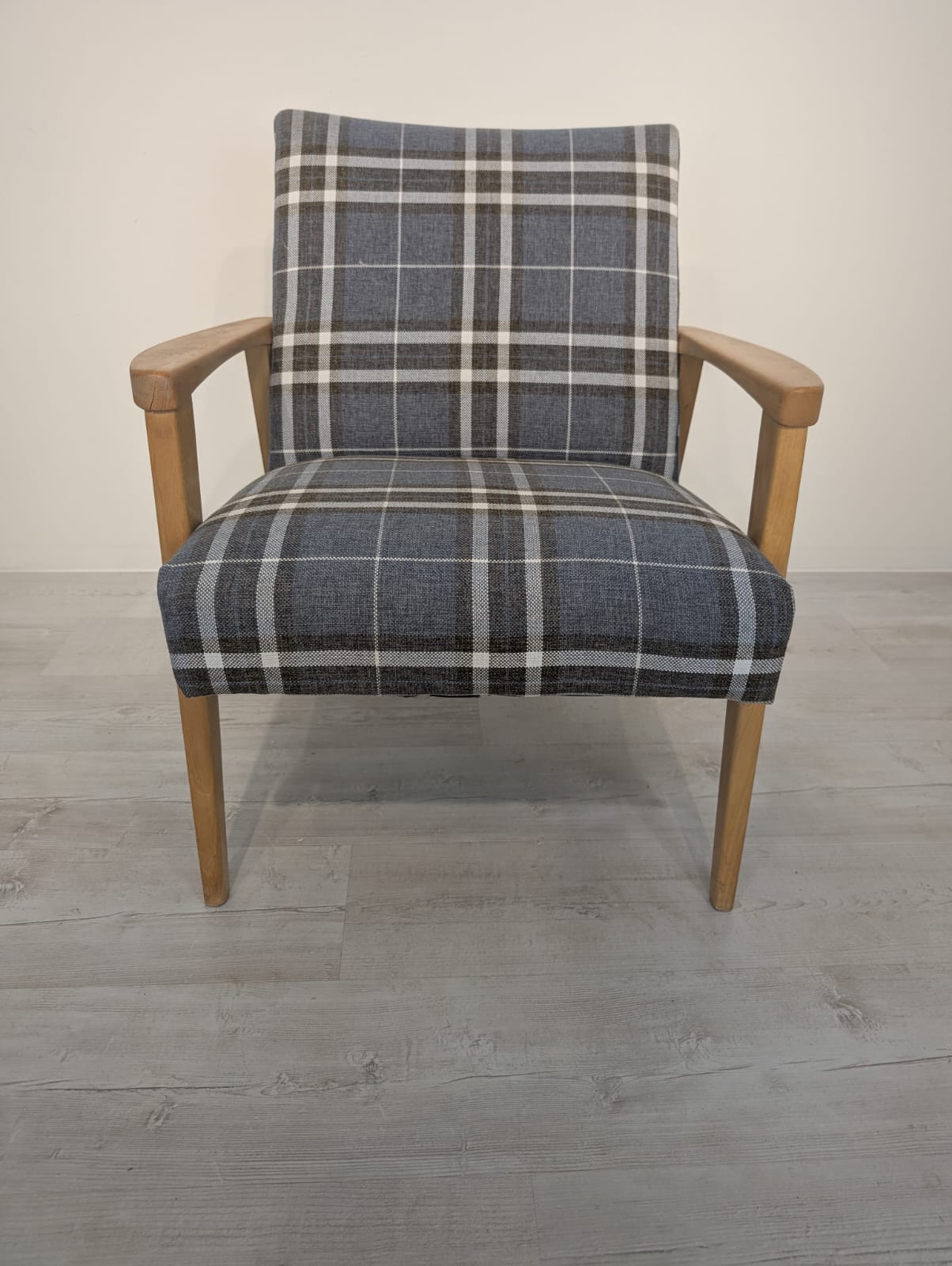 The armchair has new upholstery.