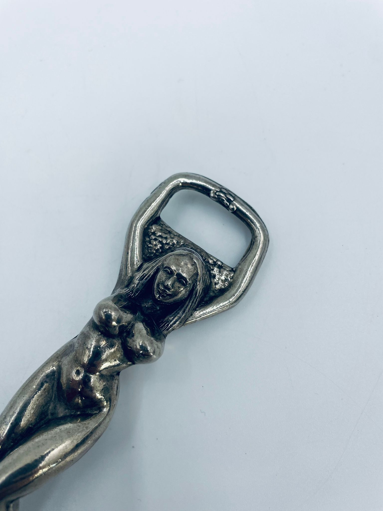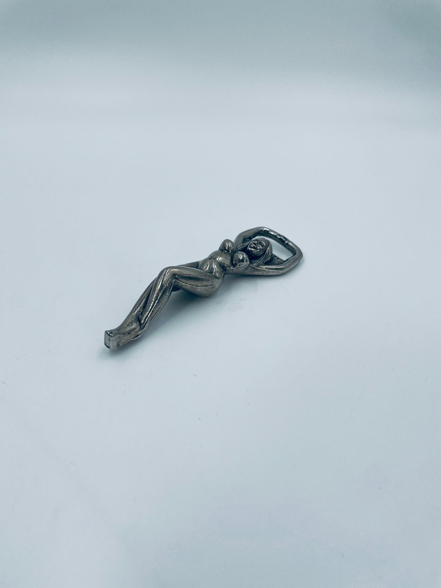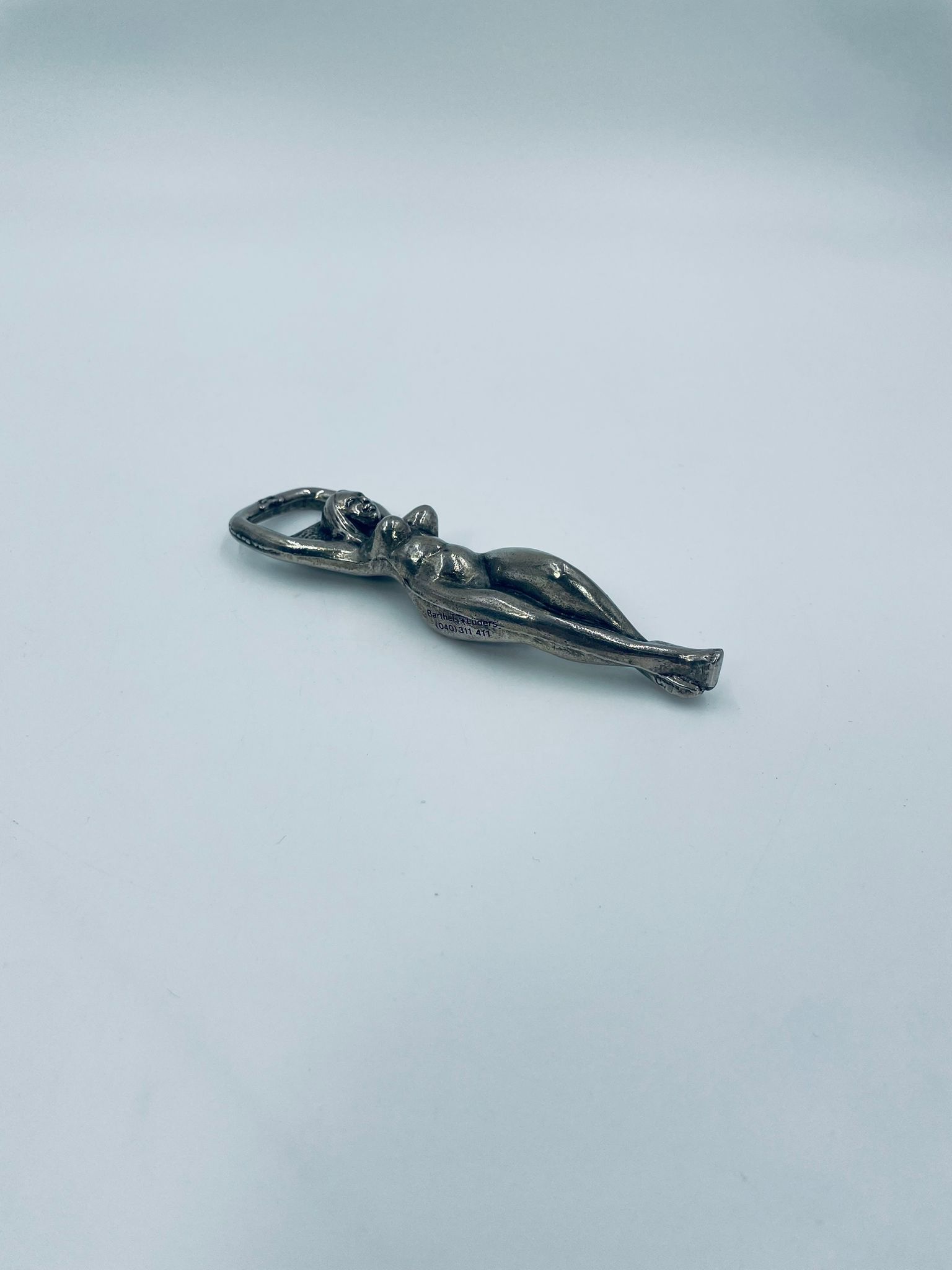 Antique bottle opener by Barthels+Luders , made of solid brass, patinated. Opener in the shape of a reclining woman.