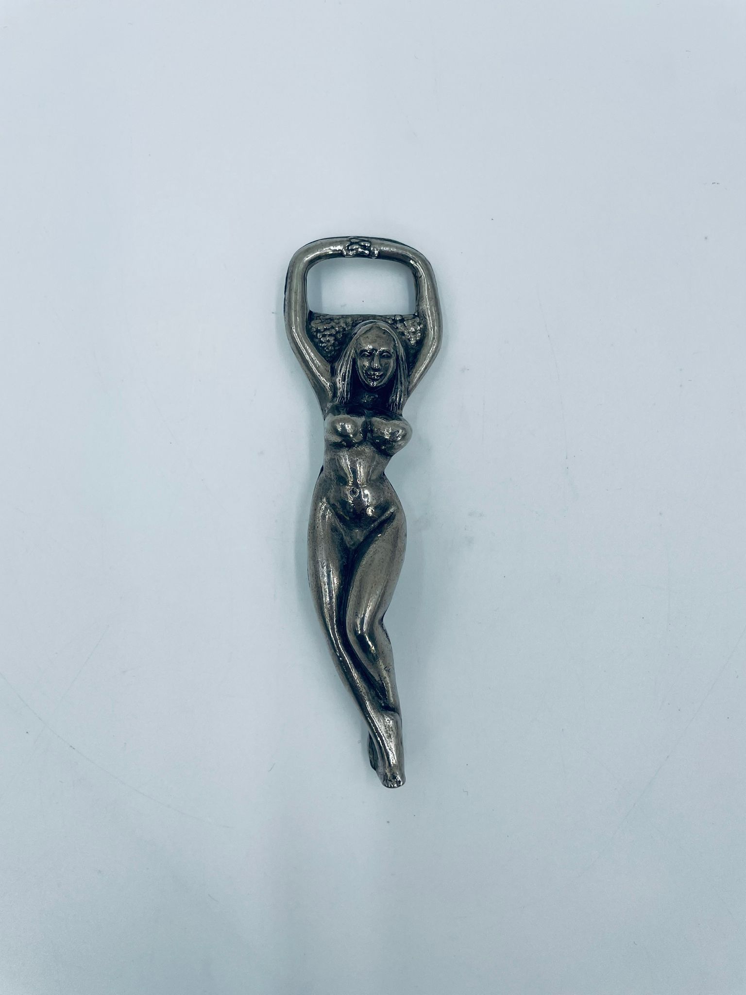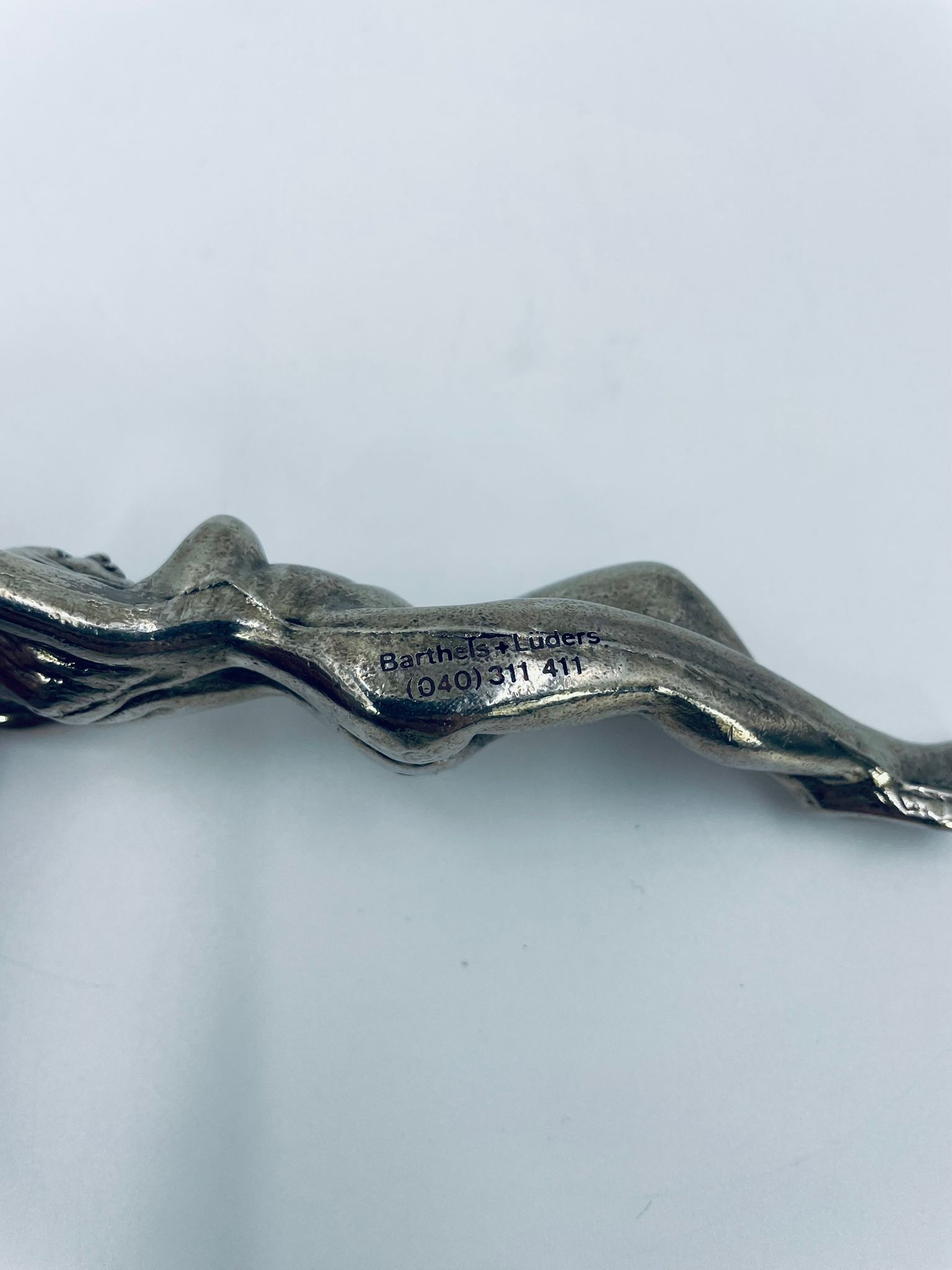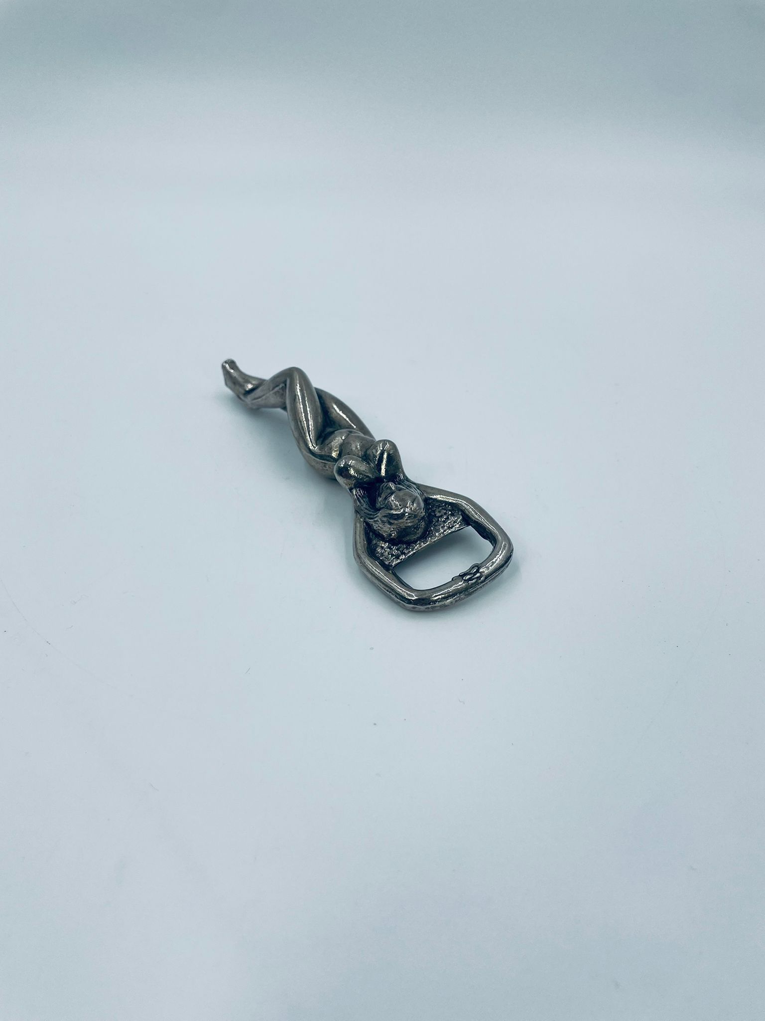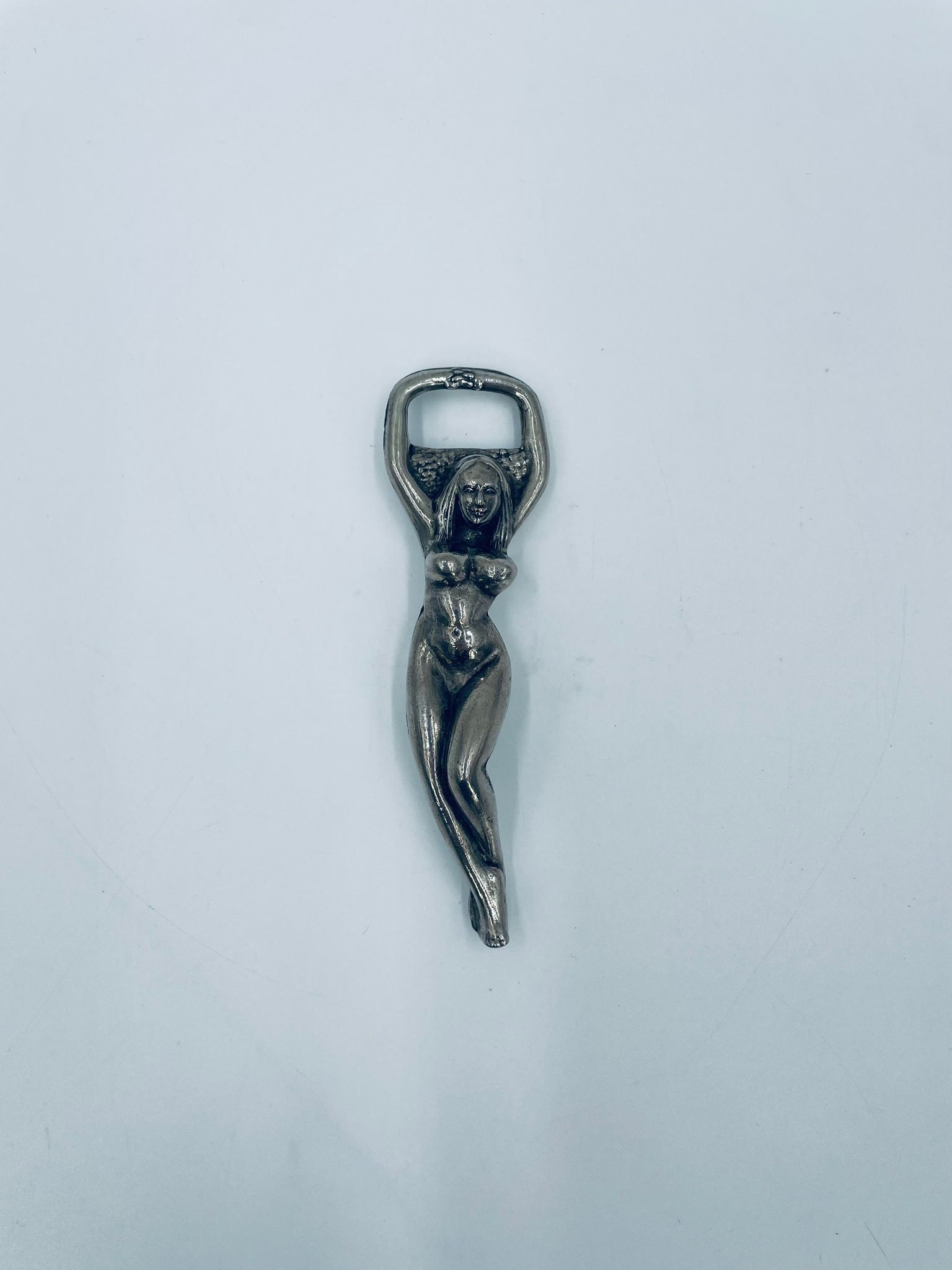 Antique bottle opener by Barthels+Luders , made of solid brass, patinated. Opener in the shape of a reclining woman.