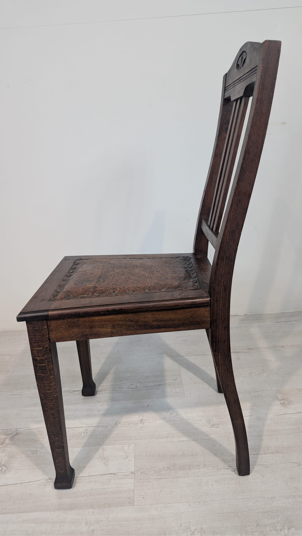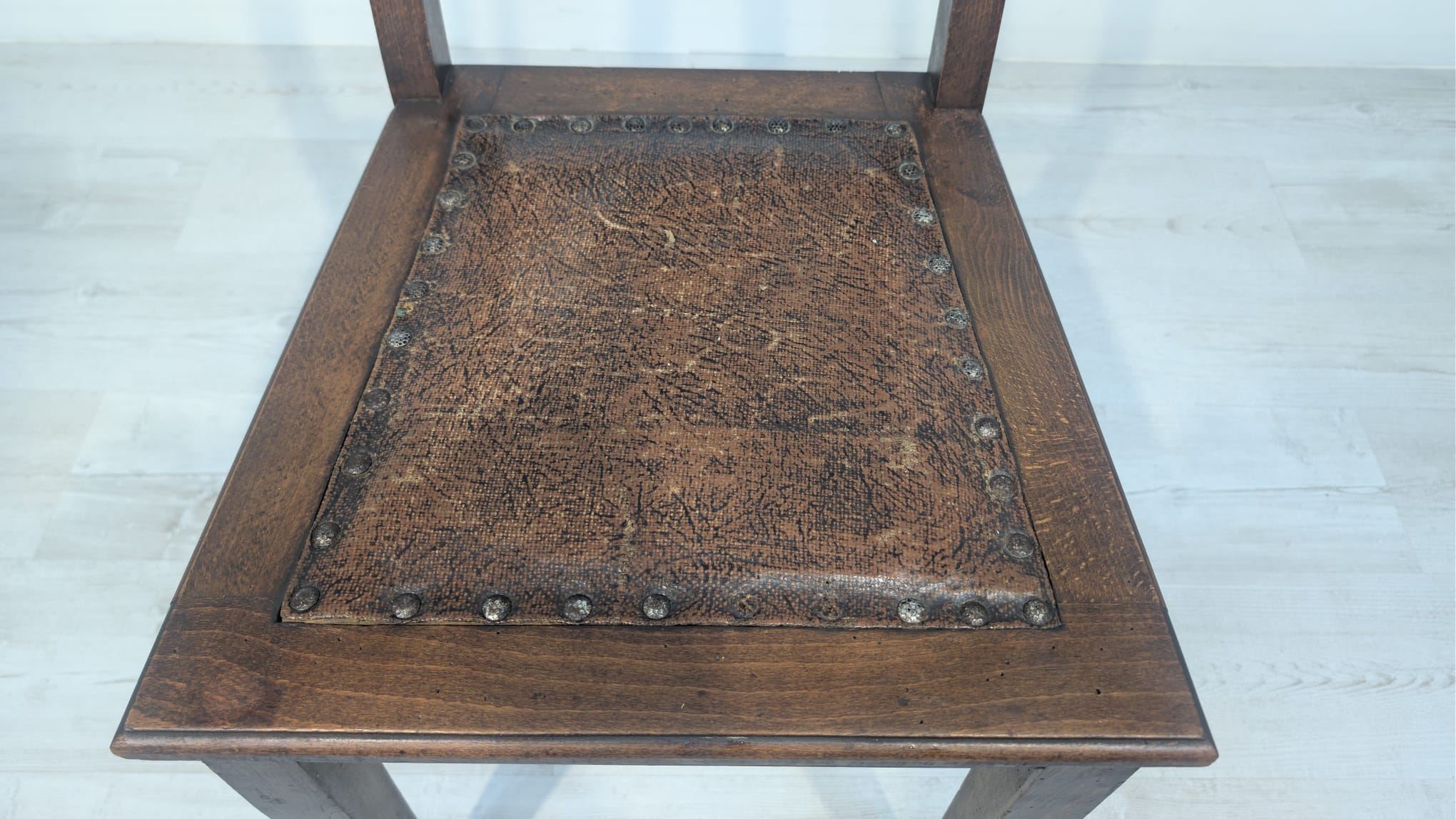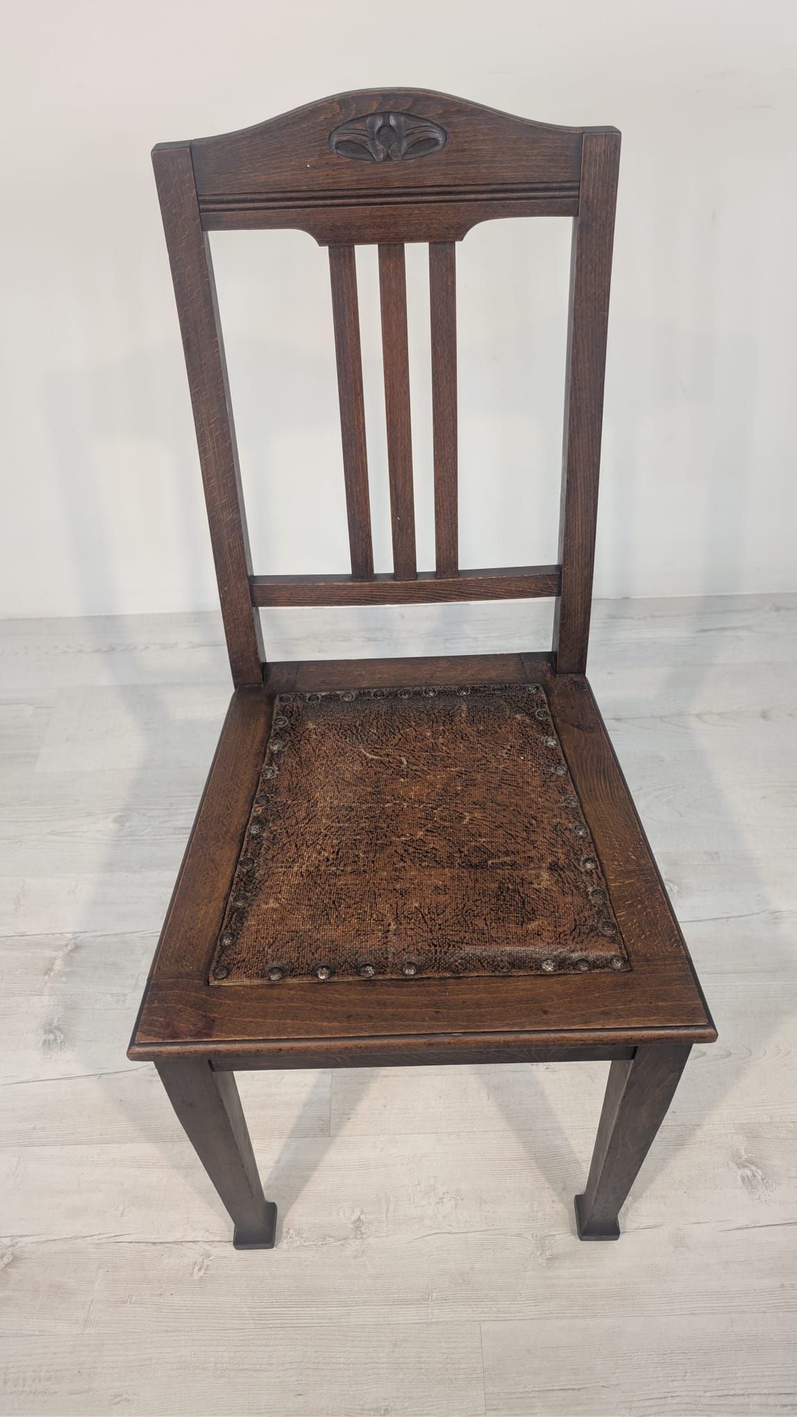 Antique old oak chair with natural leather