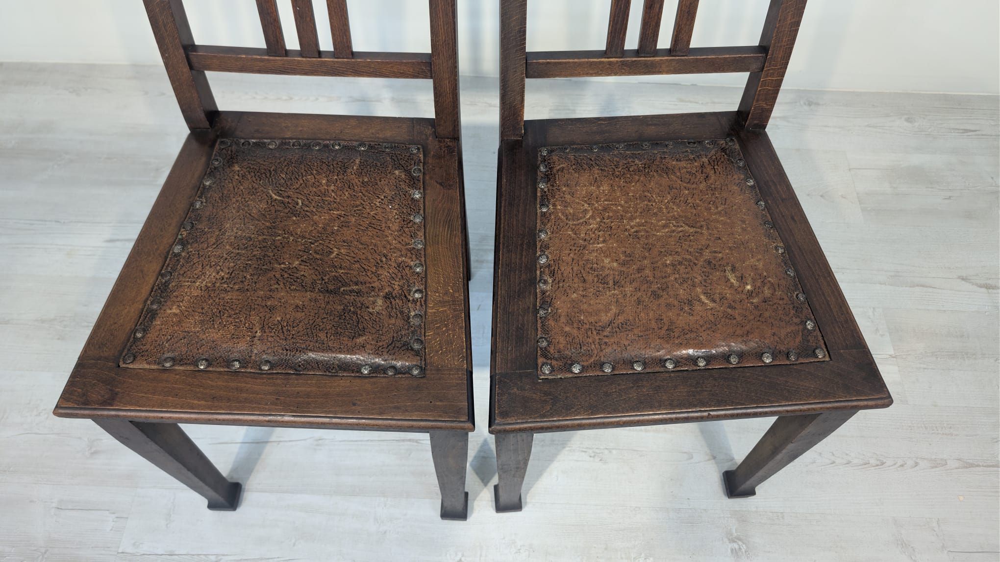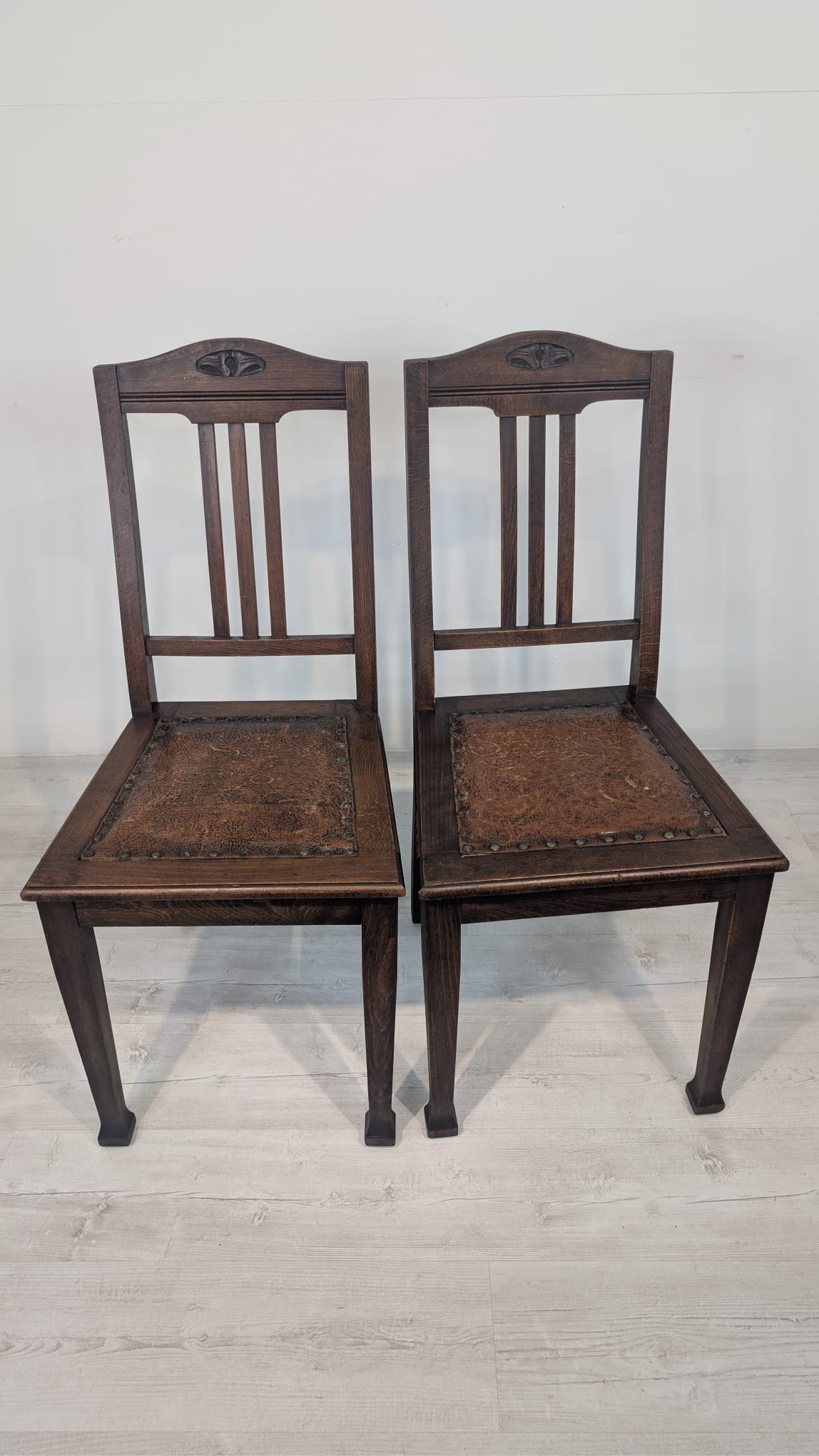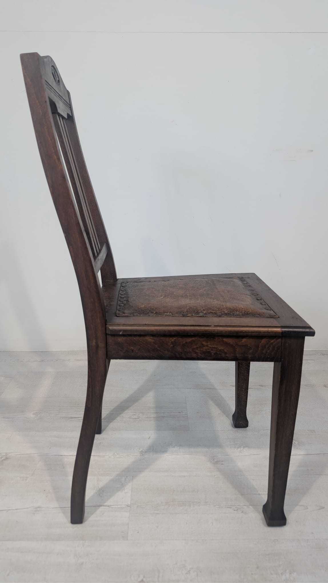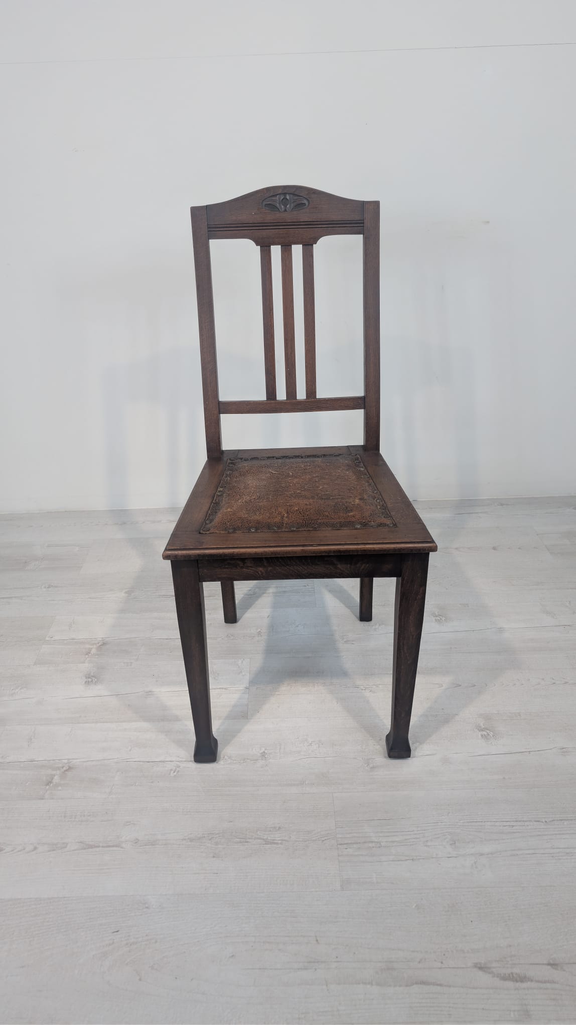 Antique old oak chair with natural leather
