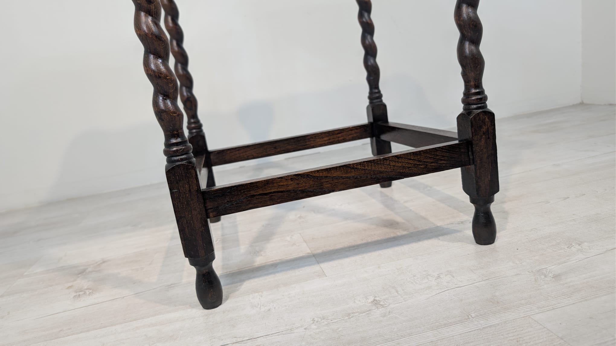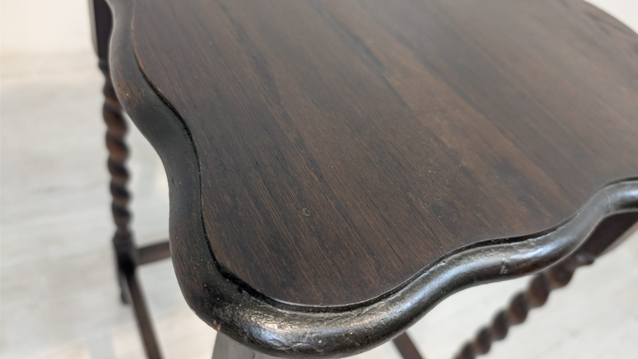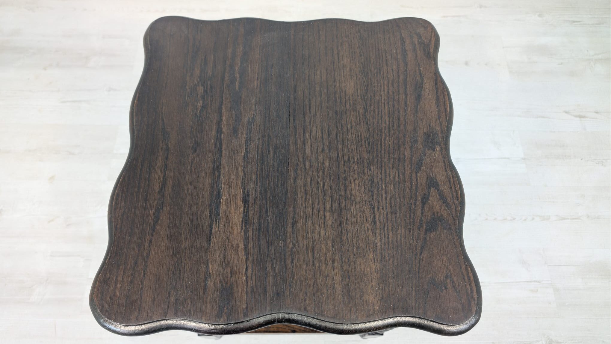 Stylowy, antyczny stolik w stylu Ludwika XIII z ręcznie rzeźbionymi nogami. Mebel posiada charakterystyczne dla tego okresu zdobienia i nadaje się do aranżacji wnętrz w stylu vintage.