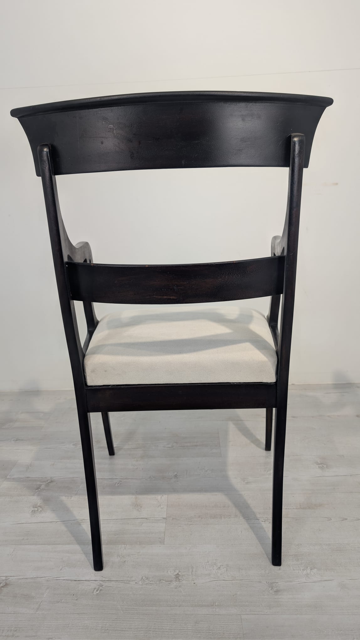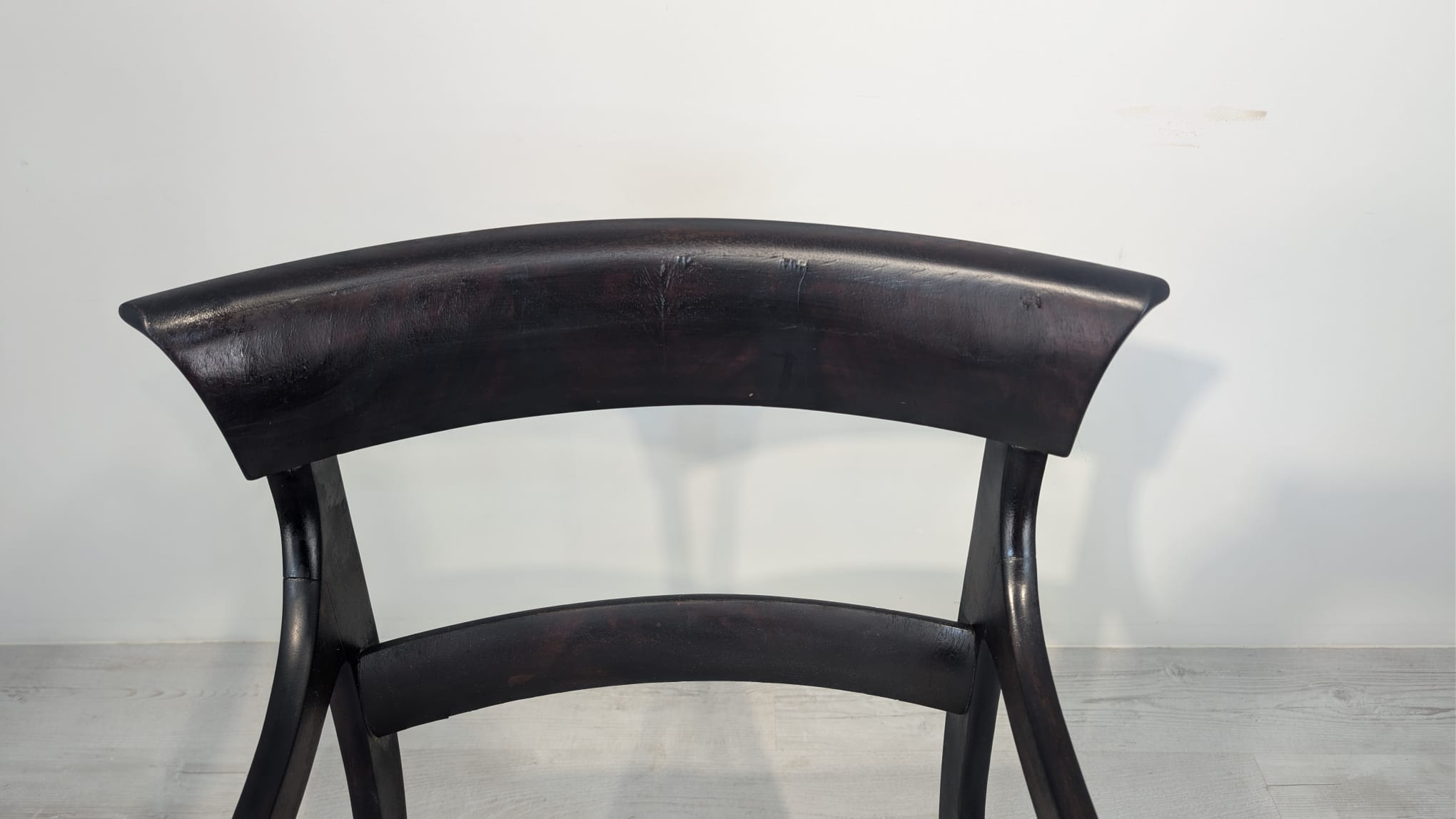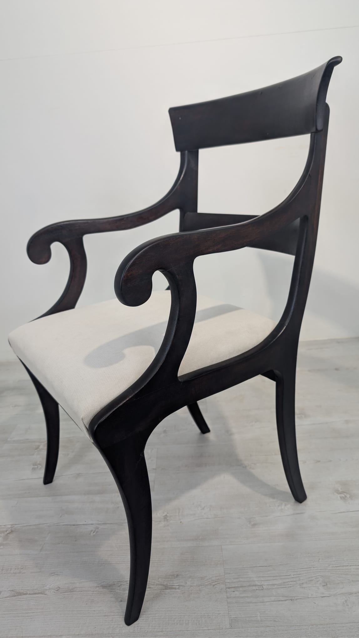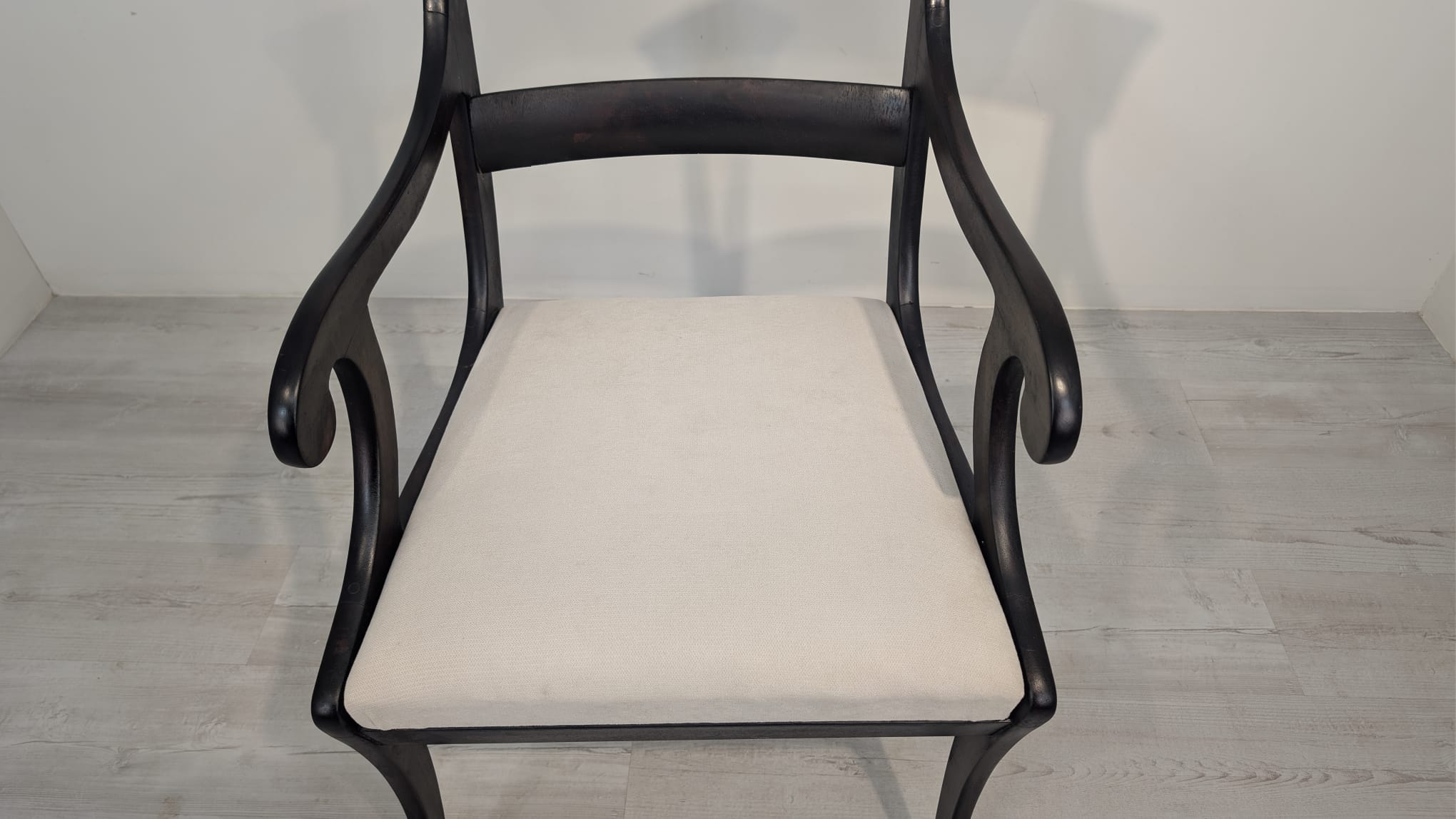 Stylowy fotel Biedermeier z początku XX wieku. Mebel w dobrym stanie, wykonany z drewna w ciemnym kolorze. Posiada charakterystyczne dla tego stylu łagodne, zaokrąglone kształty. Fotel będzie doskonałym dodatkiem do klasycznego lub vintage’owego wnętrza.