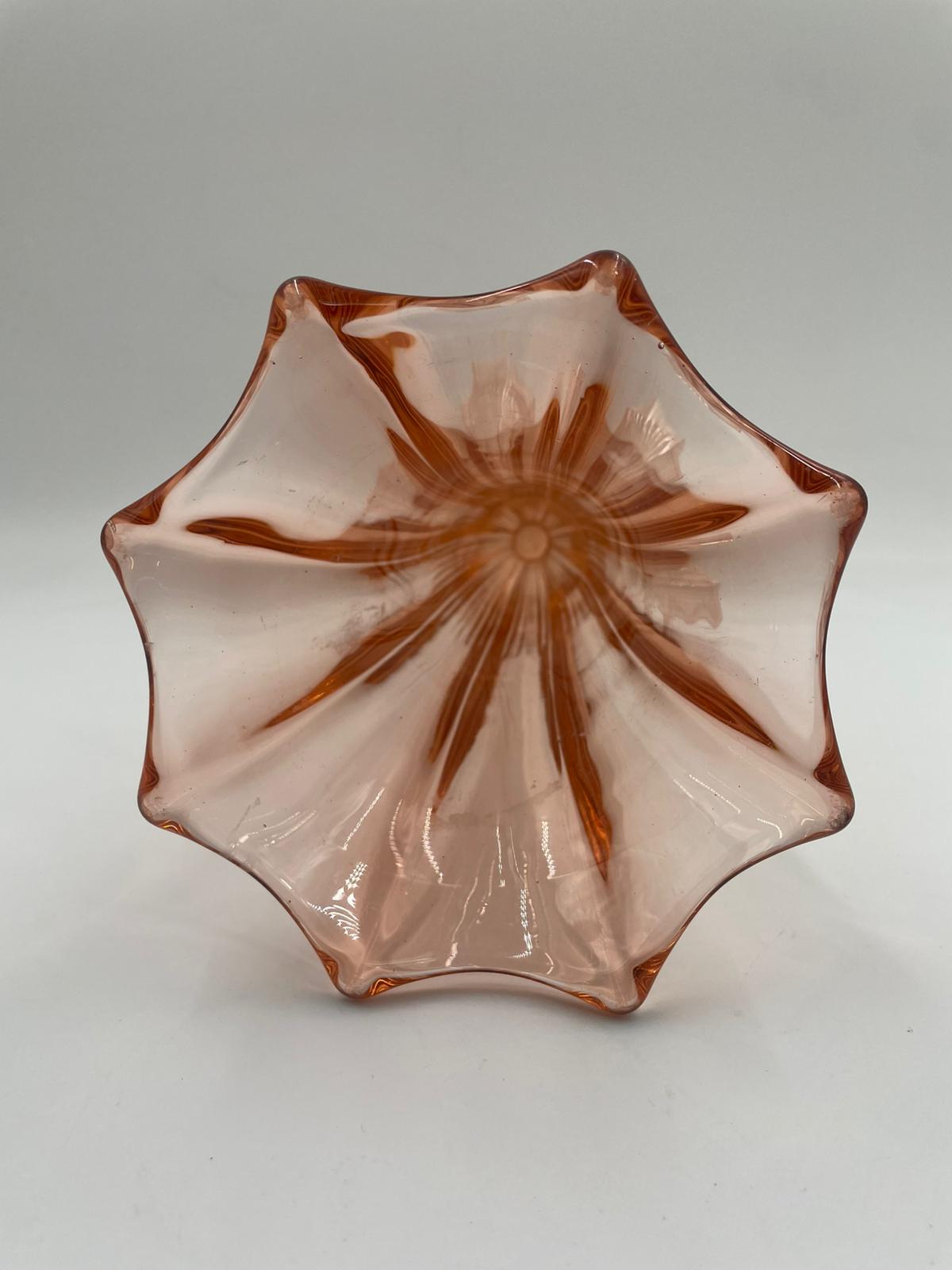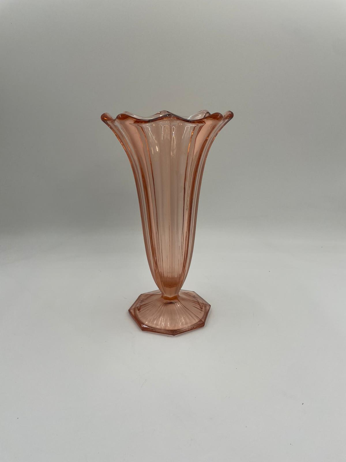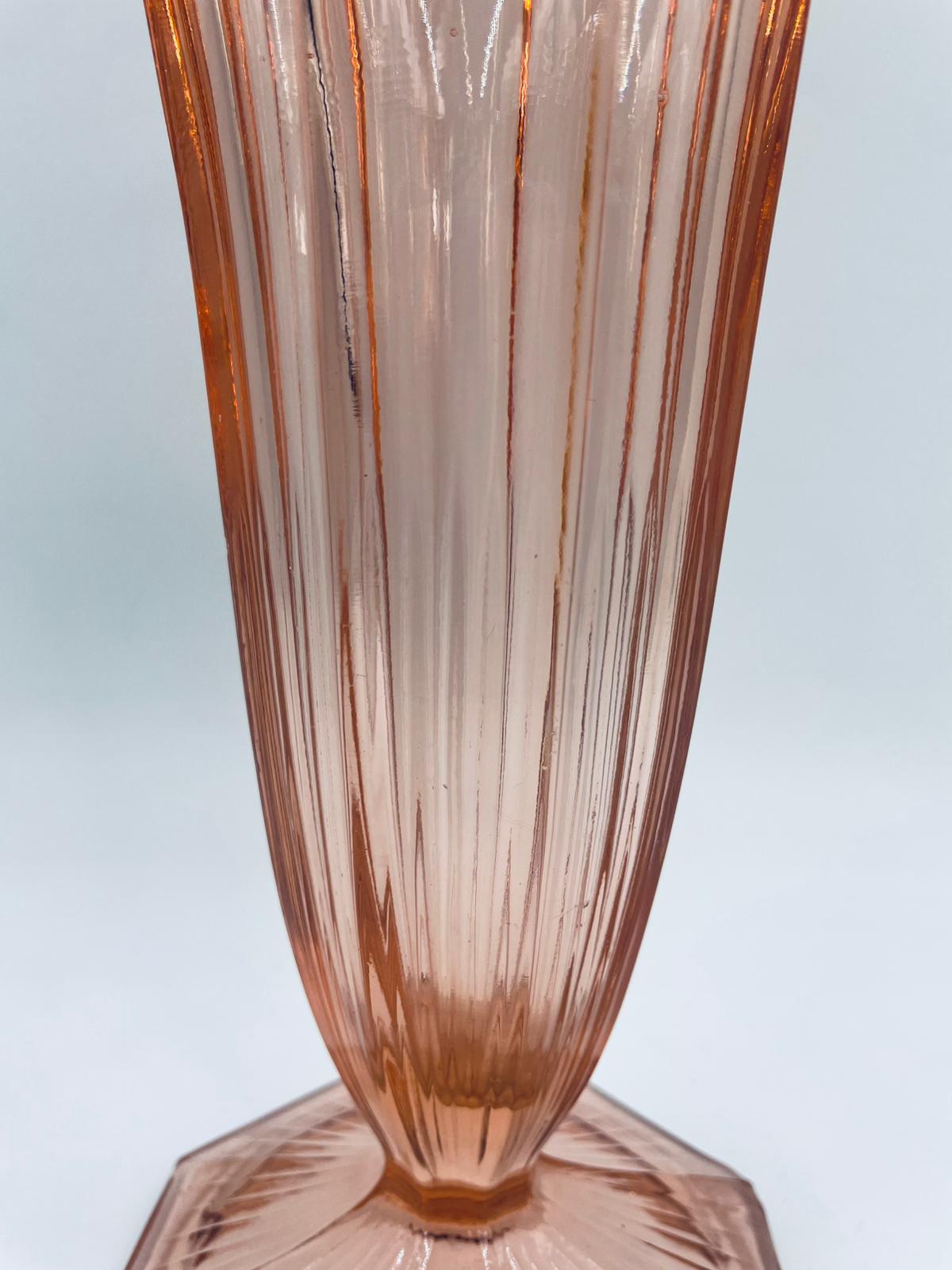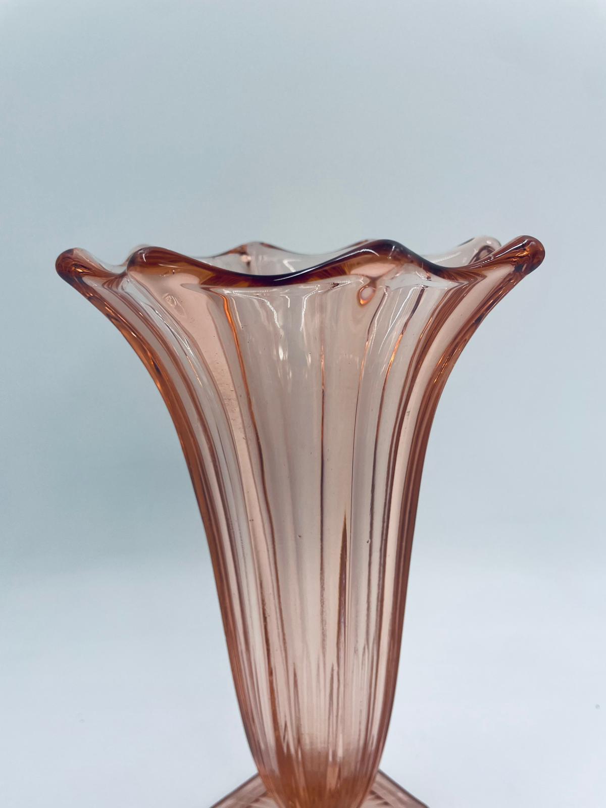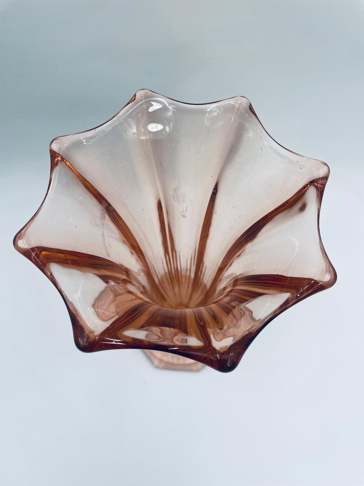 Rosaline vase also known as salmon-coloured. Art Deco style glass vase from the 1950s.