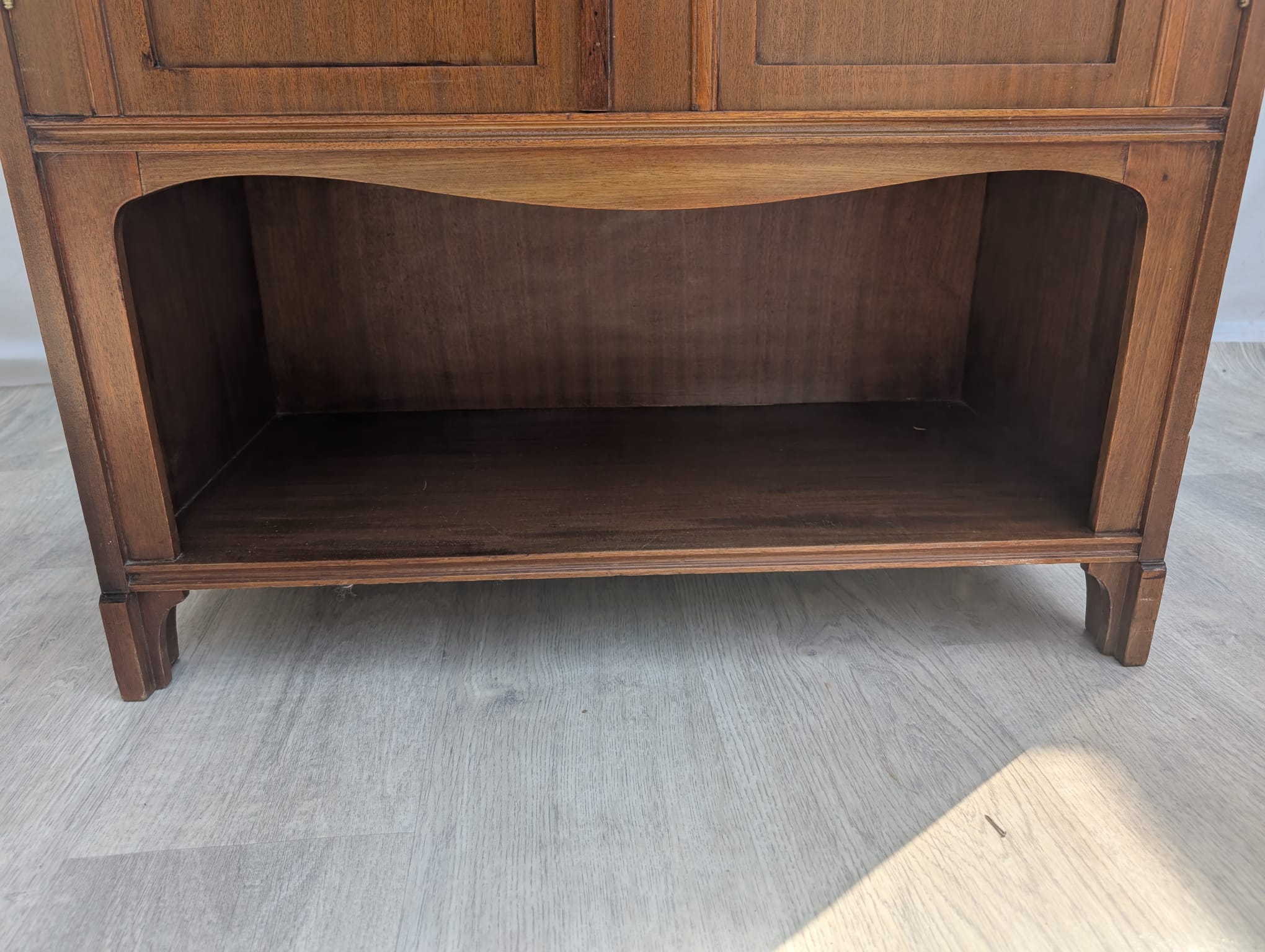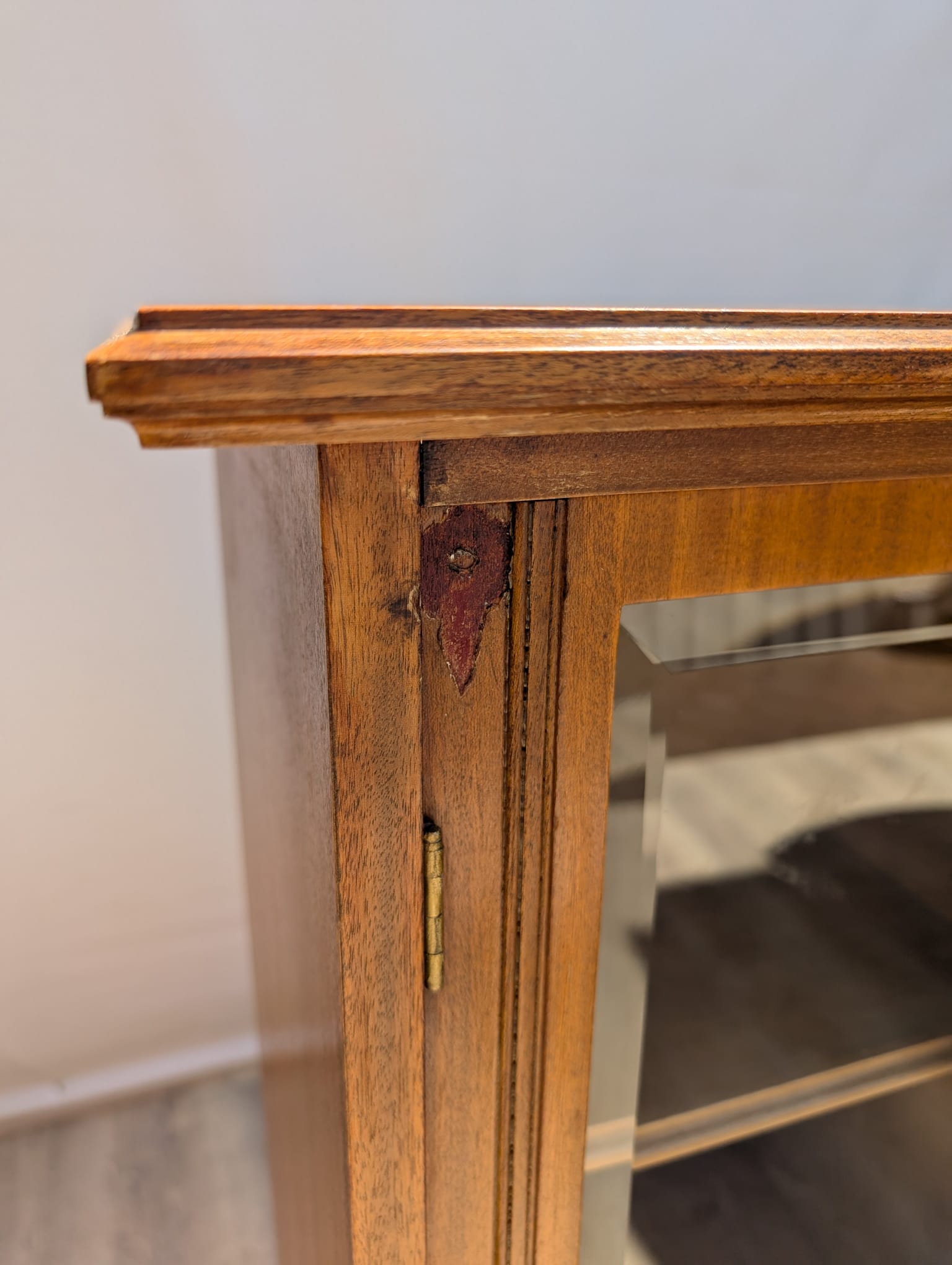 Art Nouveau display cabinet covered with walnut veneer.