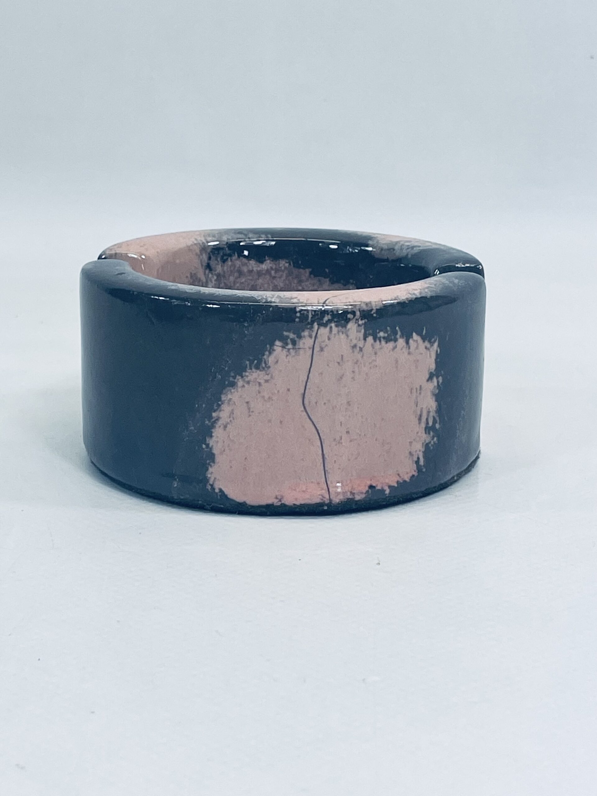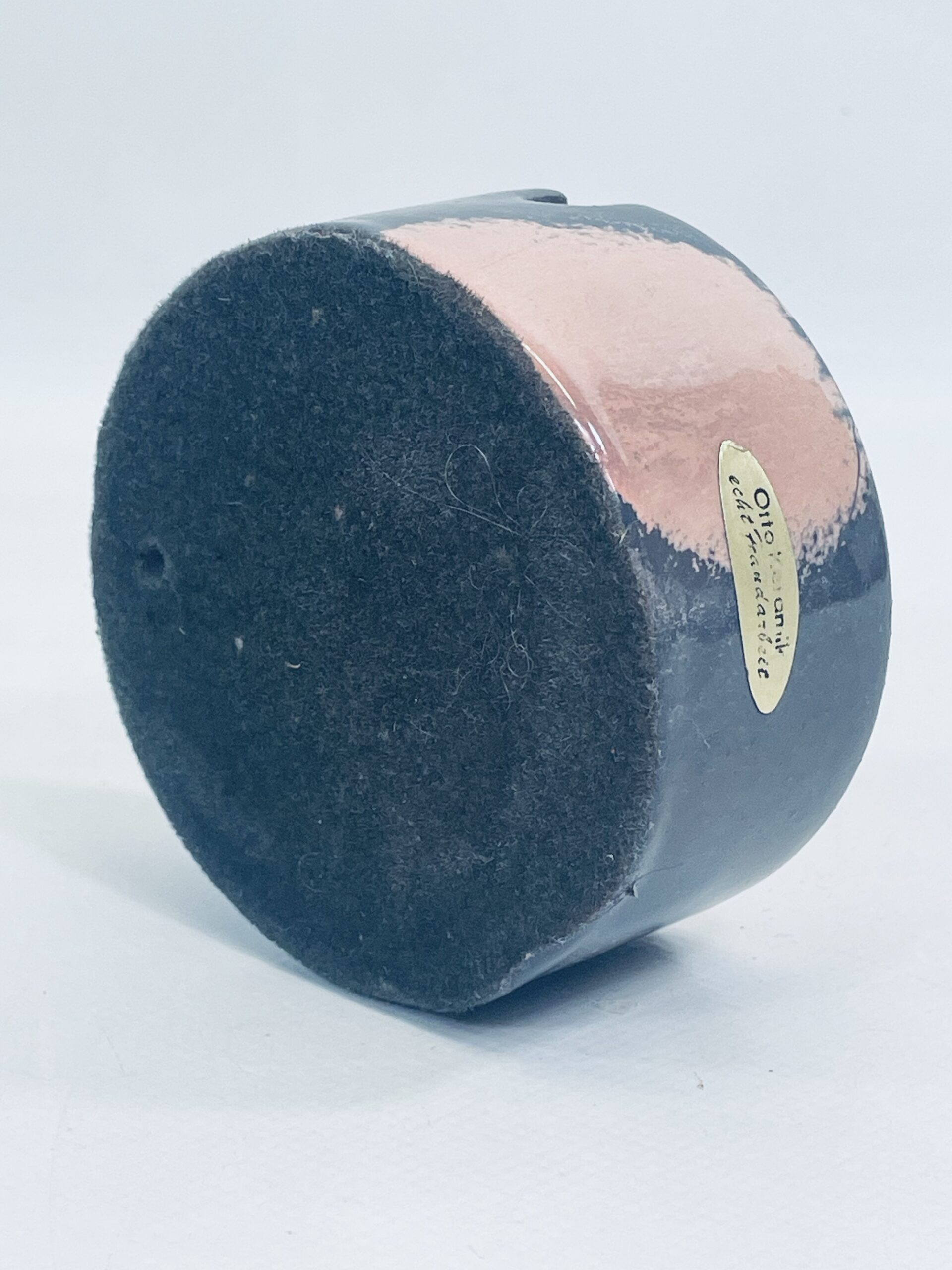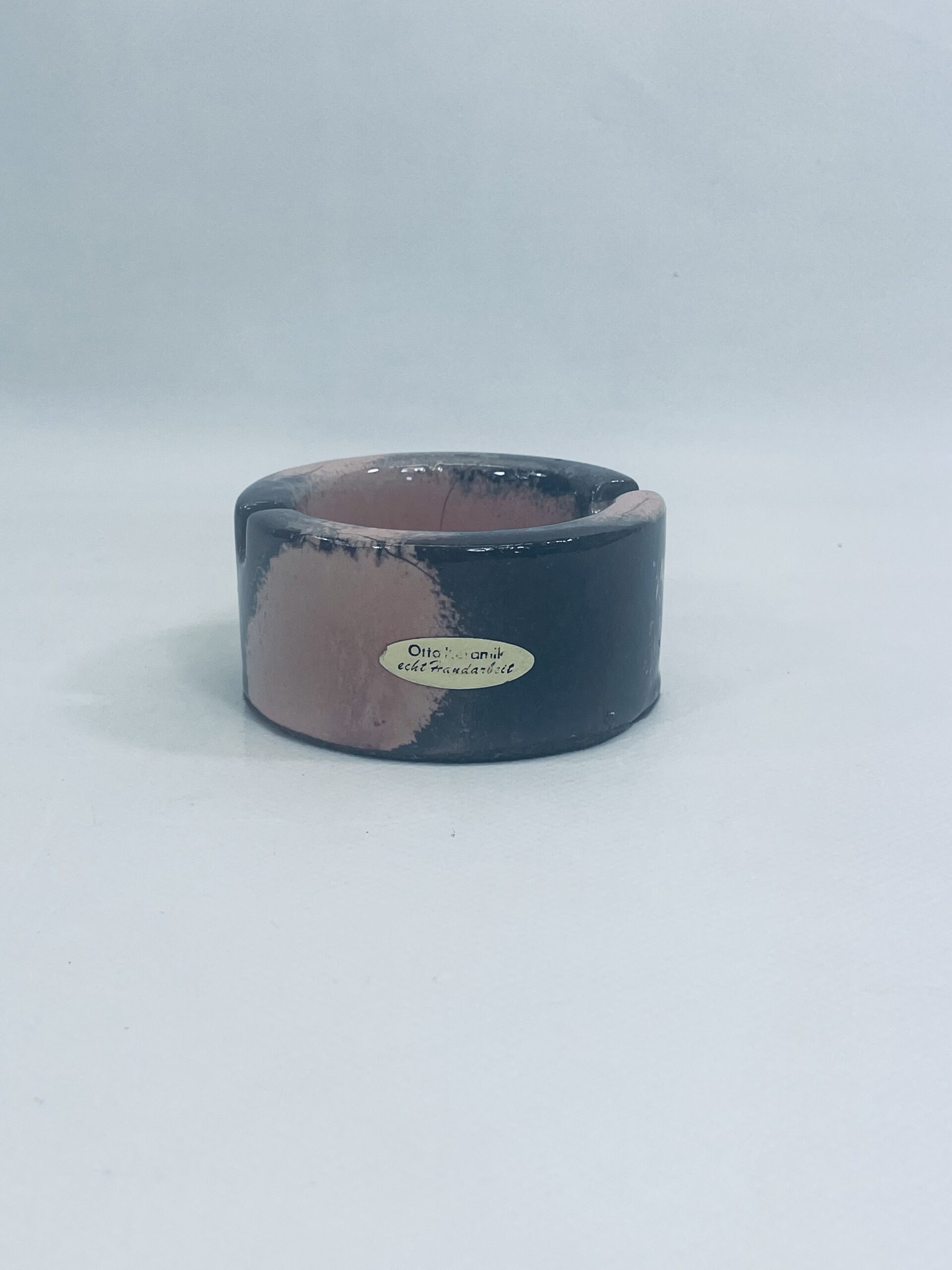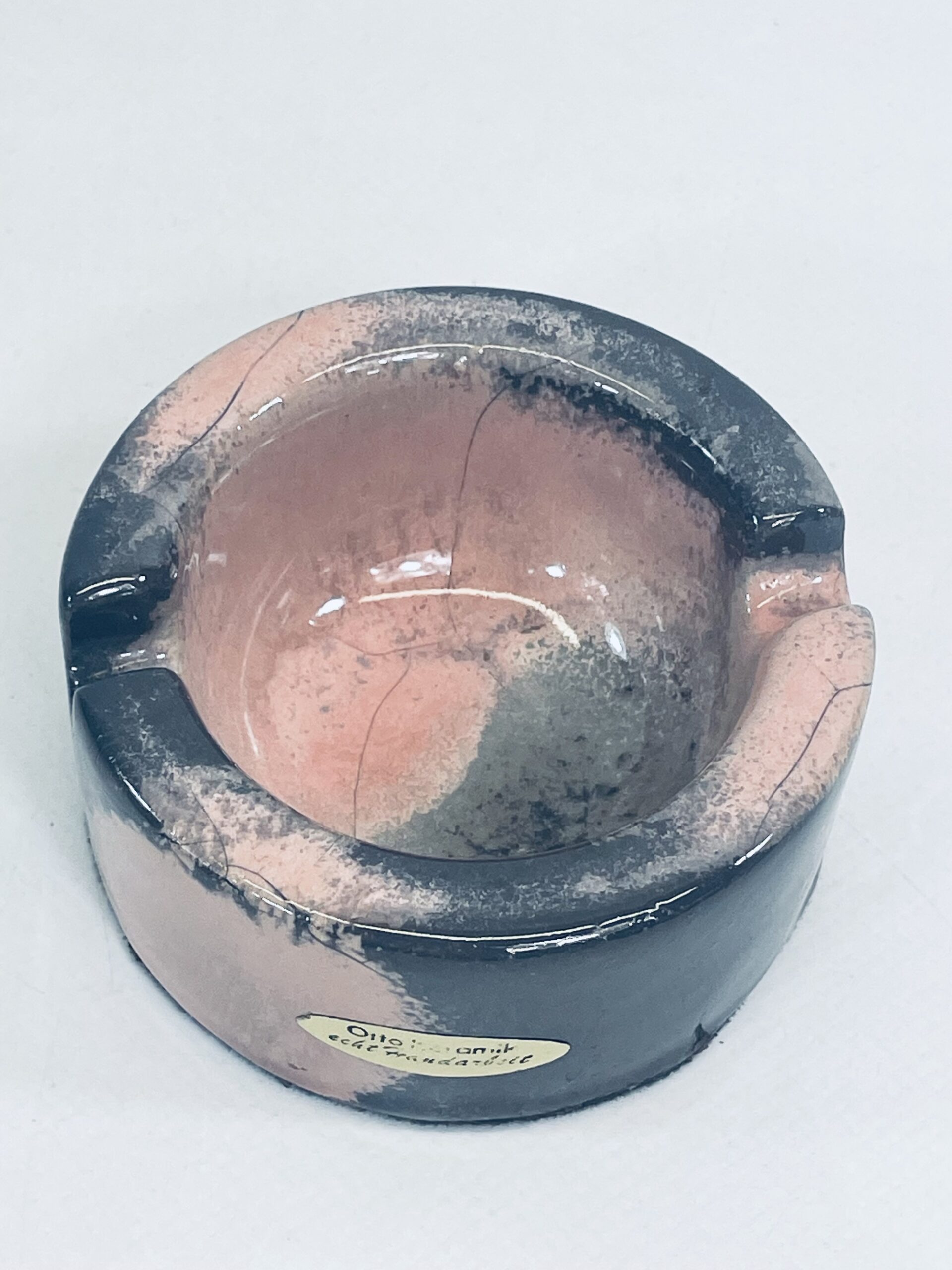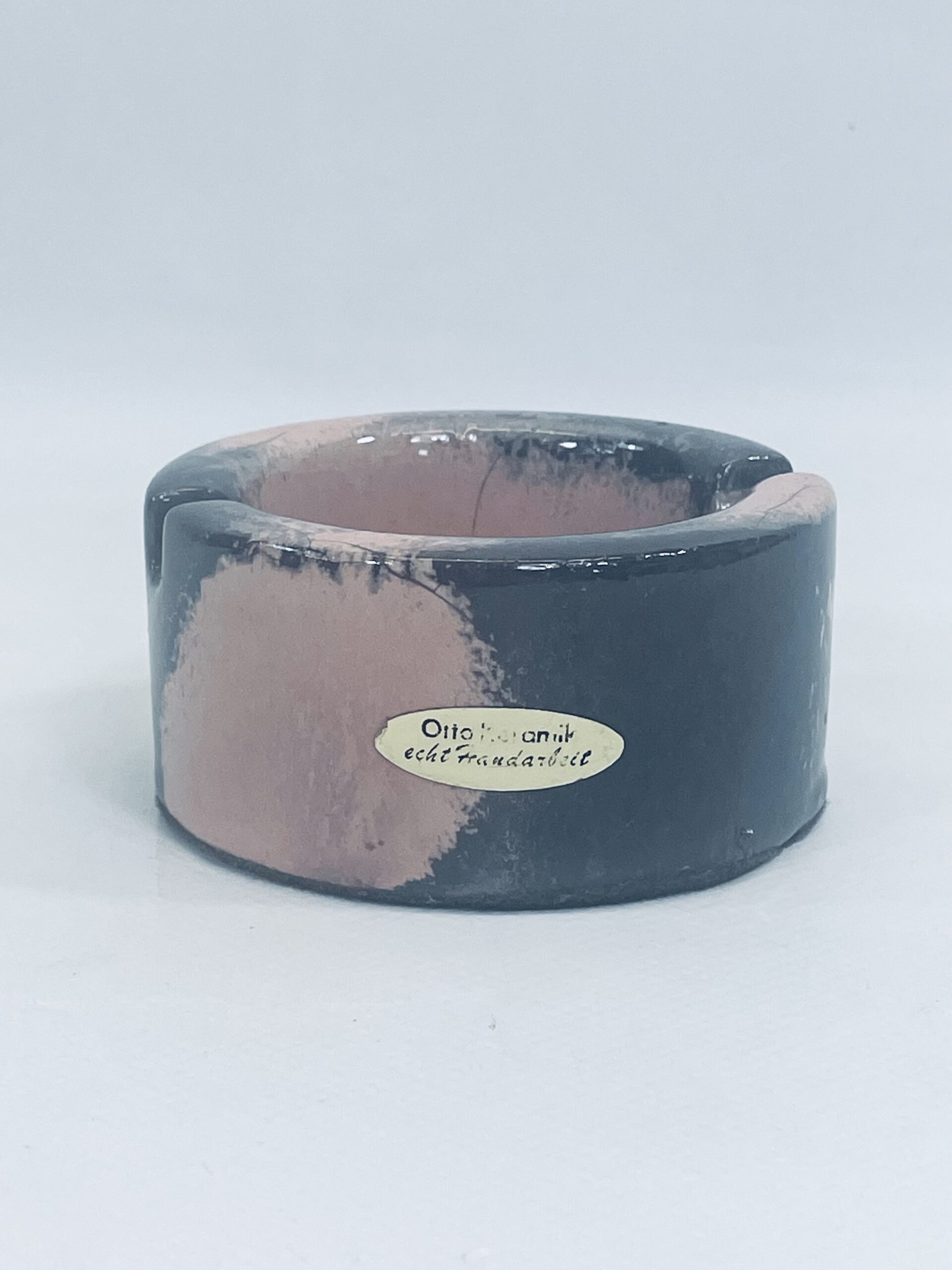 Ashtray, grey dish with pink glaze reduction from the 1980s/90s. Proj. Otto Gerhard WGP West Germany.
