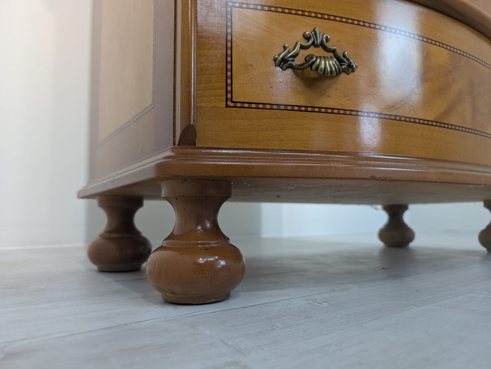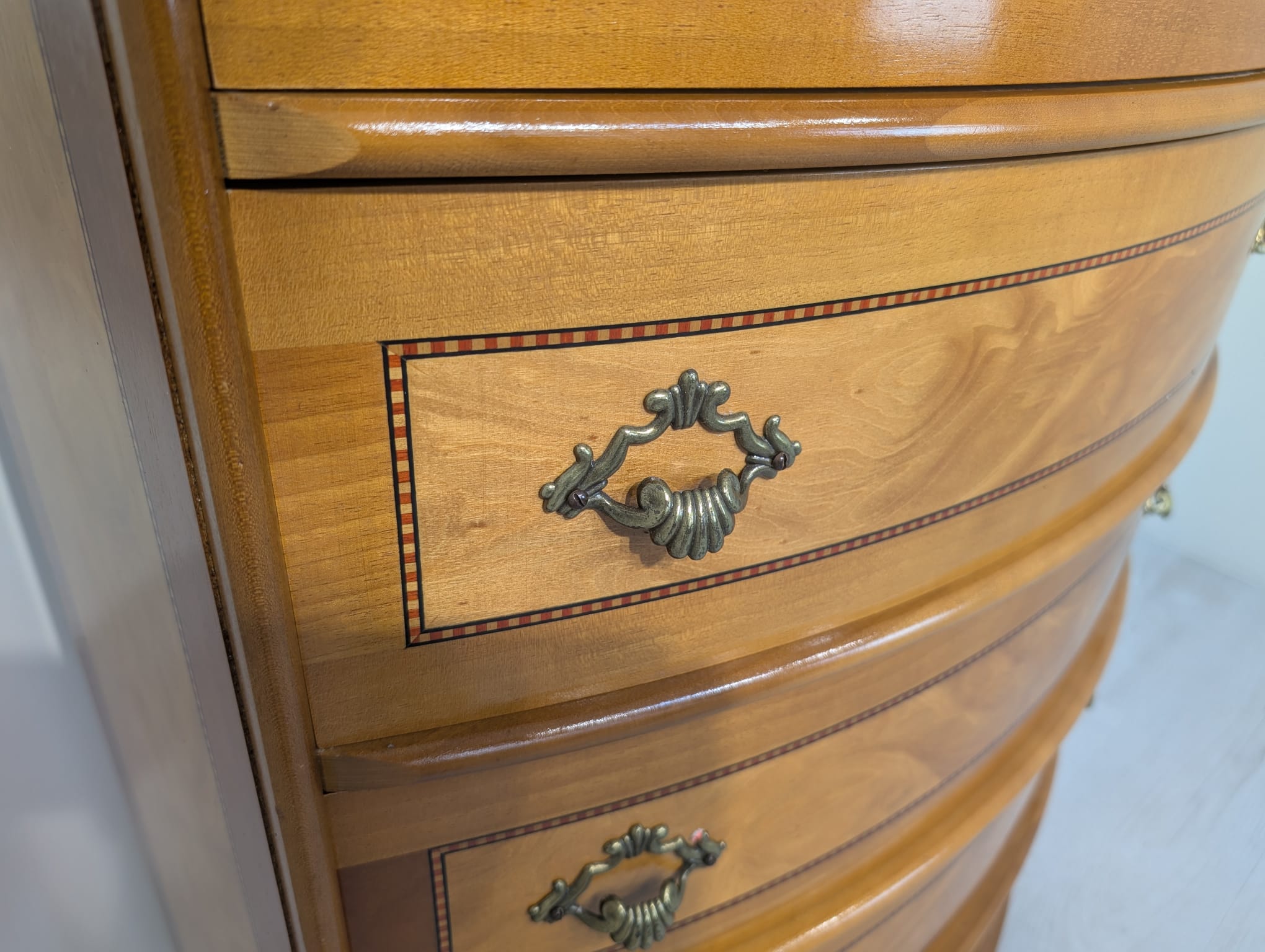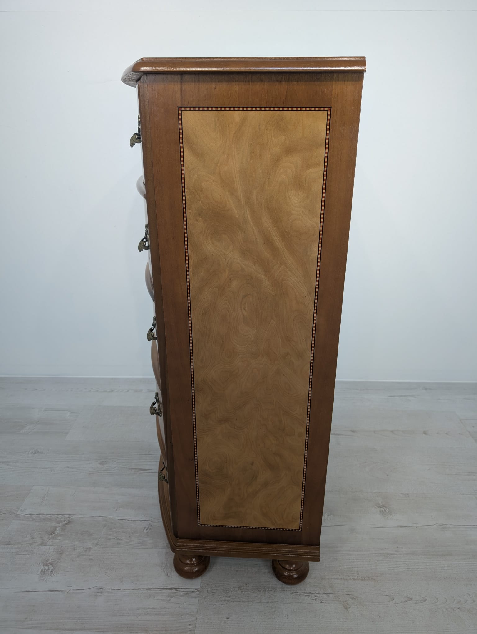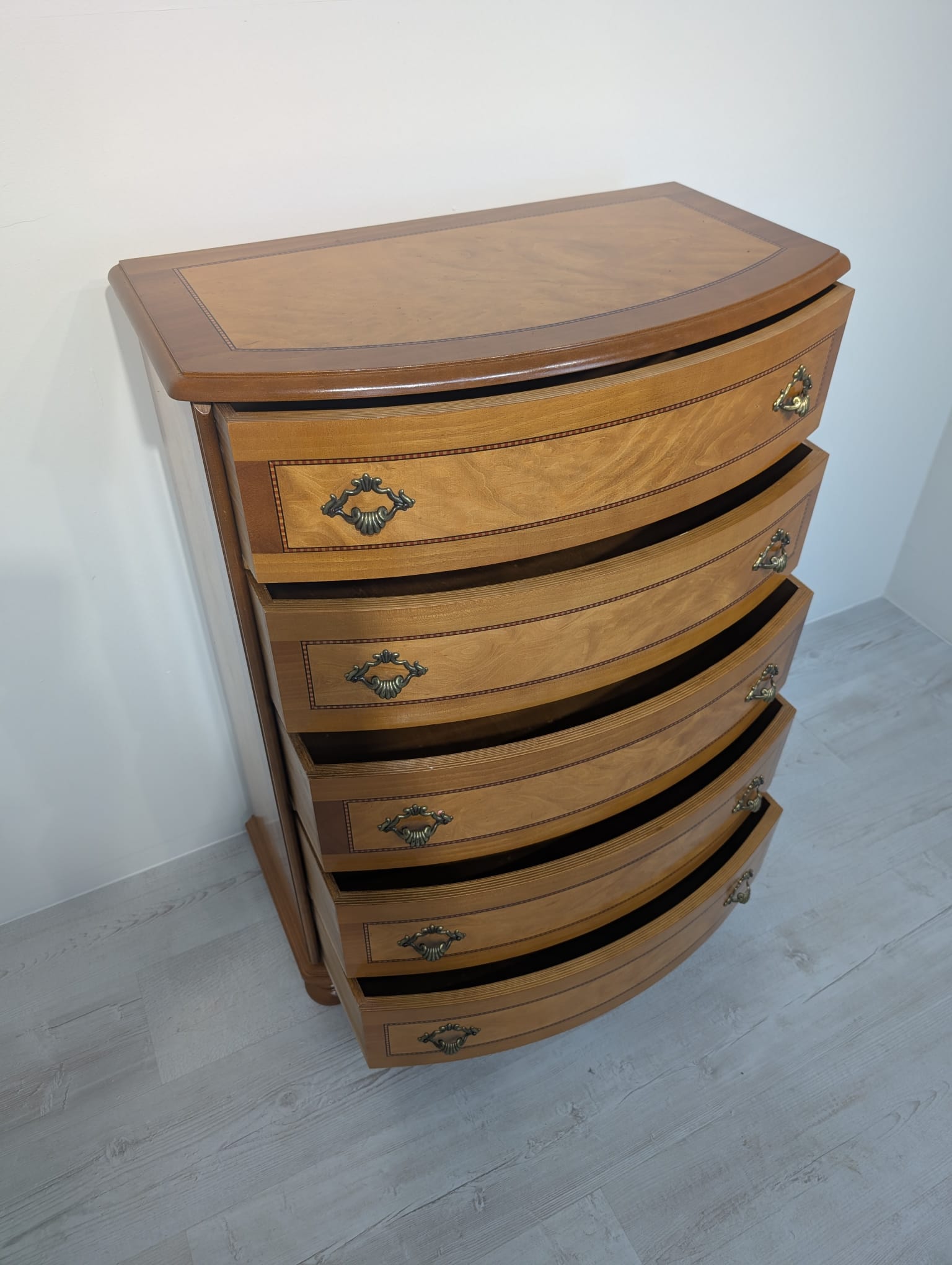 Belly chest of drawers with 5 drawers covered in marquetry.