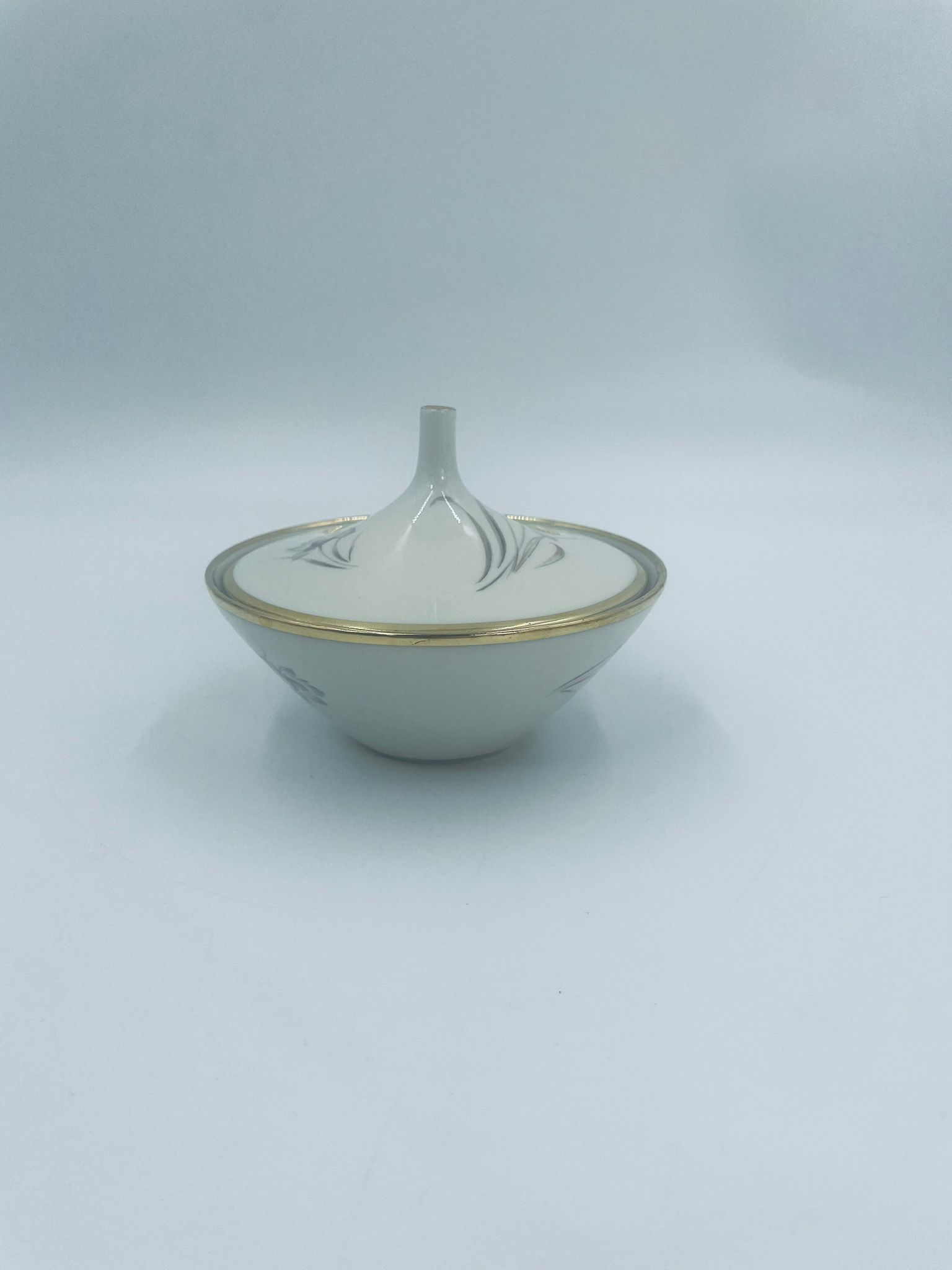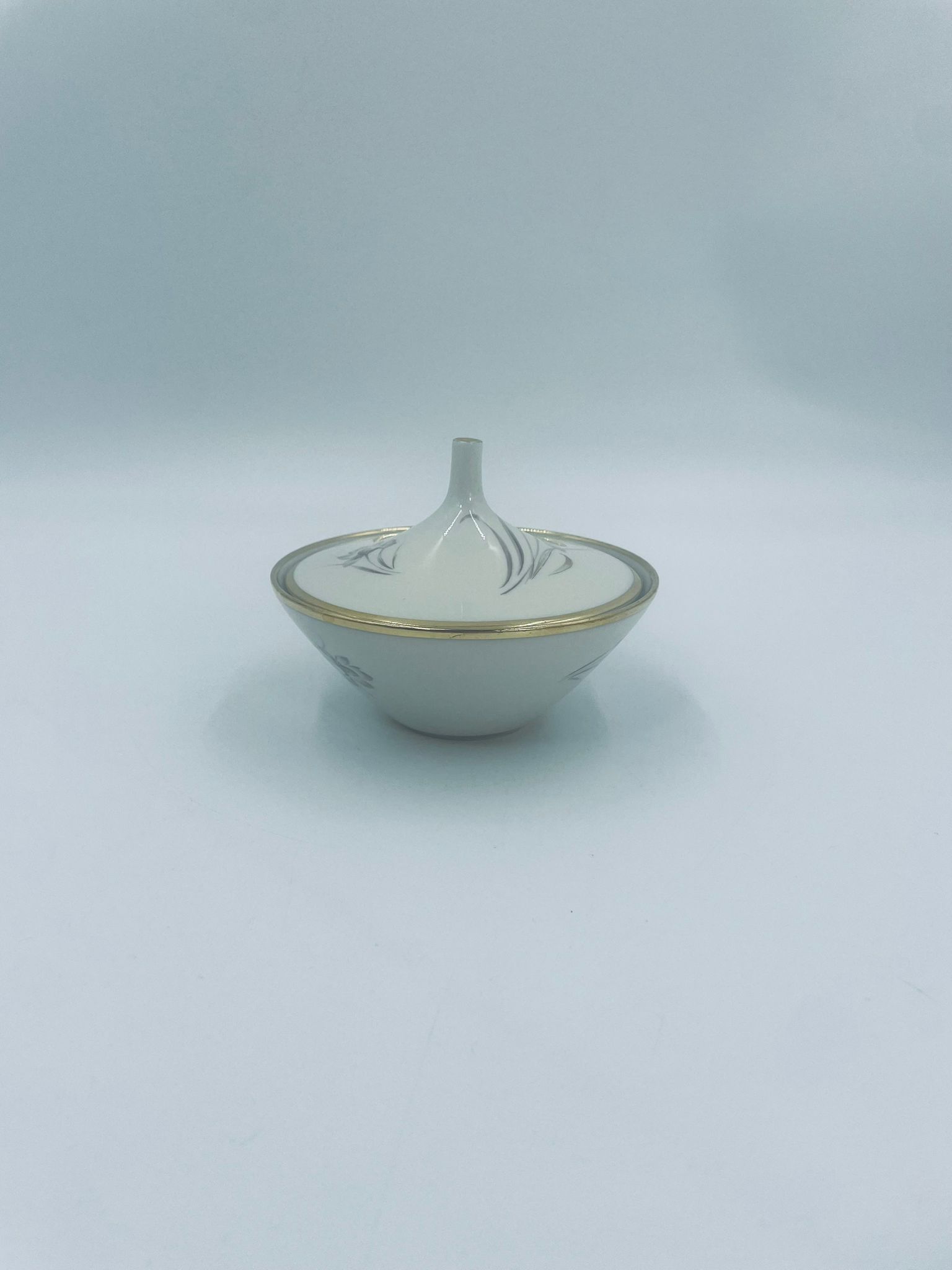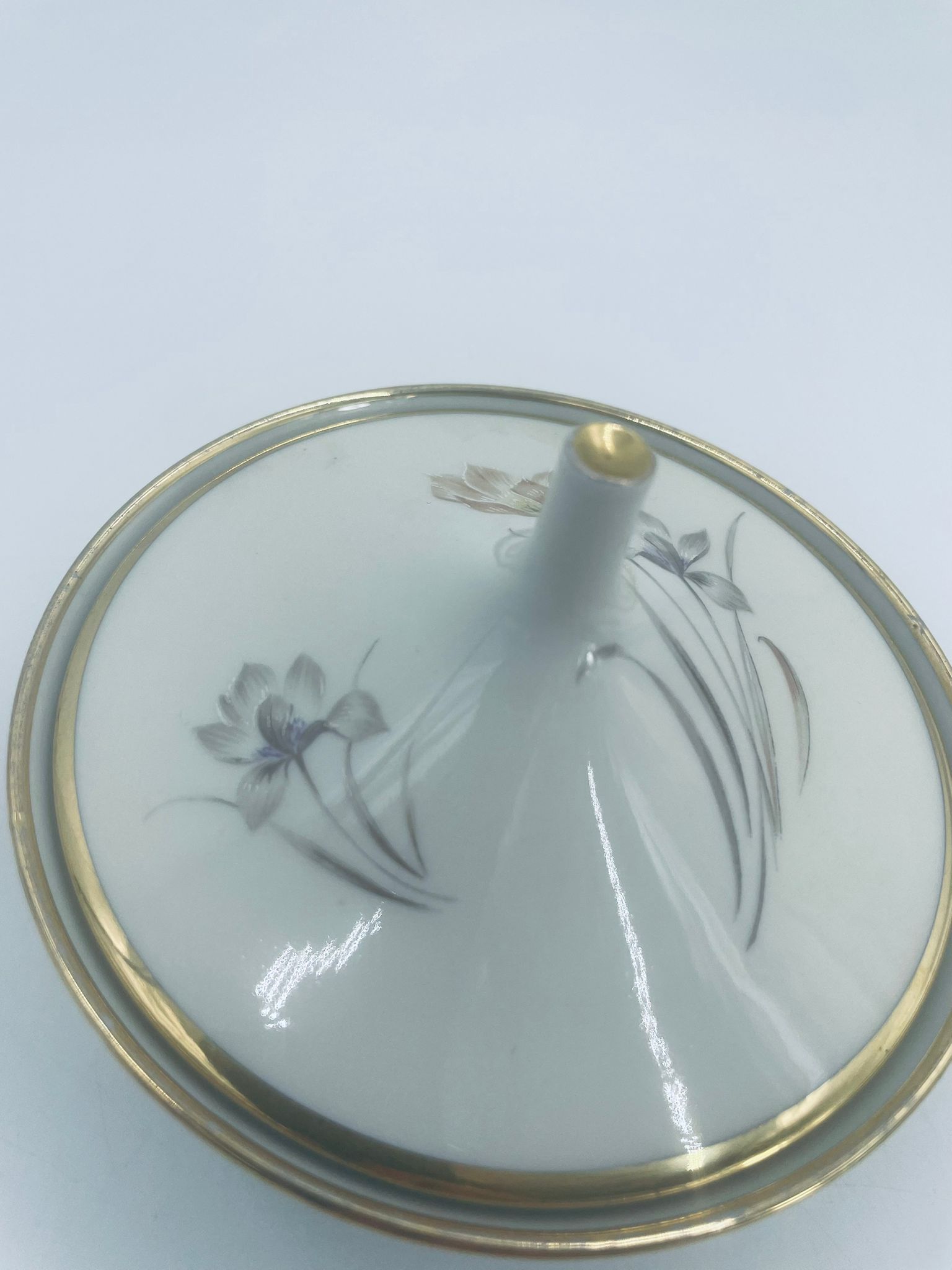 Bombonierka , cukiernica wytwórni Alka Kunst, datowana na lata 1953-1970r, wykonana z wysokiej jakości porcelany w kolorze ecru. Cukiernica we wzorze „Carina”, charakteryzuje się delikatnym motywem kwiatowym, wykończona złoceniem na krawędziach oraz uchwycie. Posiada przetarcie na złoceniu.