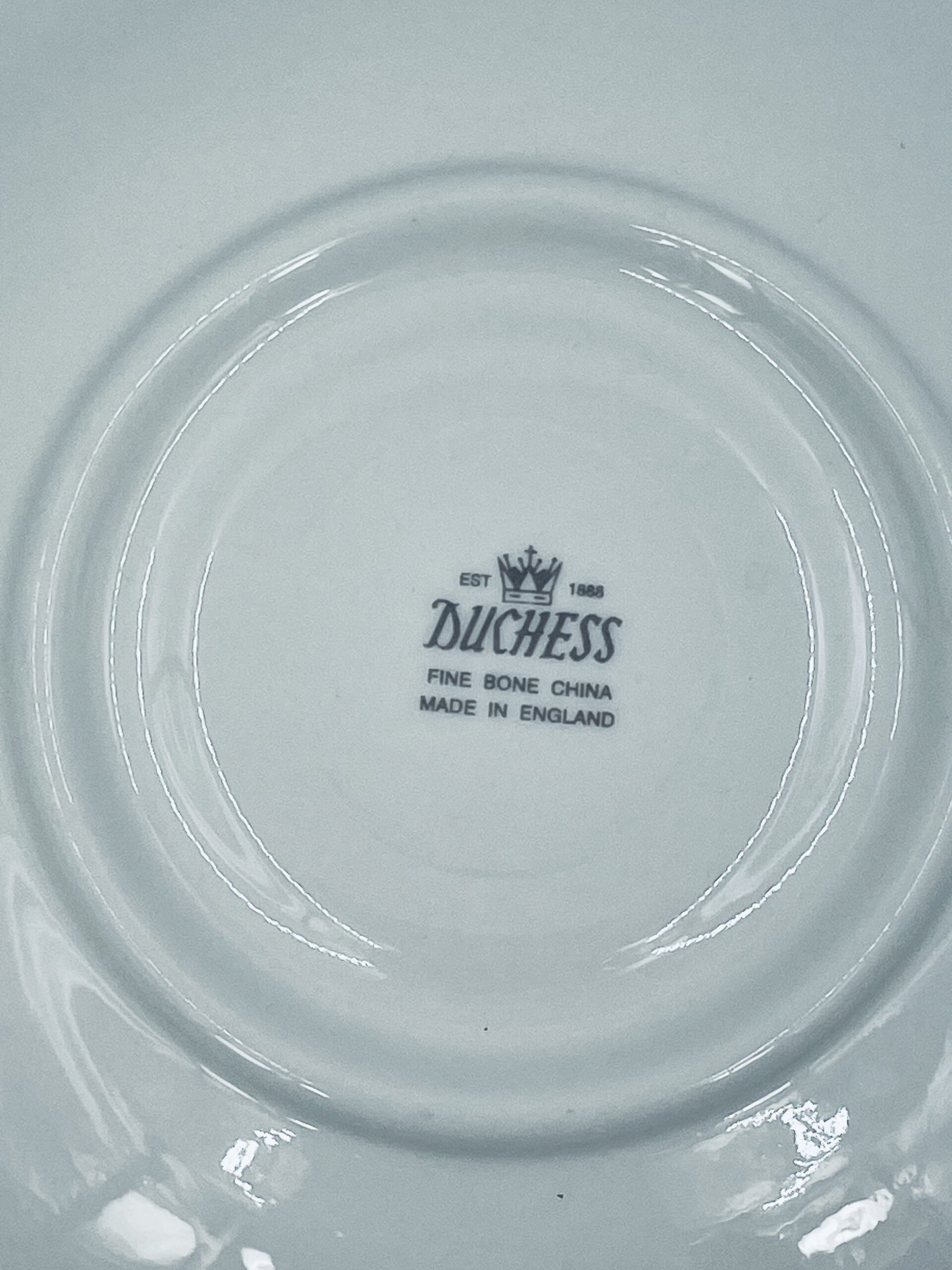 A saucer by the Duchess Bona China England label from the 1990s made from bone china.