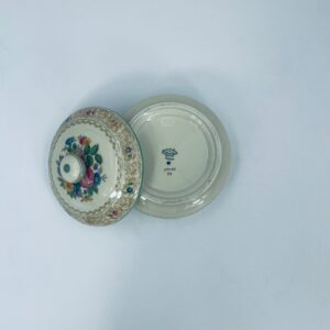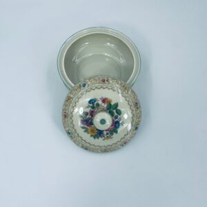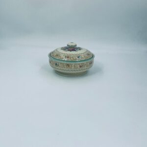 A chocolate box from the Thomas Ivory Rosenthal label, made of high-quality ivory-coloured porcelain. It is characterised by floral patterns and scrollwork. It is used to store sweets, jewellery and other small items.
