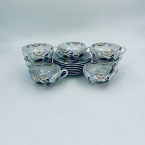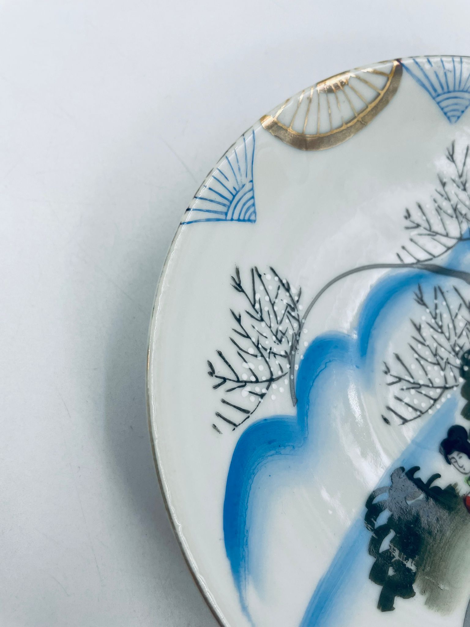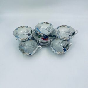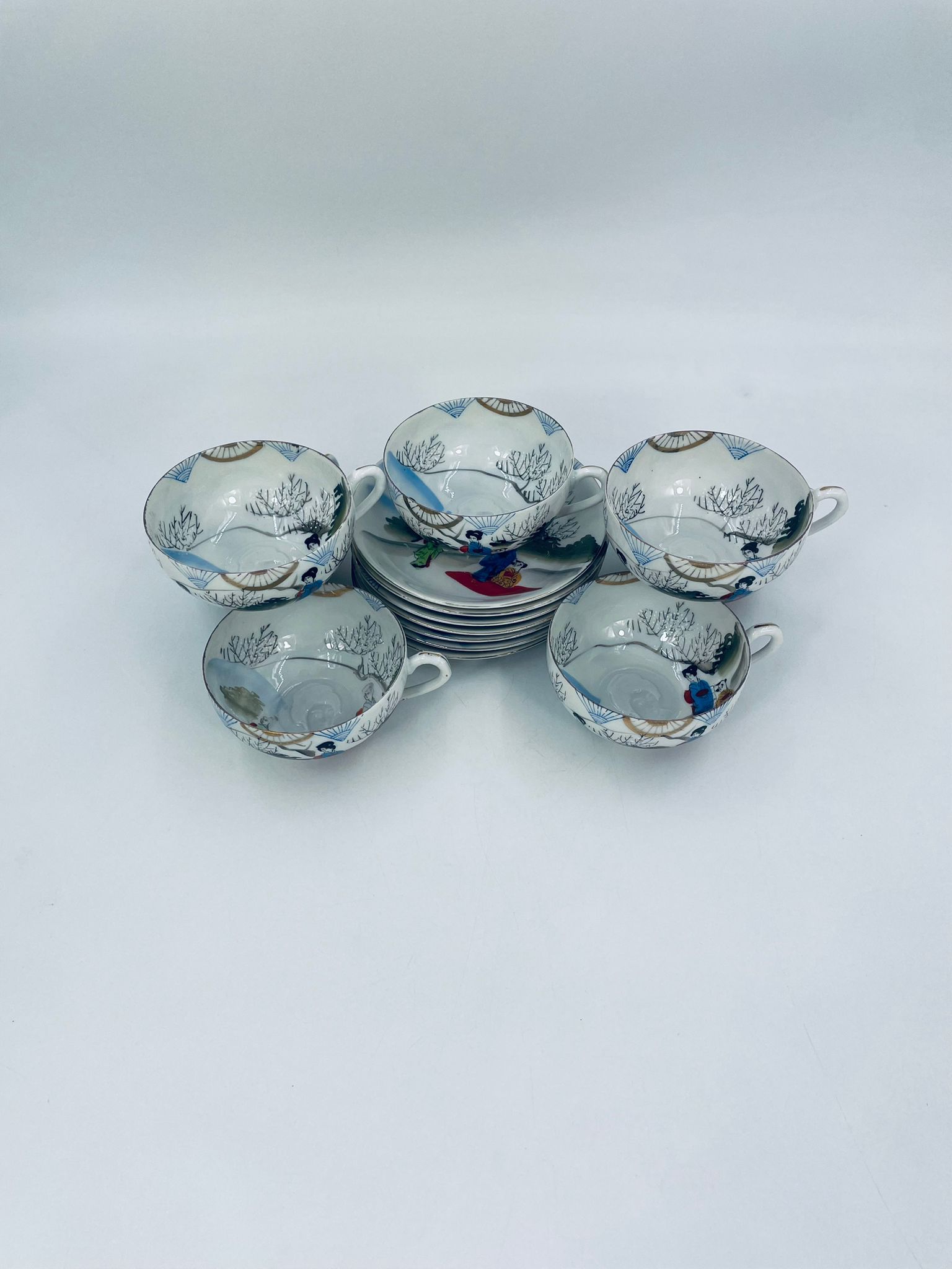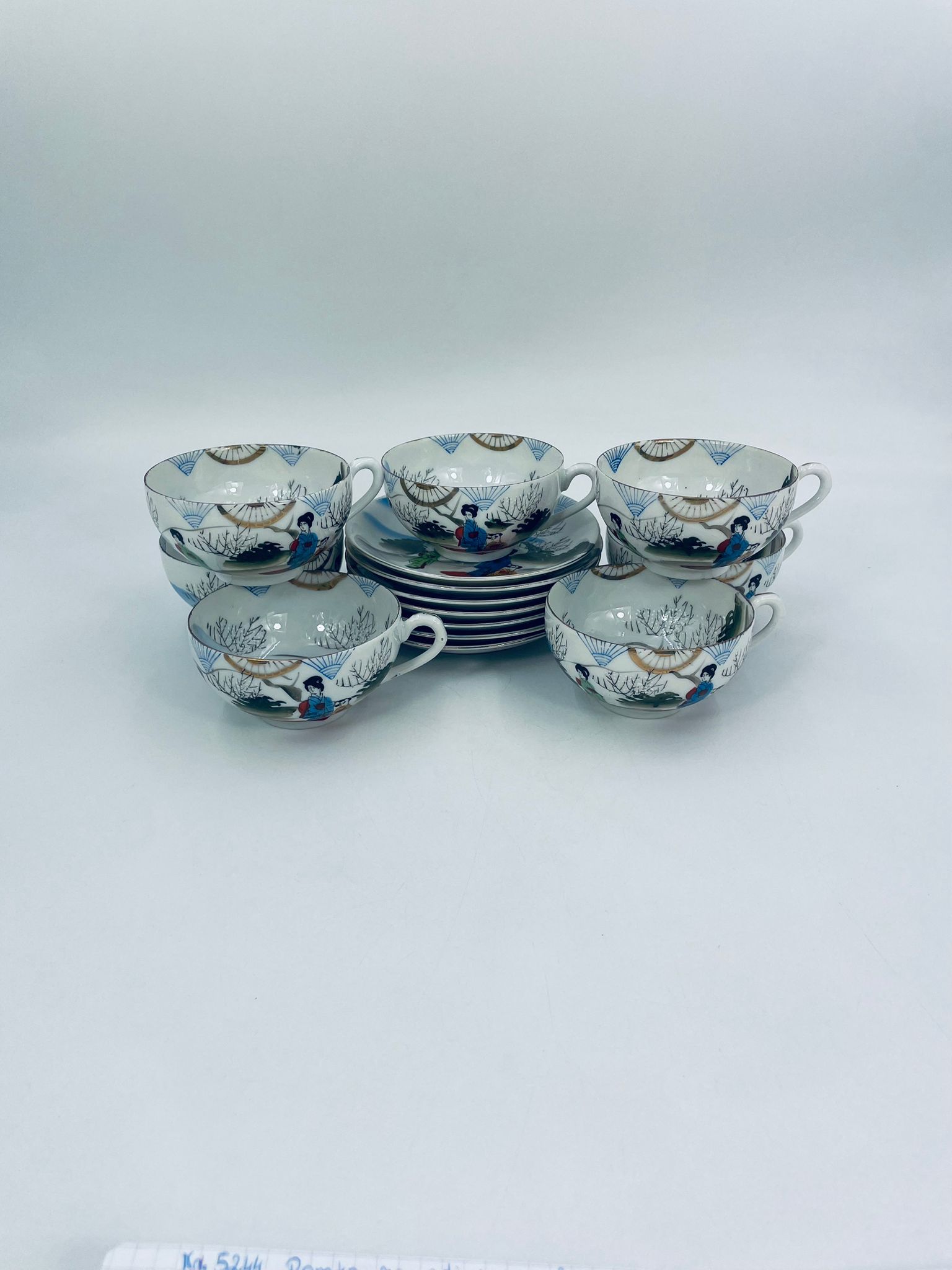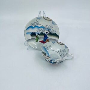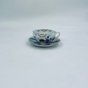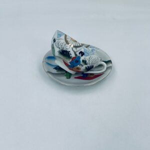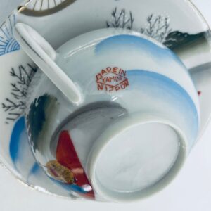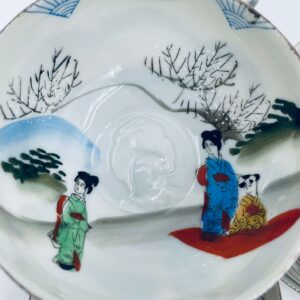 Collector's cup in duo set, Japanese, manufactured in white fine porcelain. Leave hand-painted in a Geisha style design. In the centre of the cup is a lithophane portrait of a Geisha.