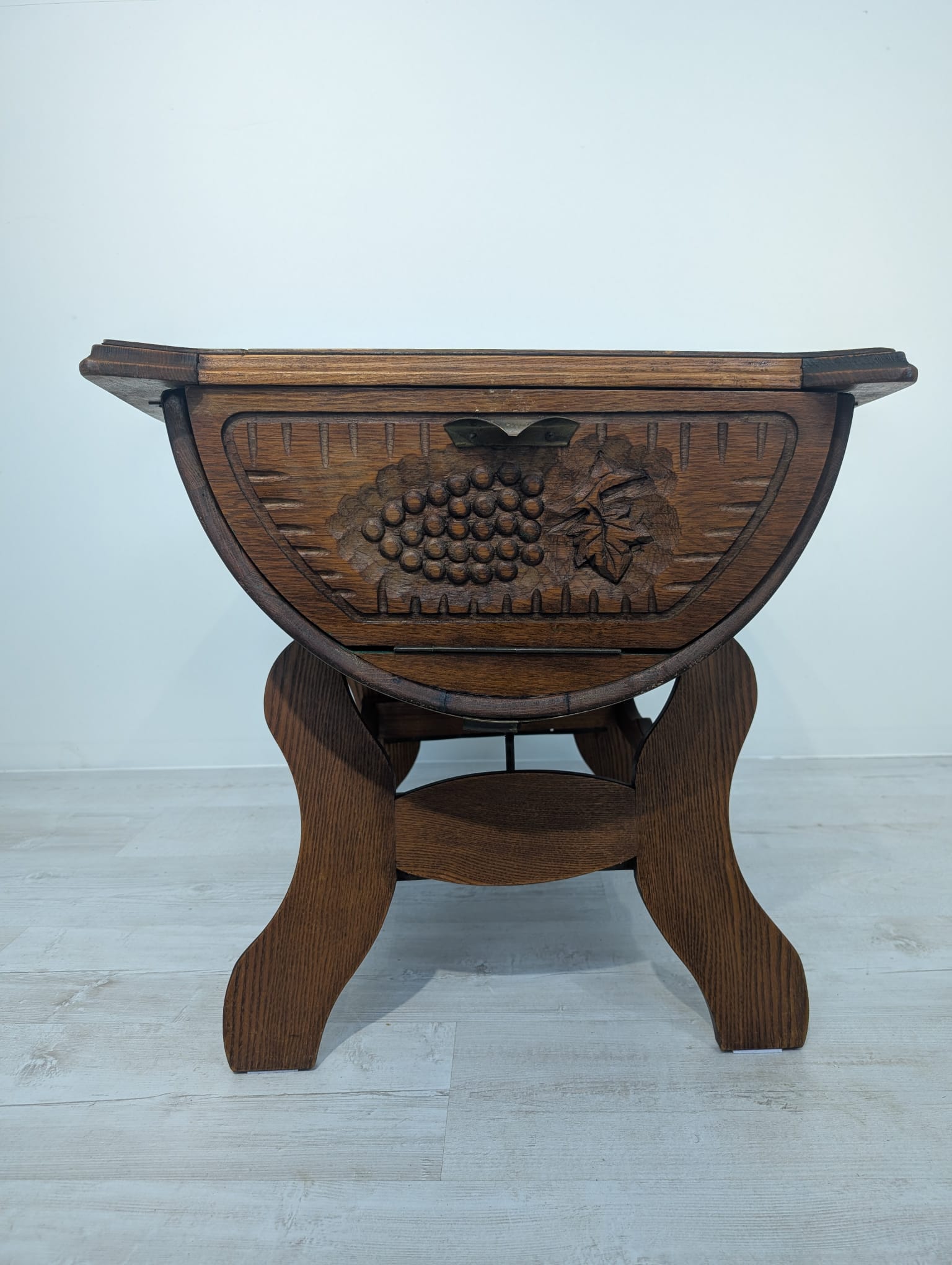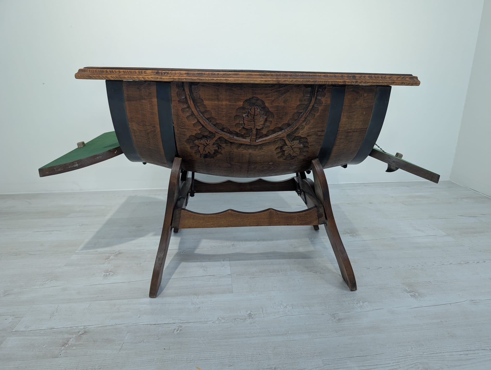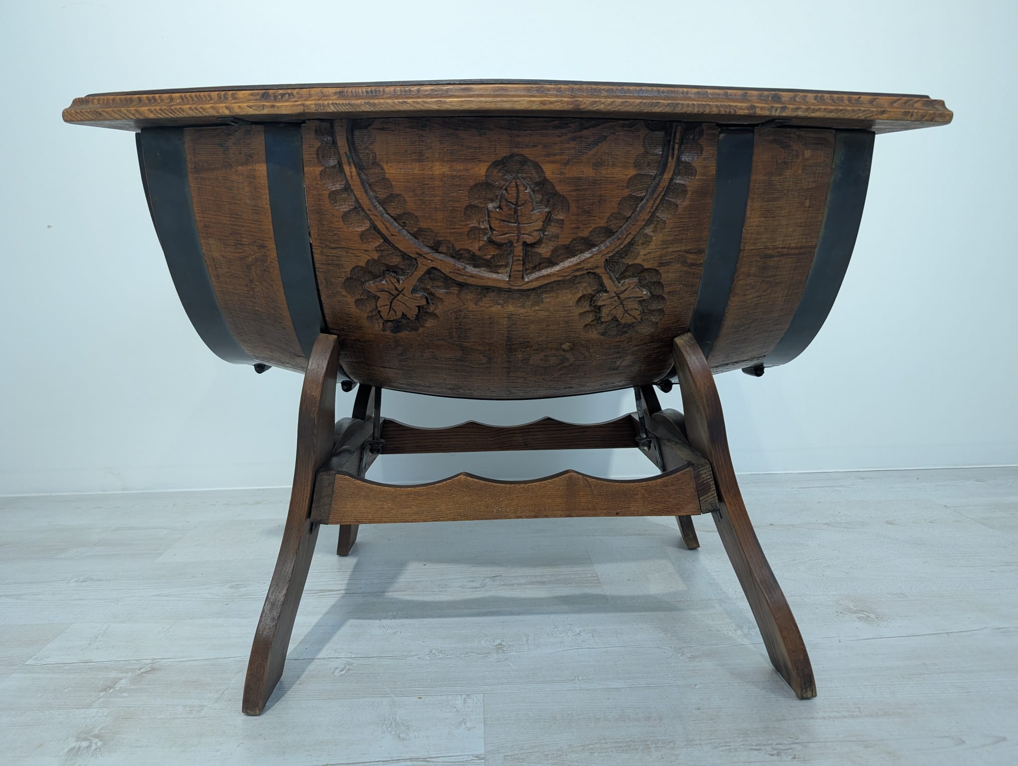 Carved whisky barrel bar