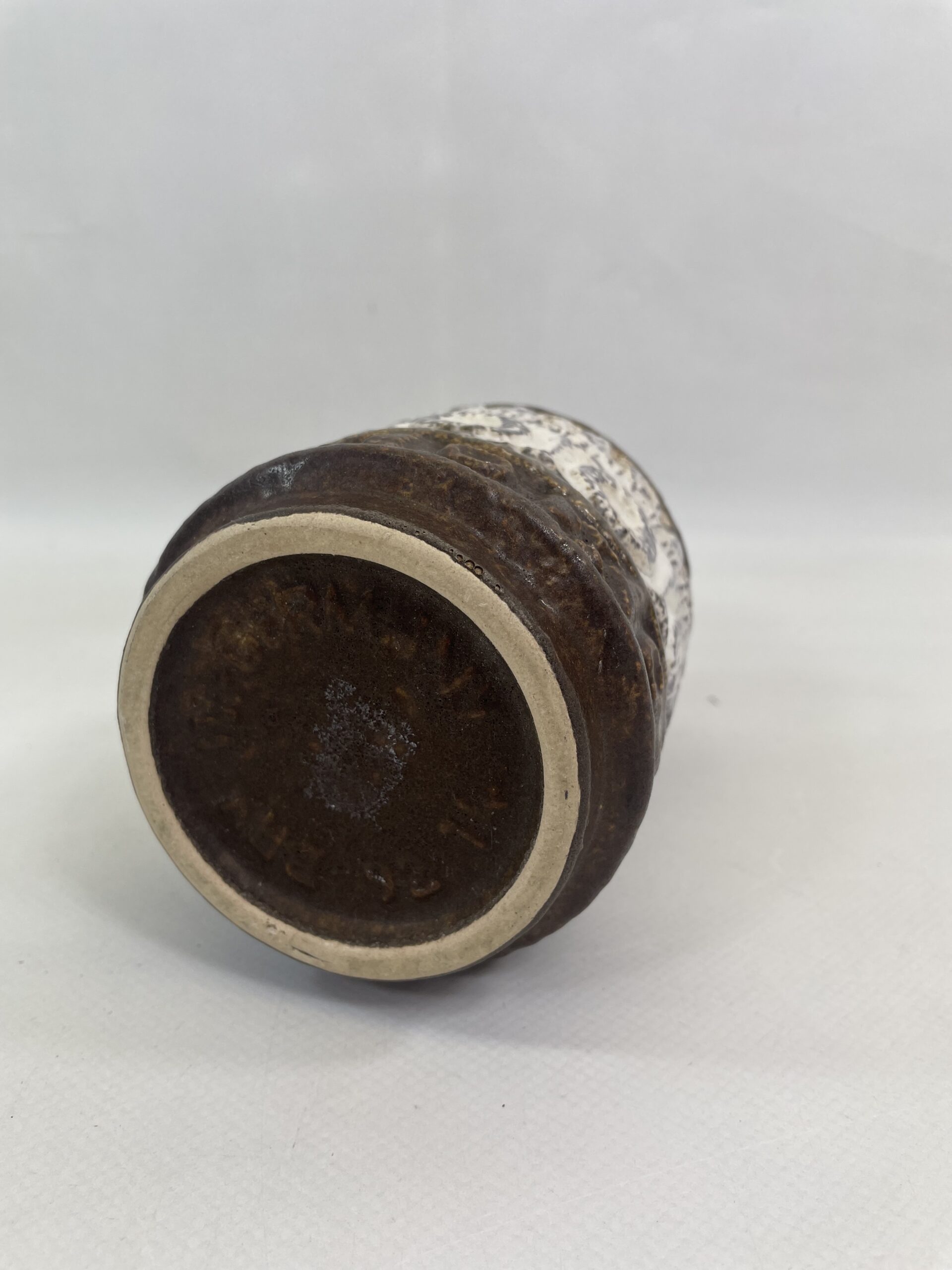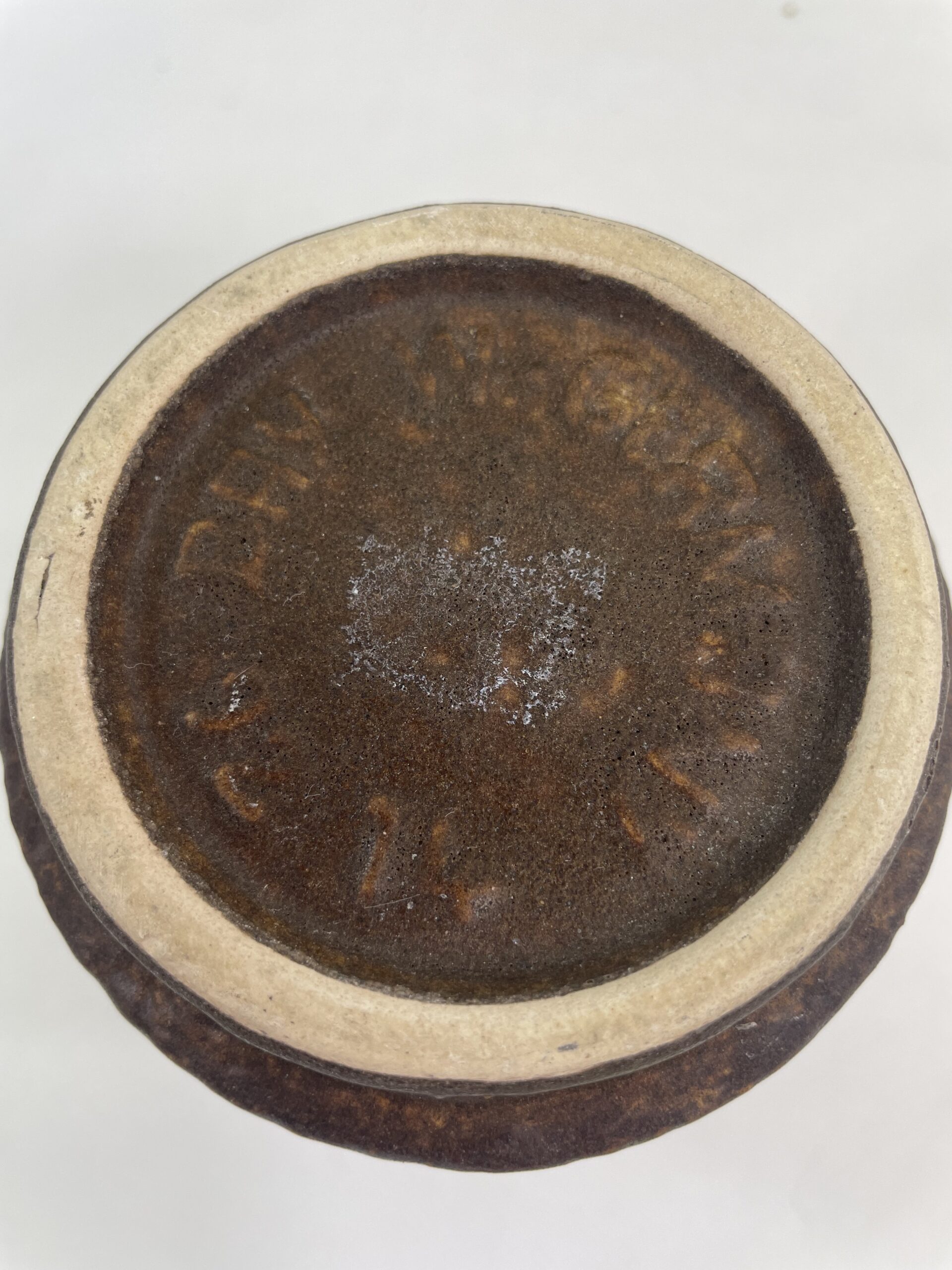 Decorated with symbols and glazed in brown and white. Serial number 92 14.