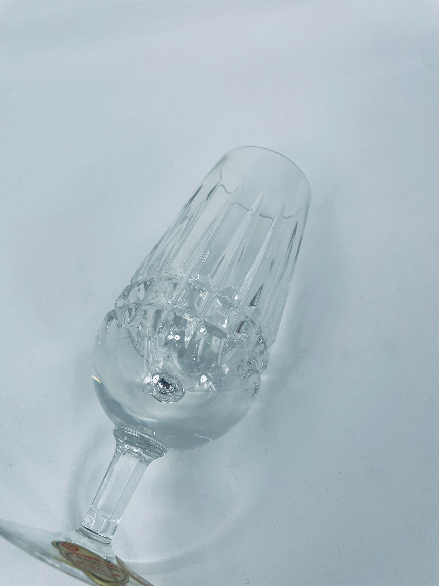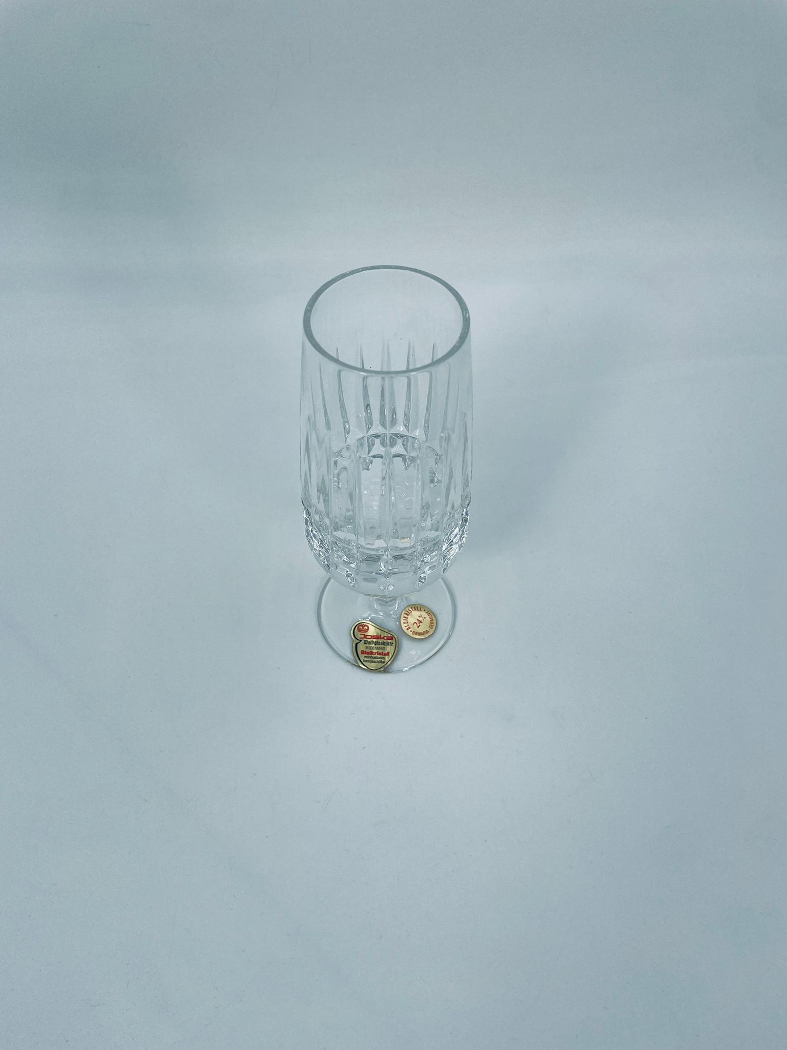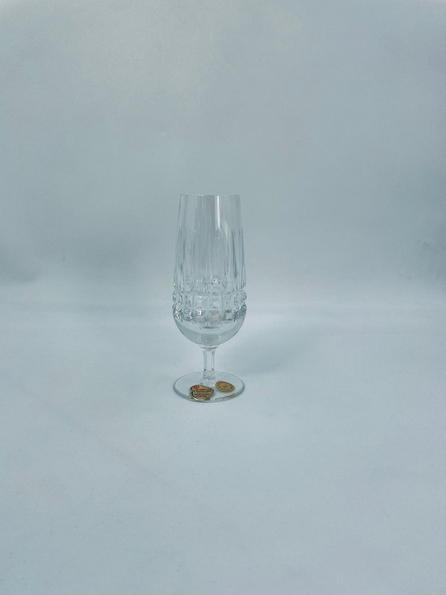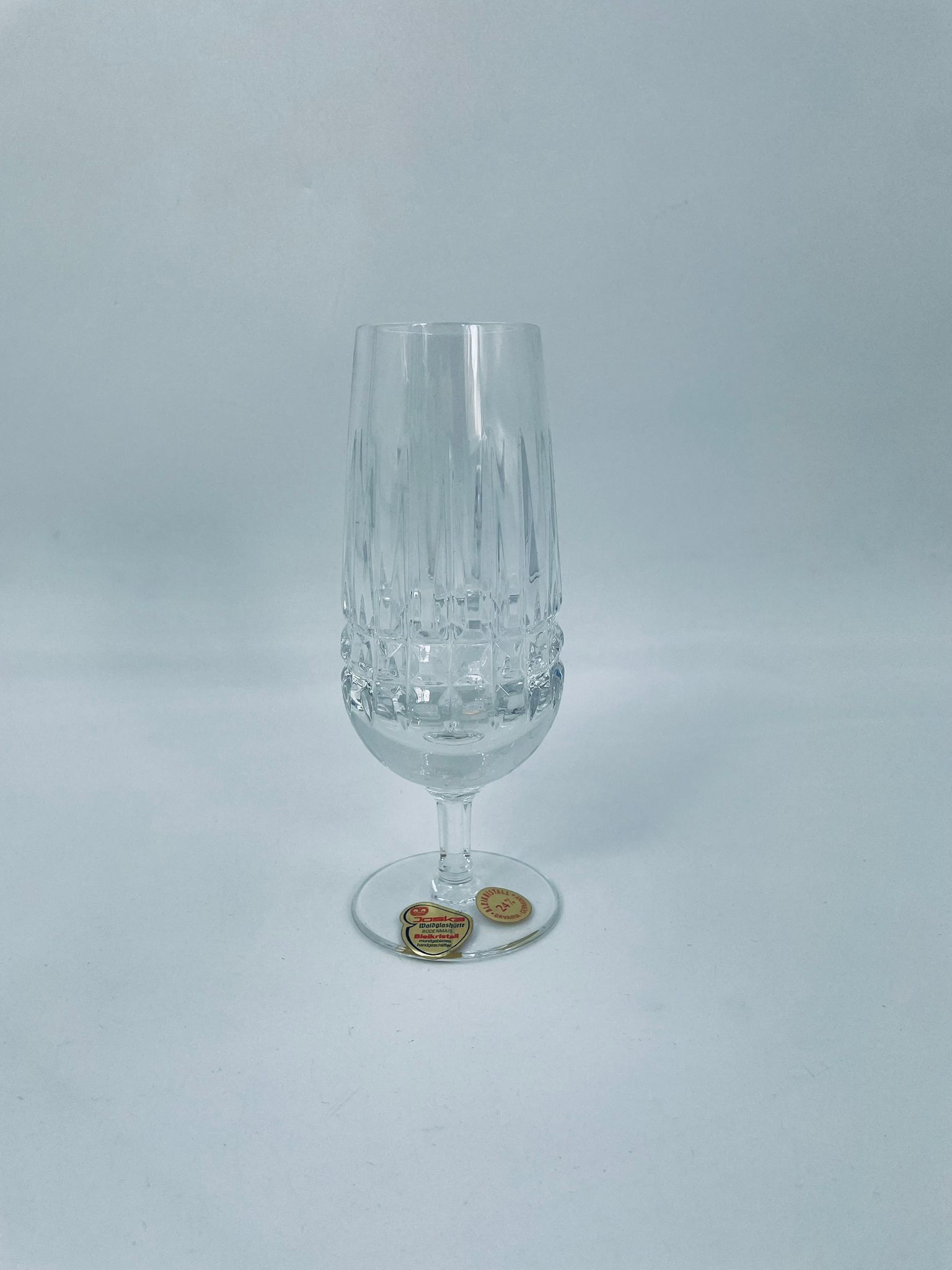 Champagne glass by Bavaria Germany, made of high quality thick crystal glass. The glass is hand-cut in patterns.