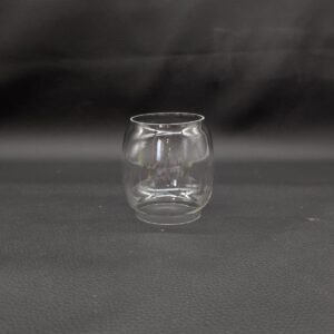 Chimney manufactured from the 1970s (stock). Fits lamps from the communist era. There are some factory blemishes in the glass which do not affect the durability of the design, a characteristic feature of glass products from that era.