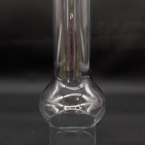 Chimney manufactured from the 1970s (stock). Fits lamps from the communist era. There are some factory blemishes in the glass which do not affect the durability of the design, a characteristic feature of glass products from that era.
