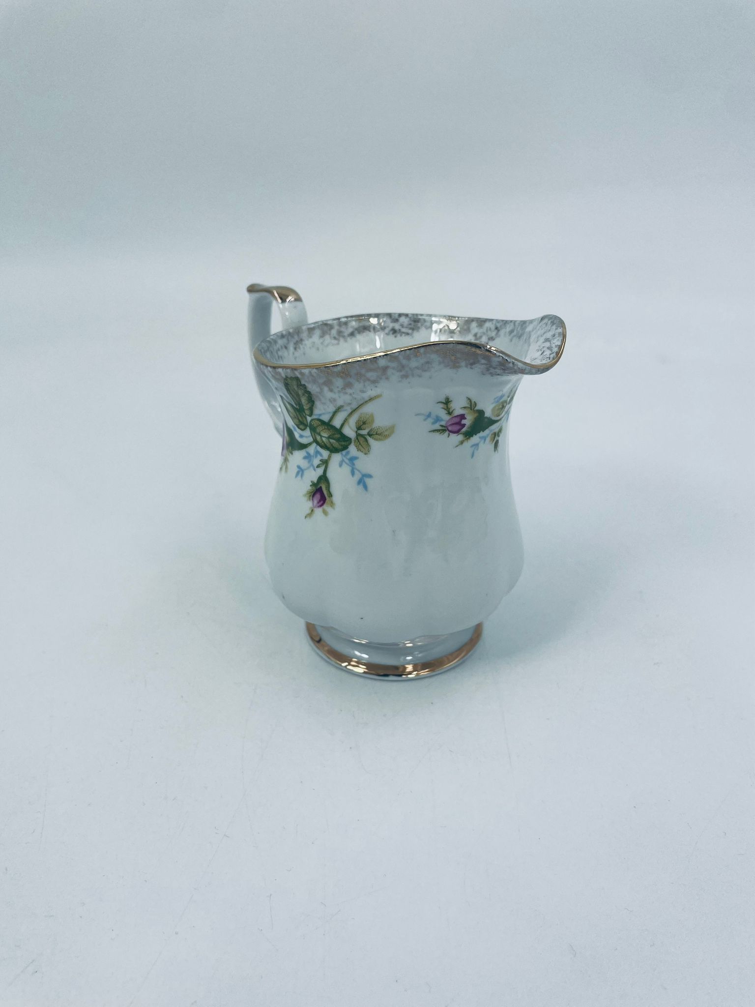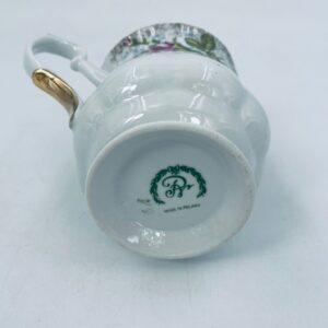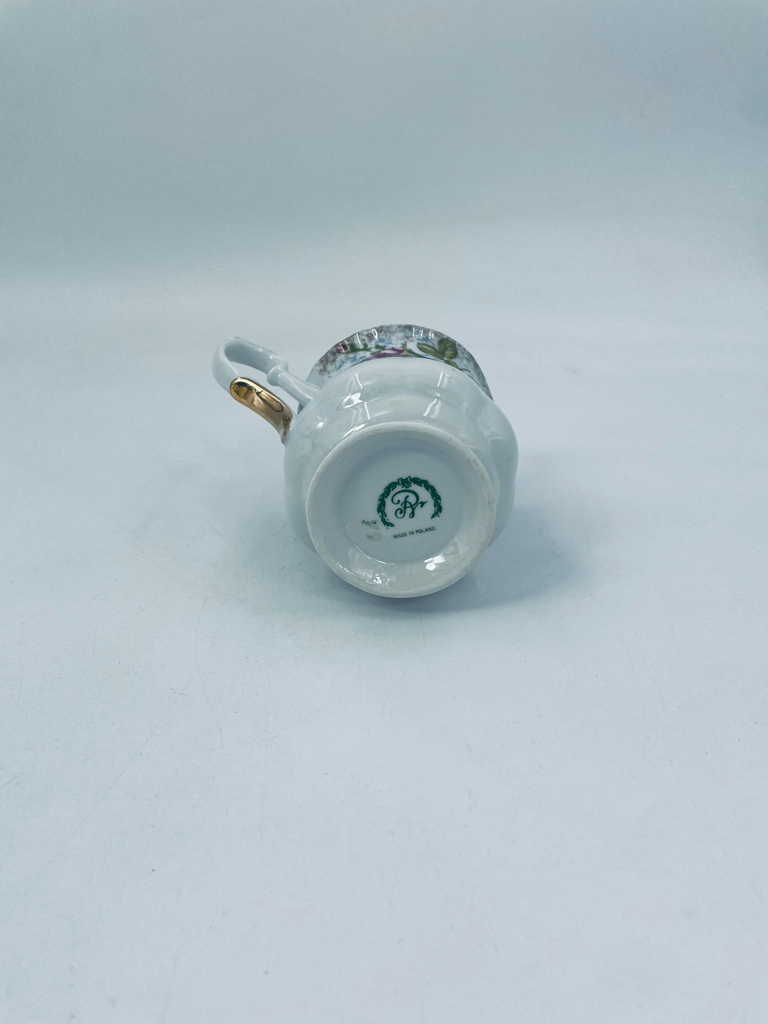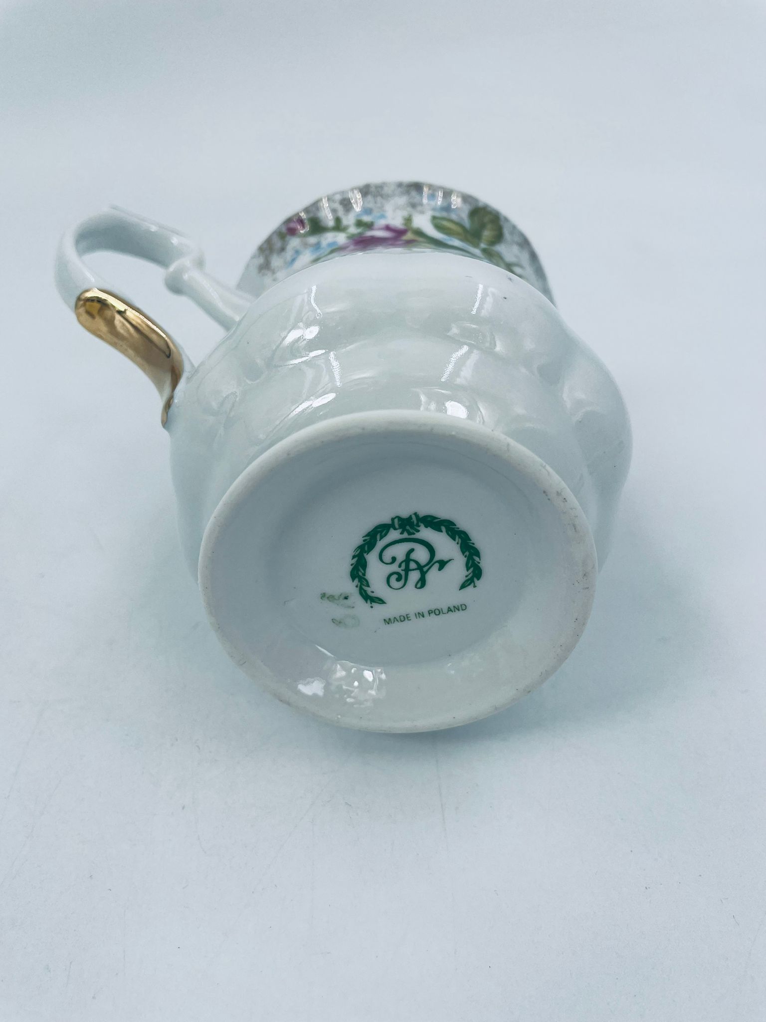 Milk jug by the Polish porcelain factory Chodzież, cut Iwona golden rose. Milk jug made of high quality white porcelain with a distinctive stylish decoration of beautiful burgundy roses with green branches. The pitcher is richly decorated and finished with gilding. It has rubbing on the gilding.