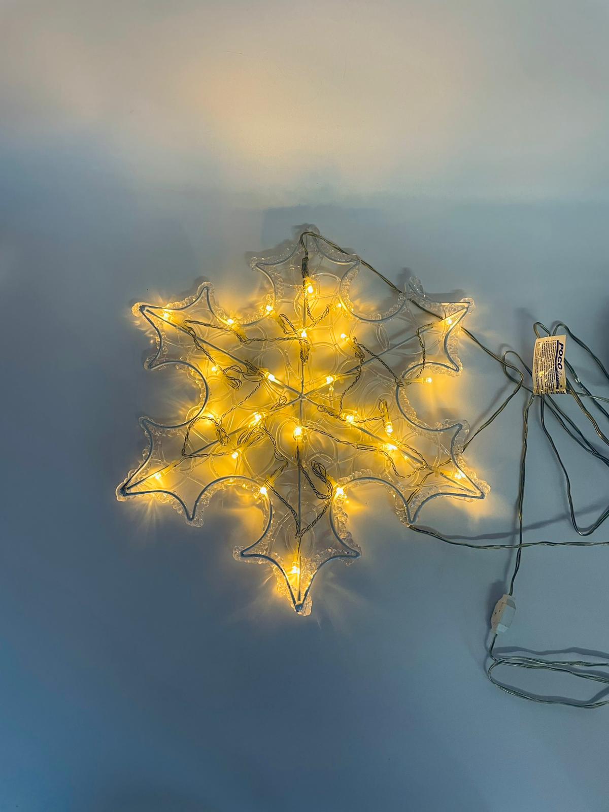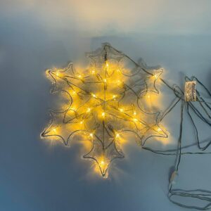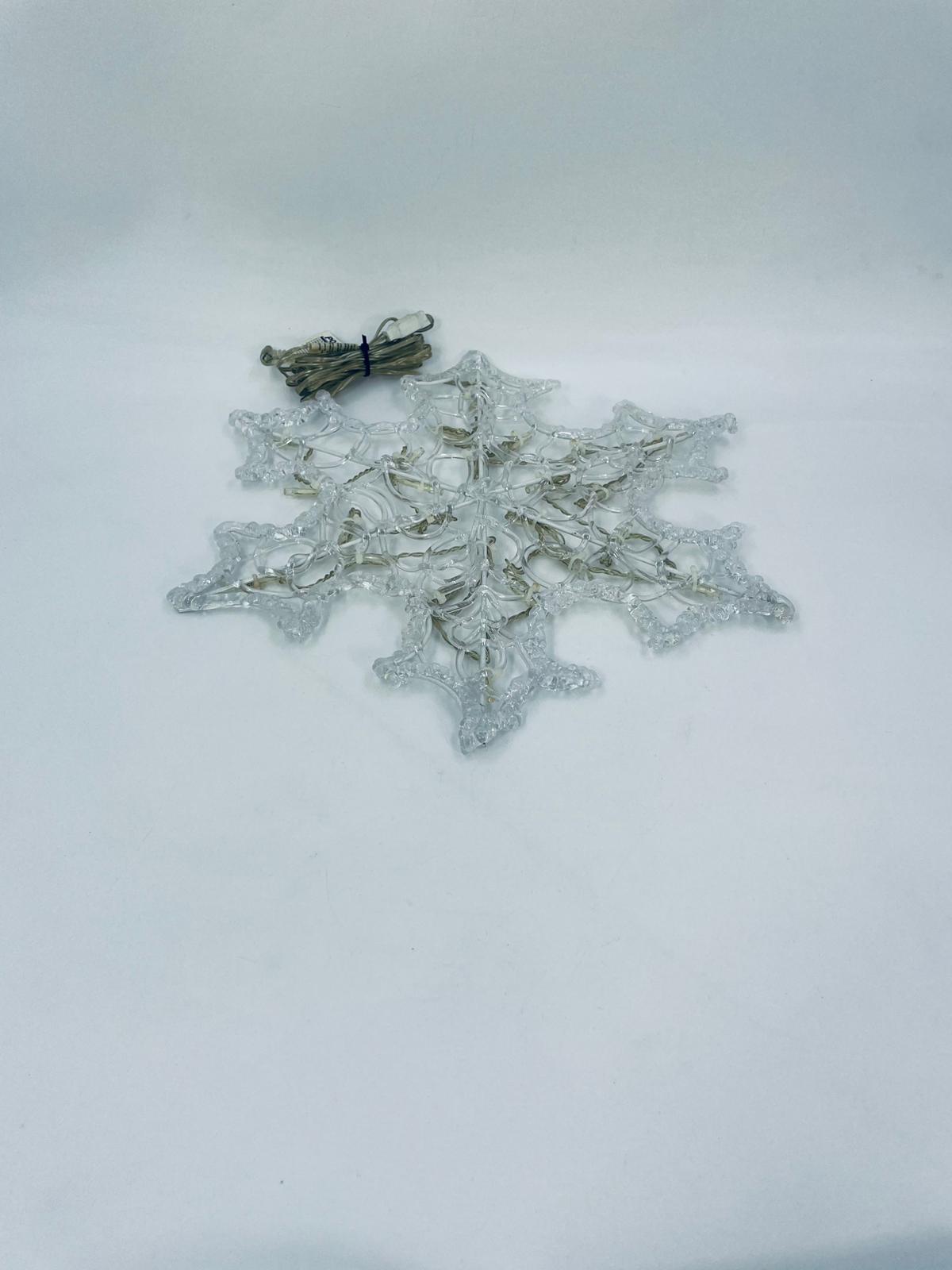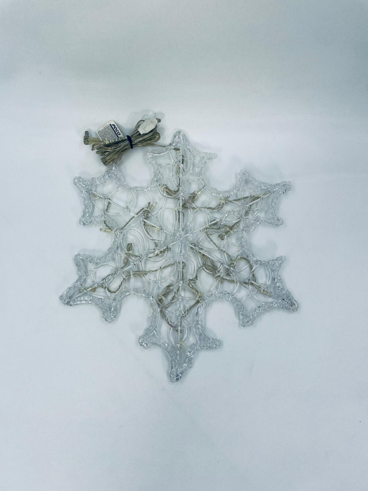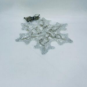 Vintage-style Christmas decoration. Snowflake-shaped decoration with LED lighting, designed for indoor use. No power supply included.