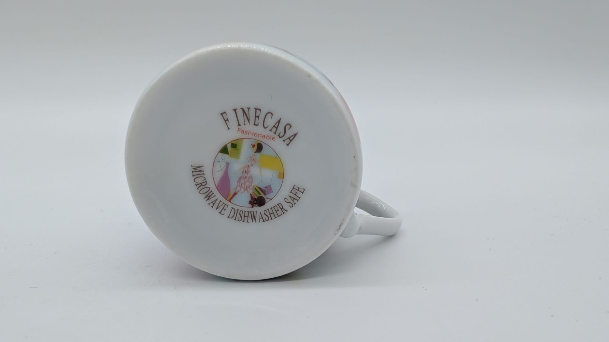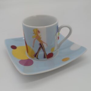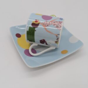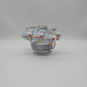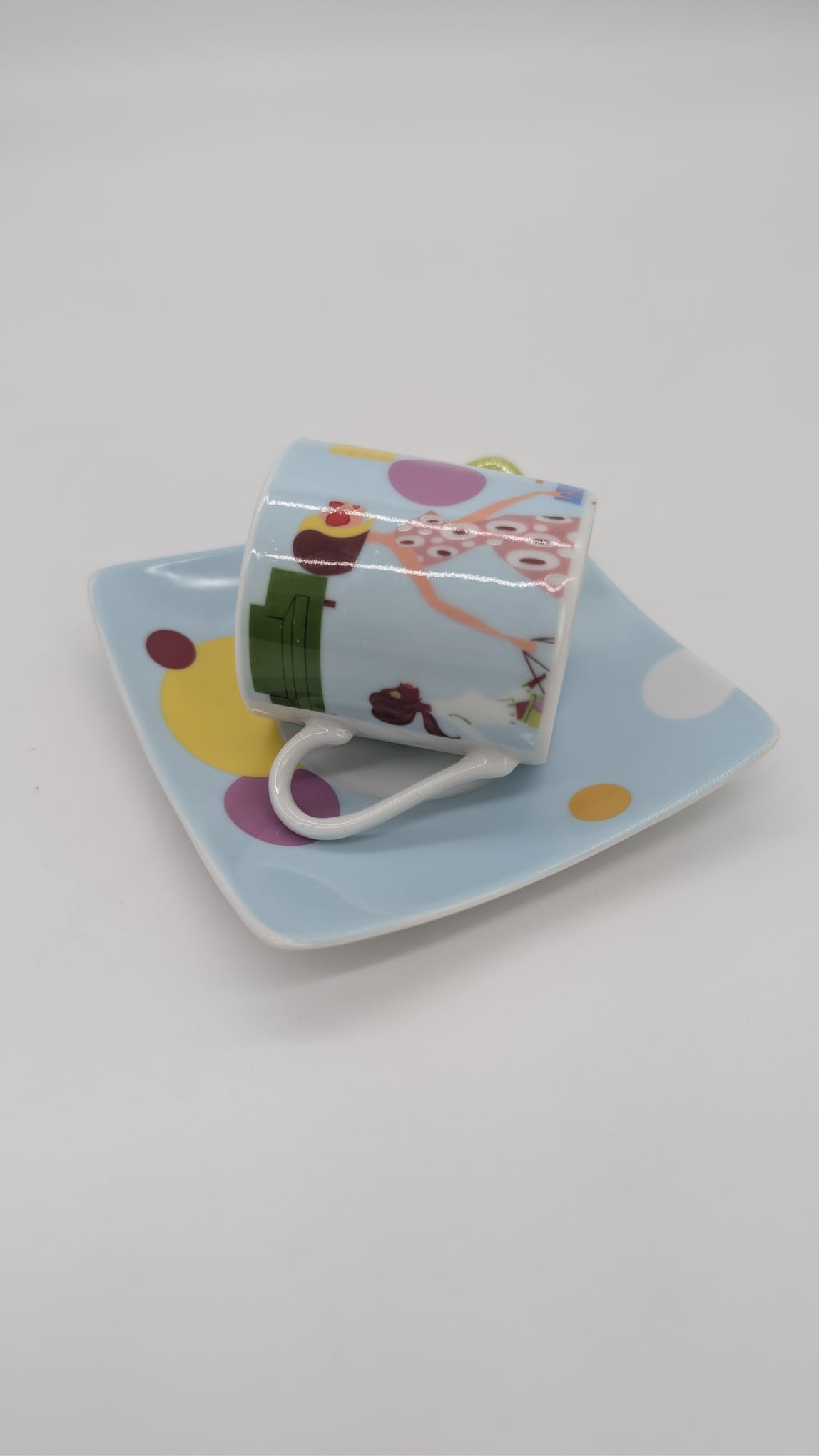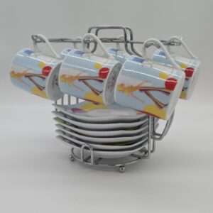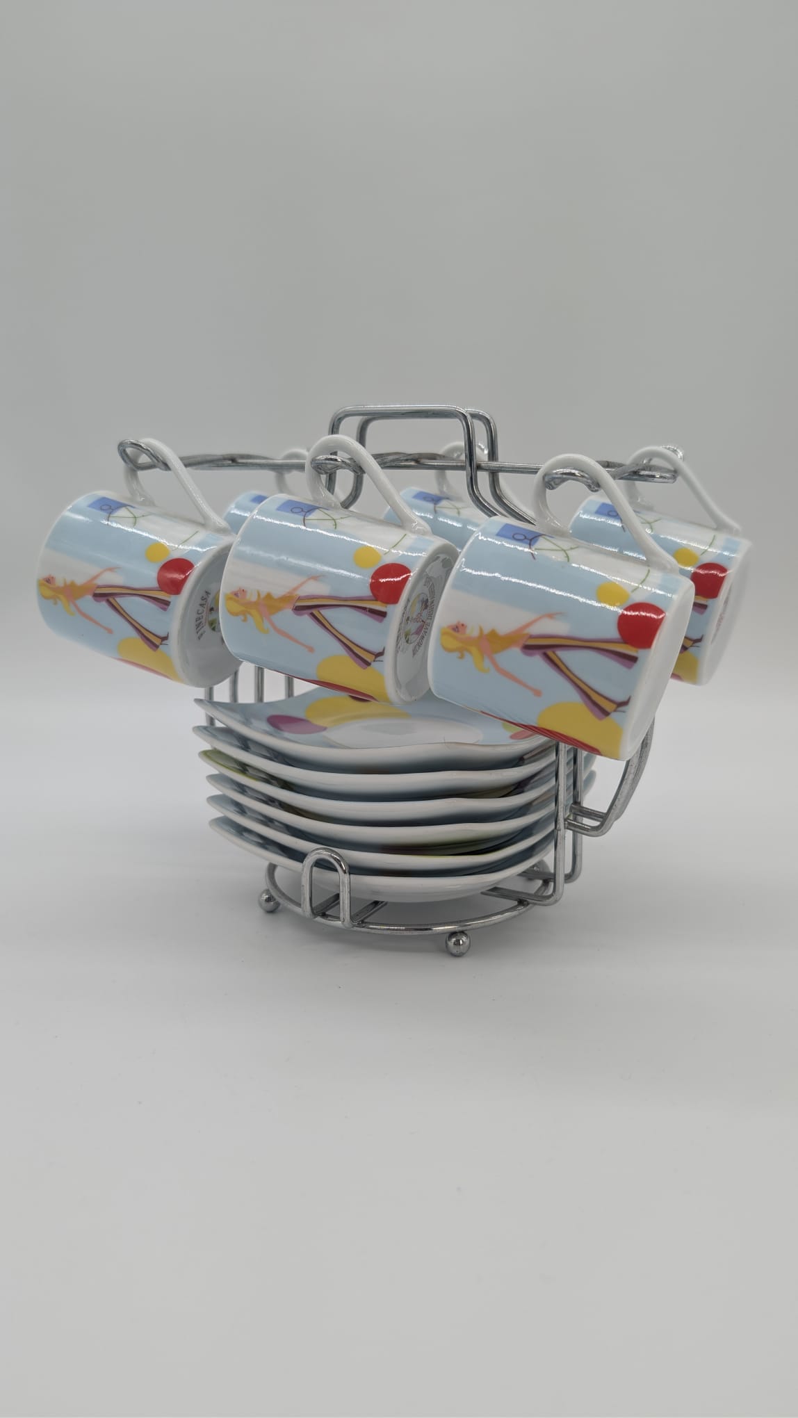 Elegant coffee set for 6 people on an espresso stand. Porcelain mug with colourful patterns, ideal for everyday use or as a gift.
