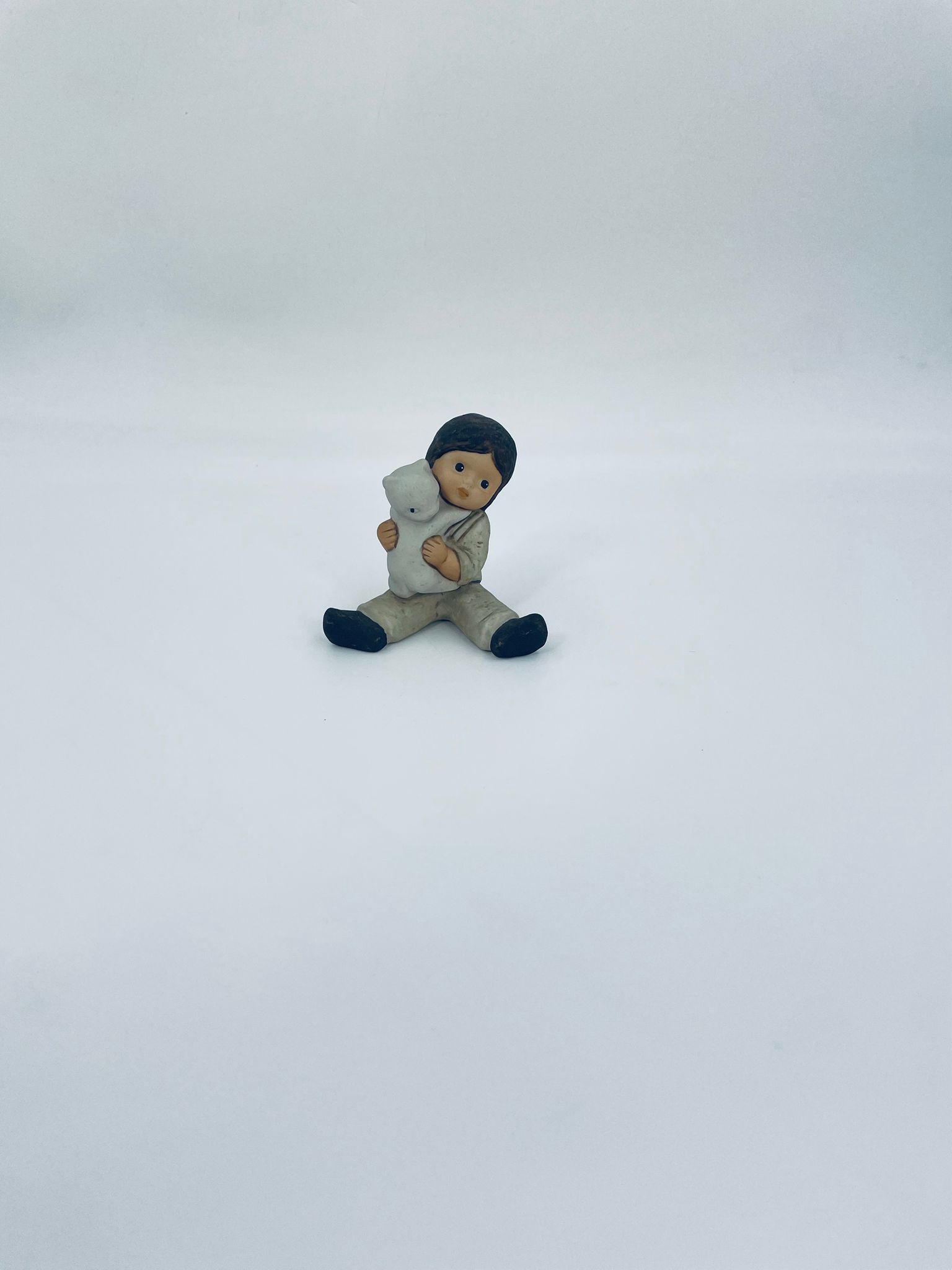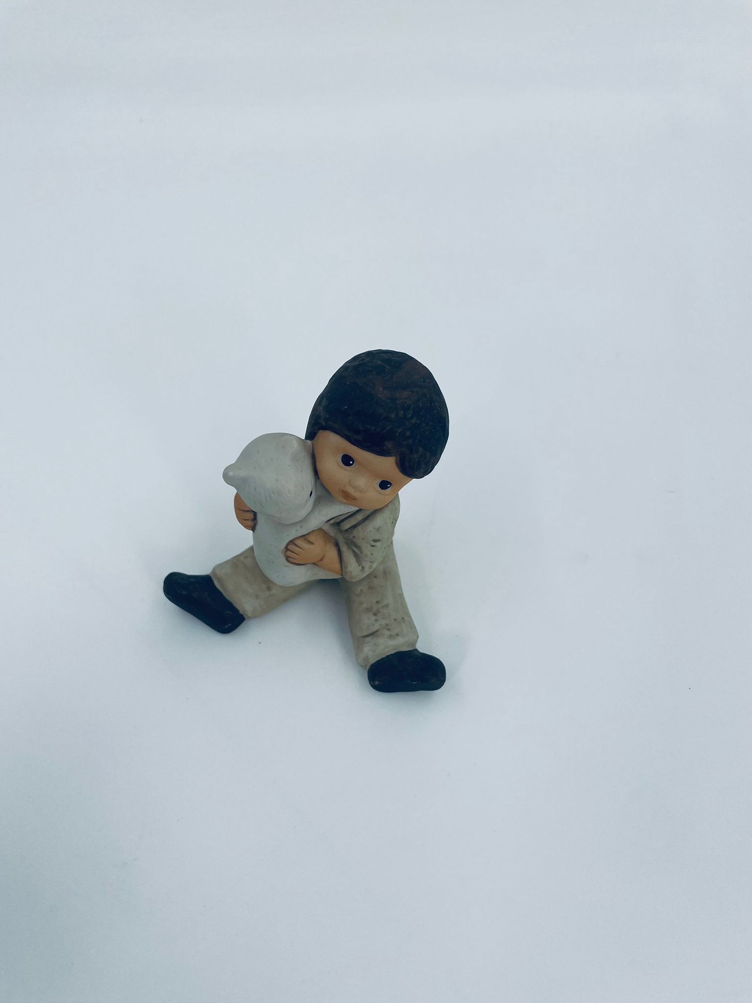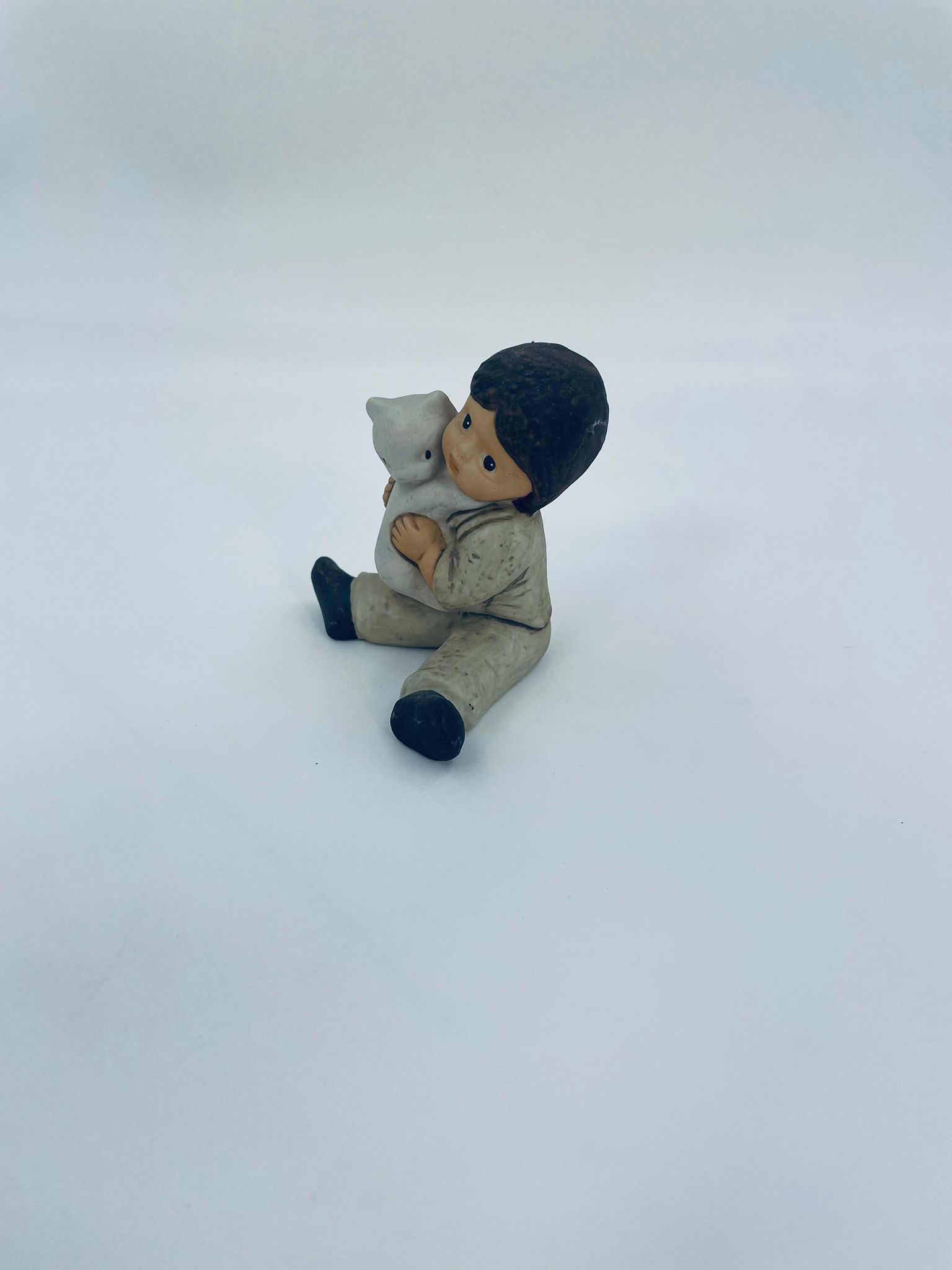 Collector's figurine by Goebel Nina Marco, made of porcelain. The figurine depicts a seated boy holding a cute little cat.