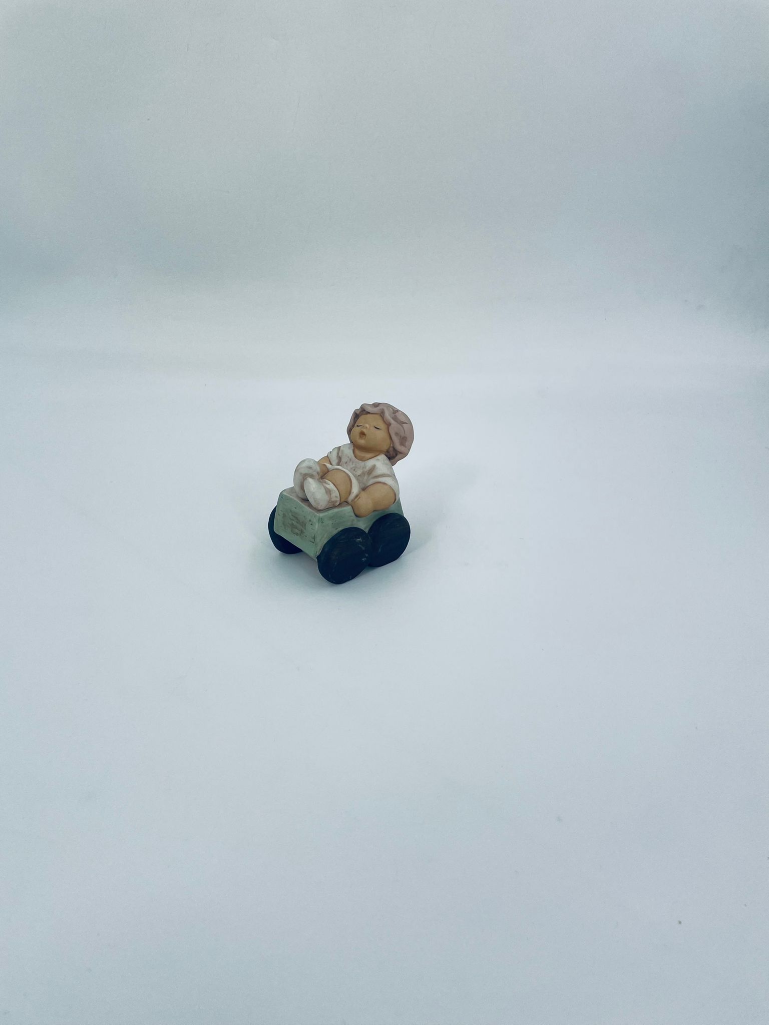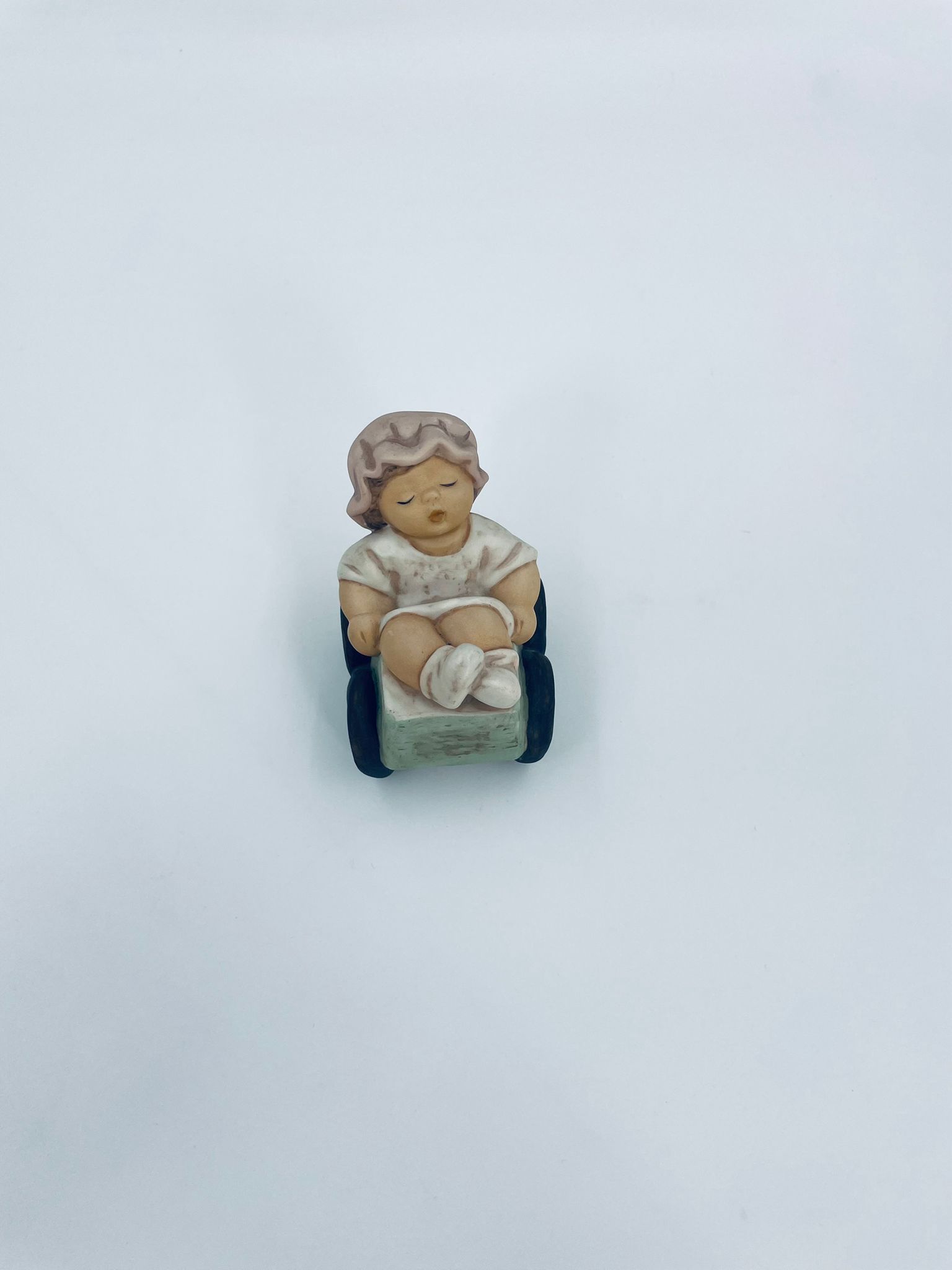 Collector's figurine by the Goebel Nina Marco label, made of porcelain. The figurine depicts a little sleeping girl in a pushchair.