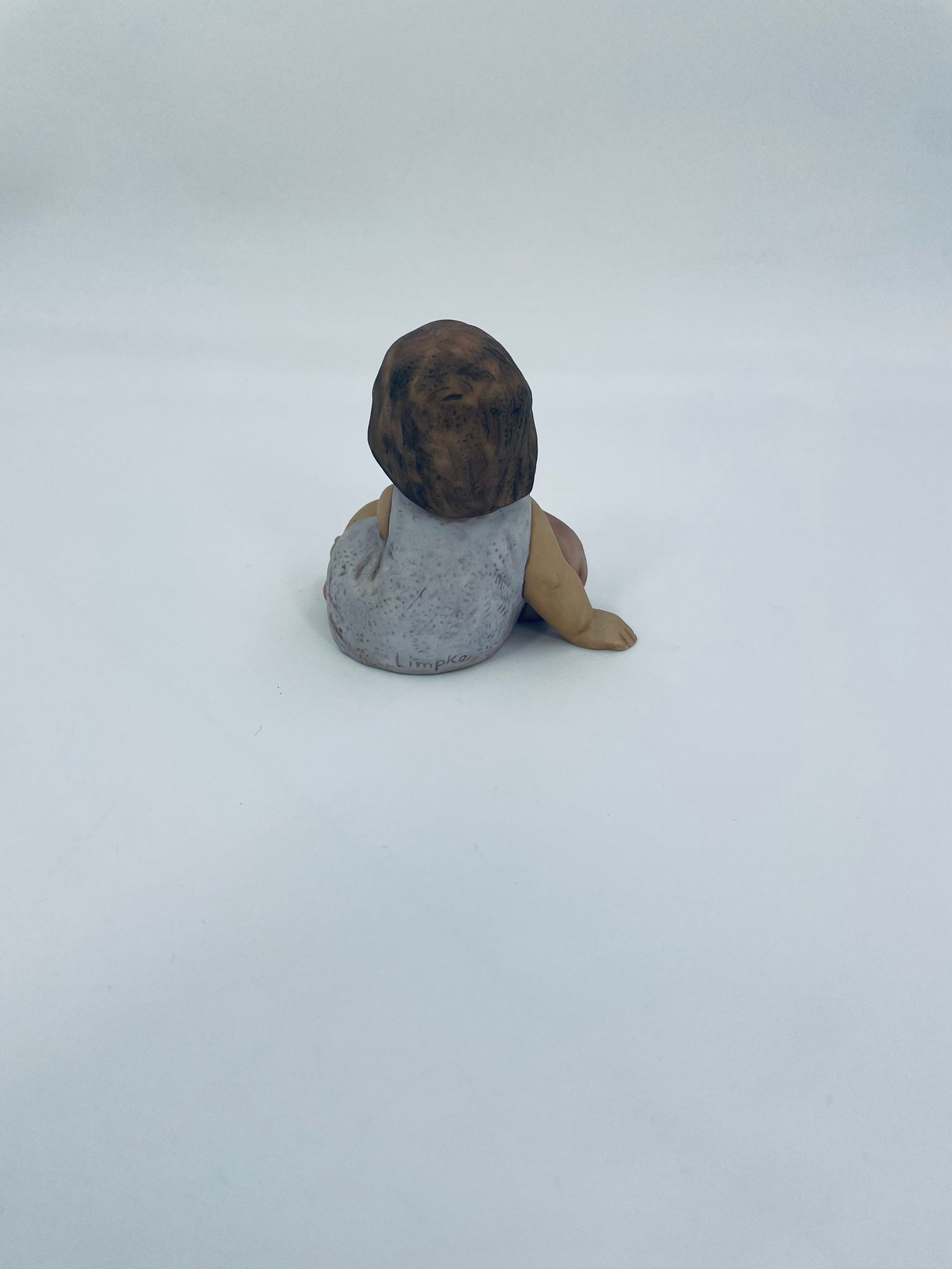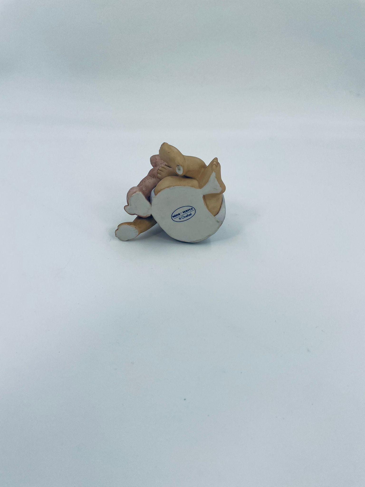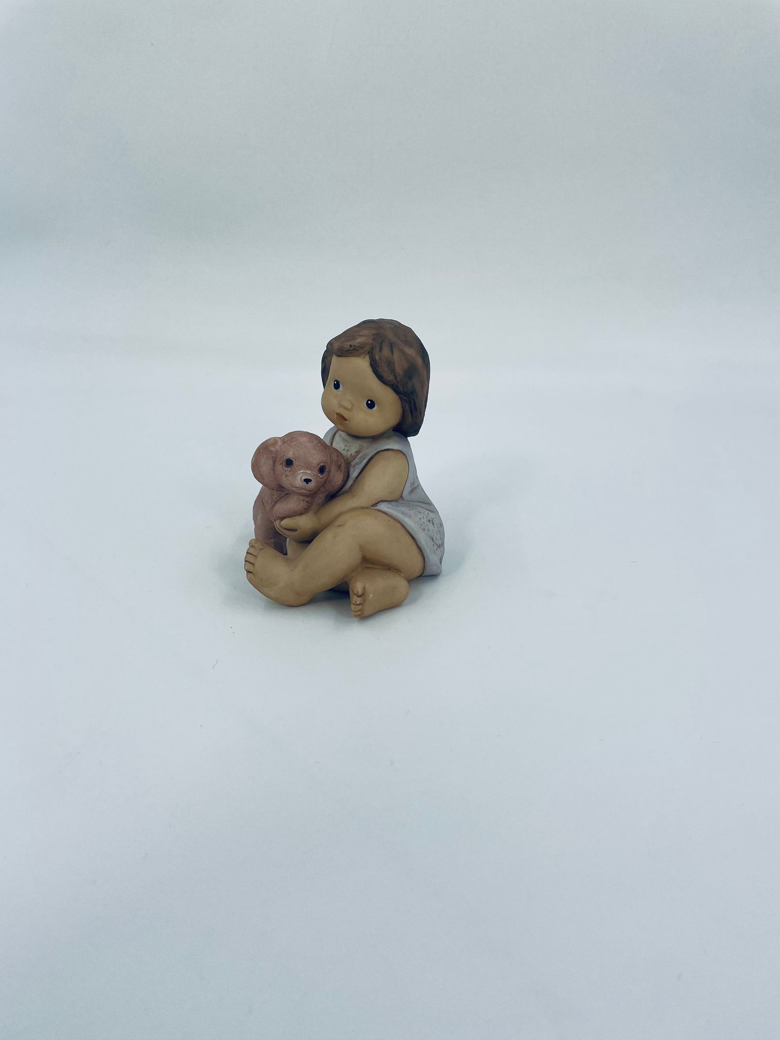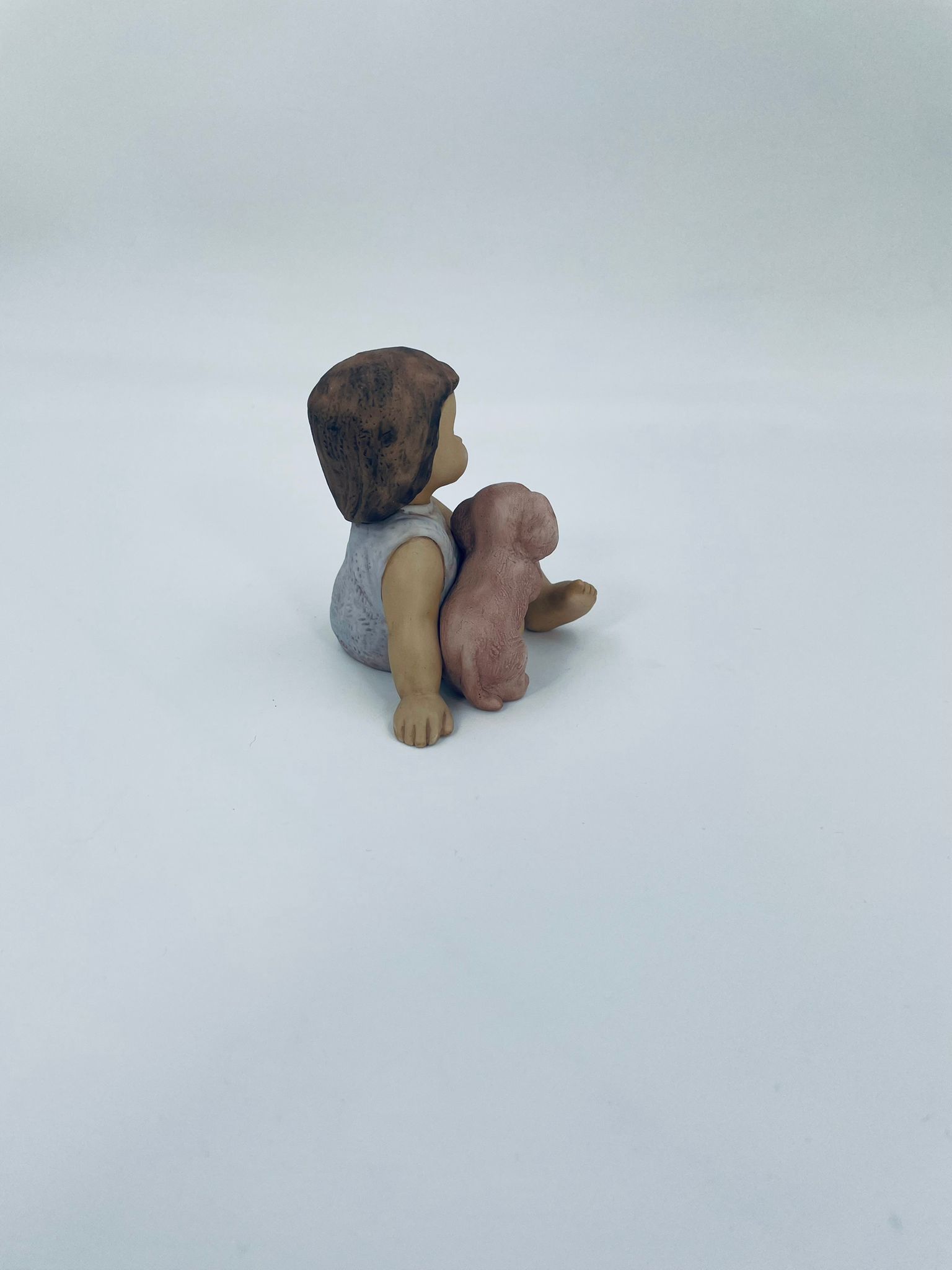 Decorative figurine by Goebel Nina Marco, made of porcelain. The figurine depicts a smiling girl, seated, holding a small dog.