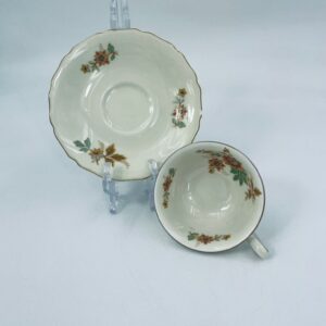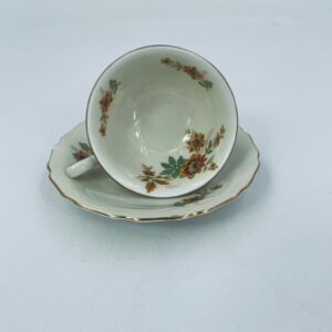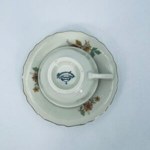 Porcelain duo set by the Thomas Ivory Bavaria label in ecru with floral motif and gold finish on the rims. Porcelain produced between 1945 and 1971.