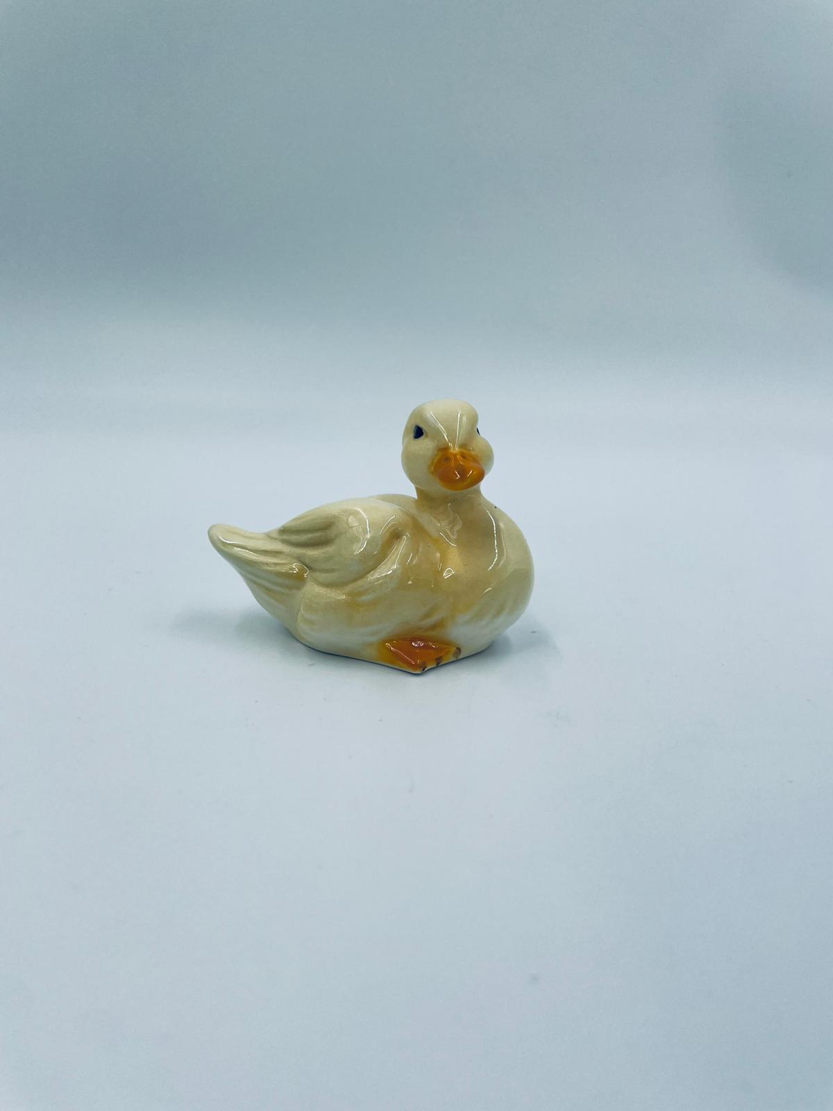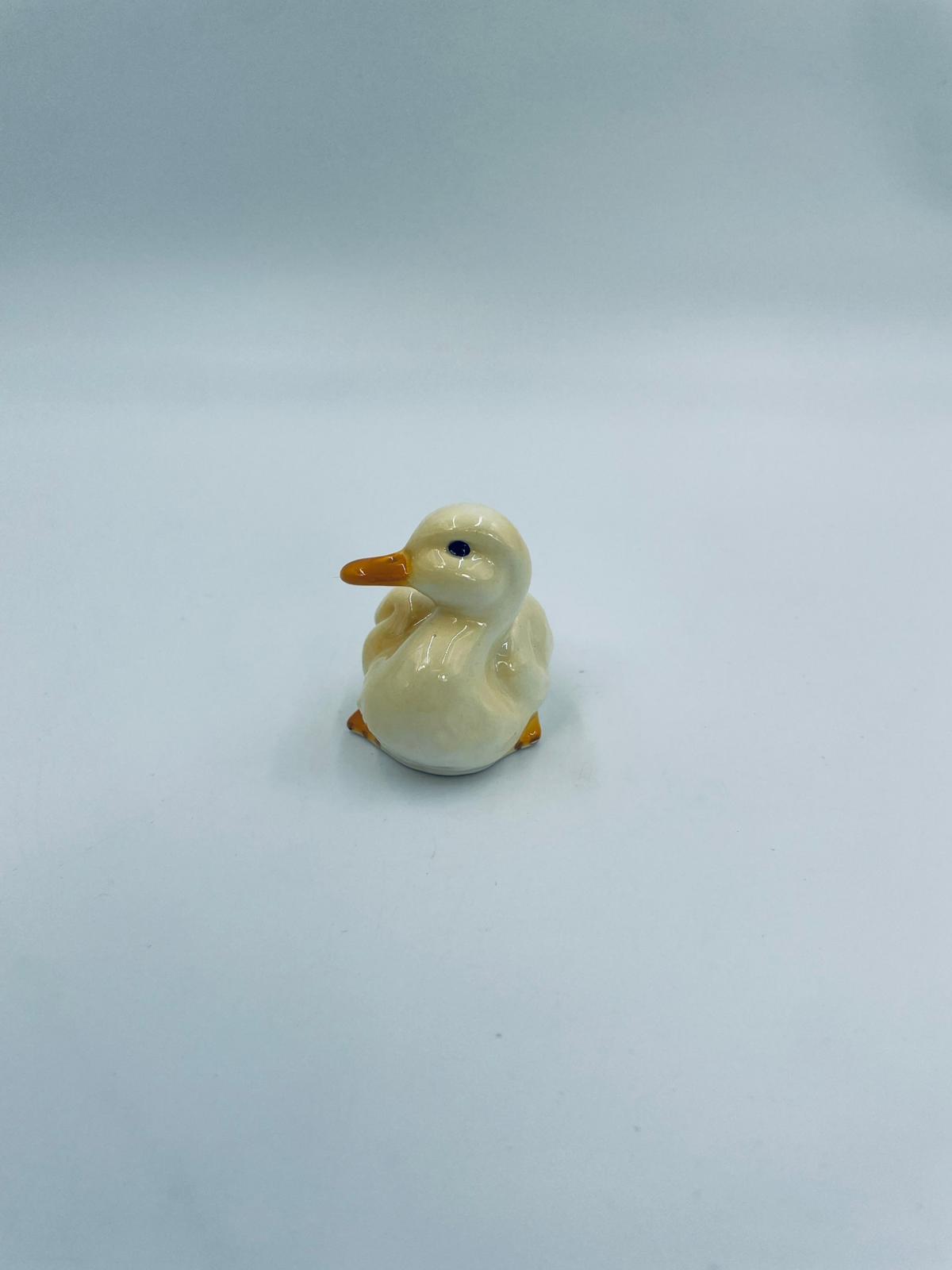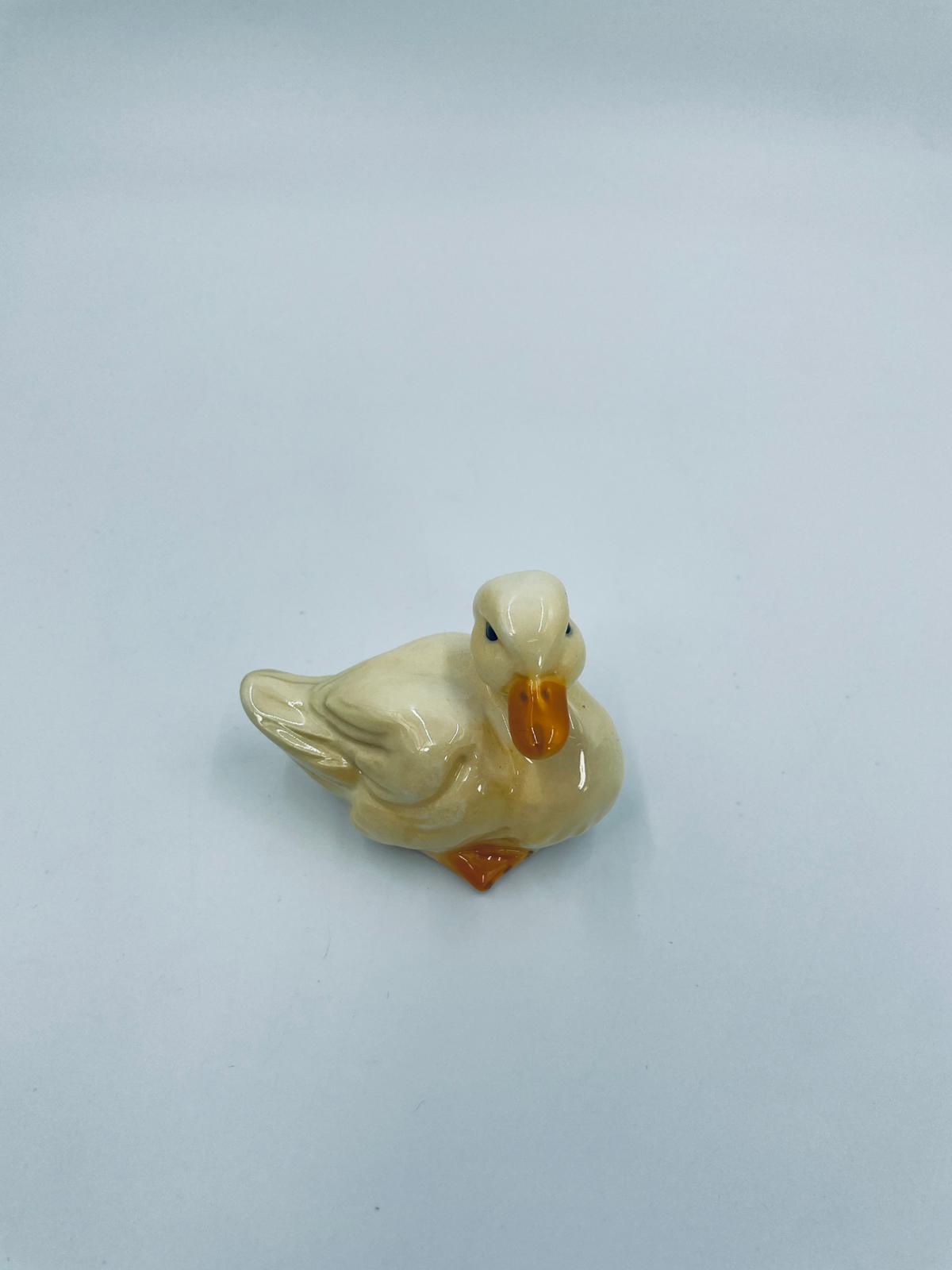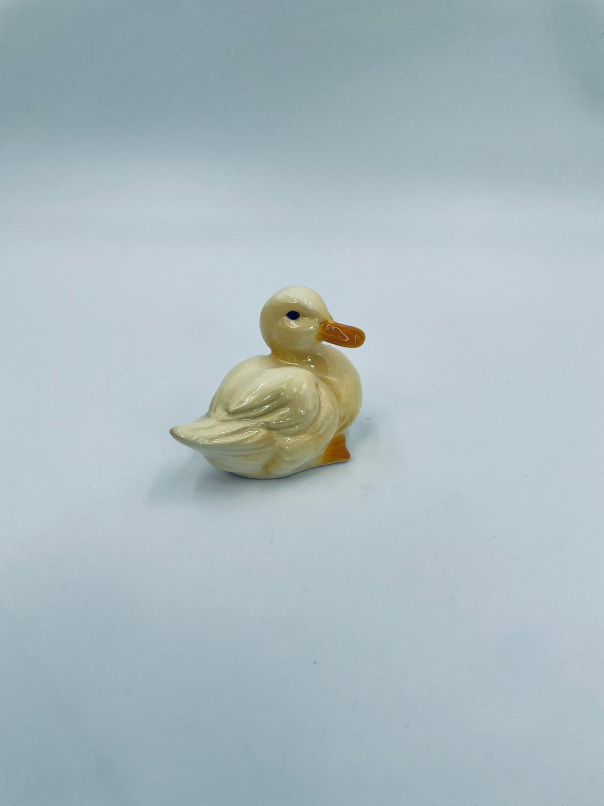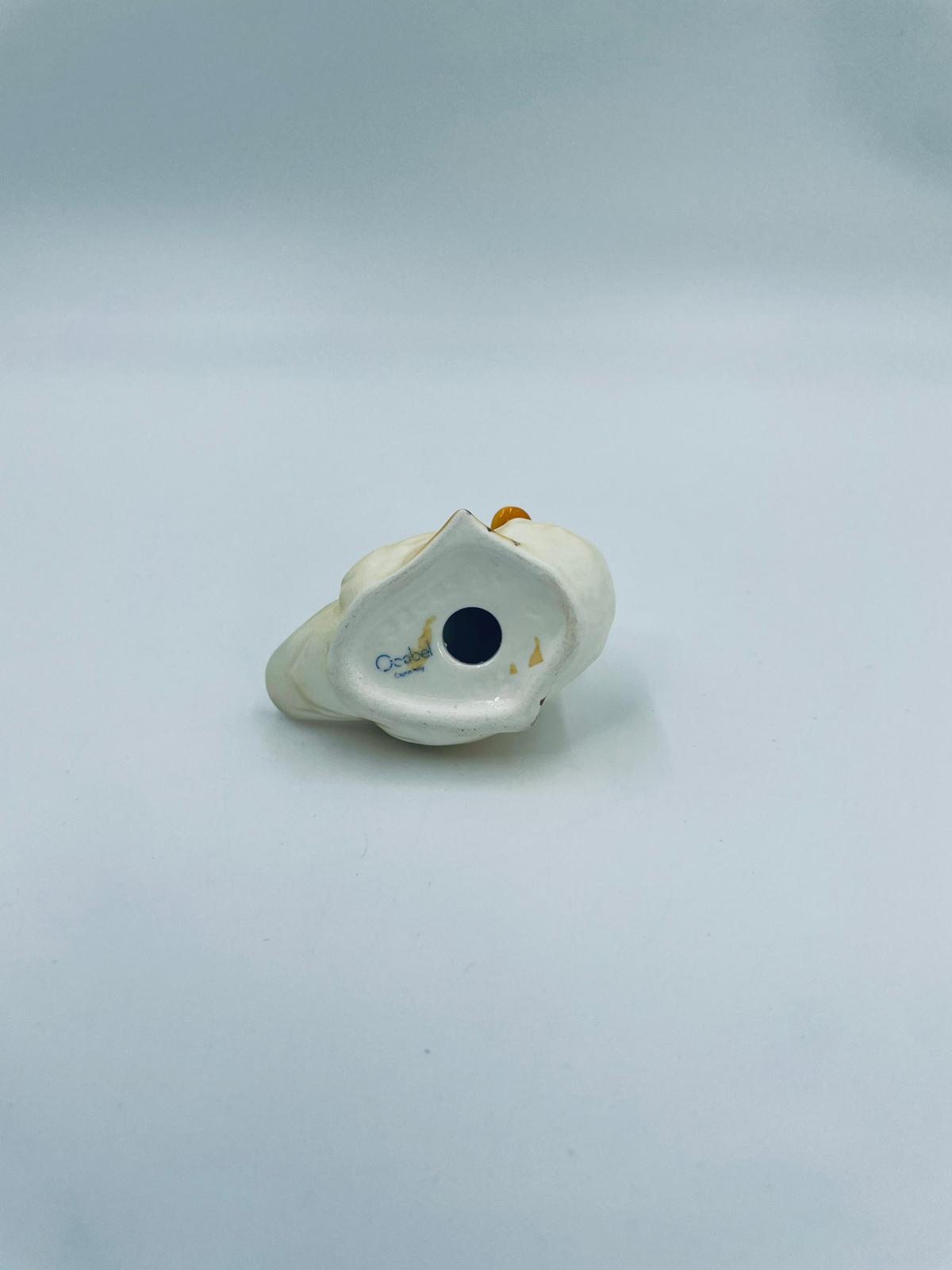 Collector figurine by the Goebel label, made of high-quality porcelain. The figurine depicts a small, cute yellow duck with an orange beak.