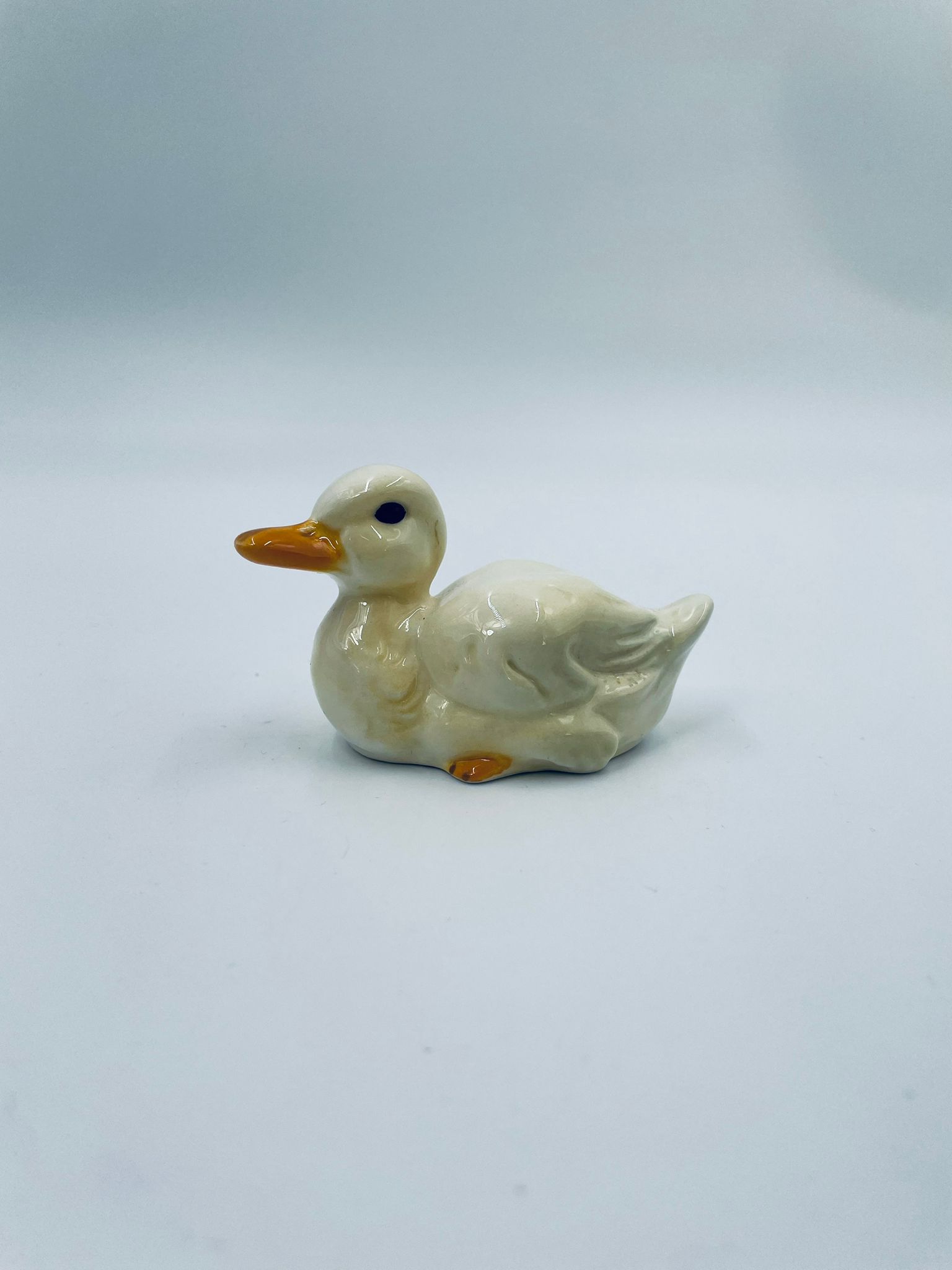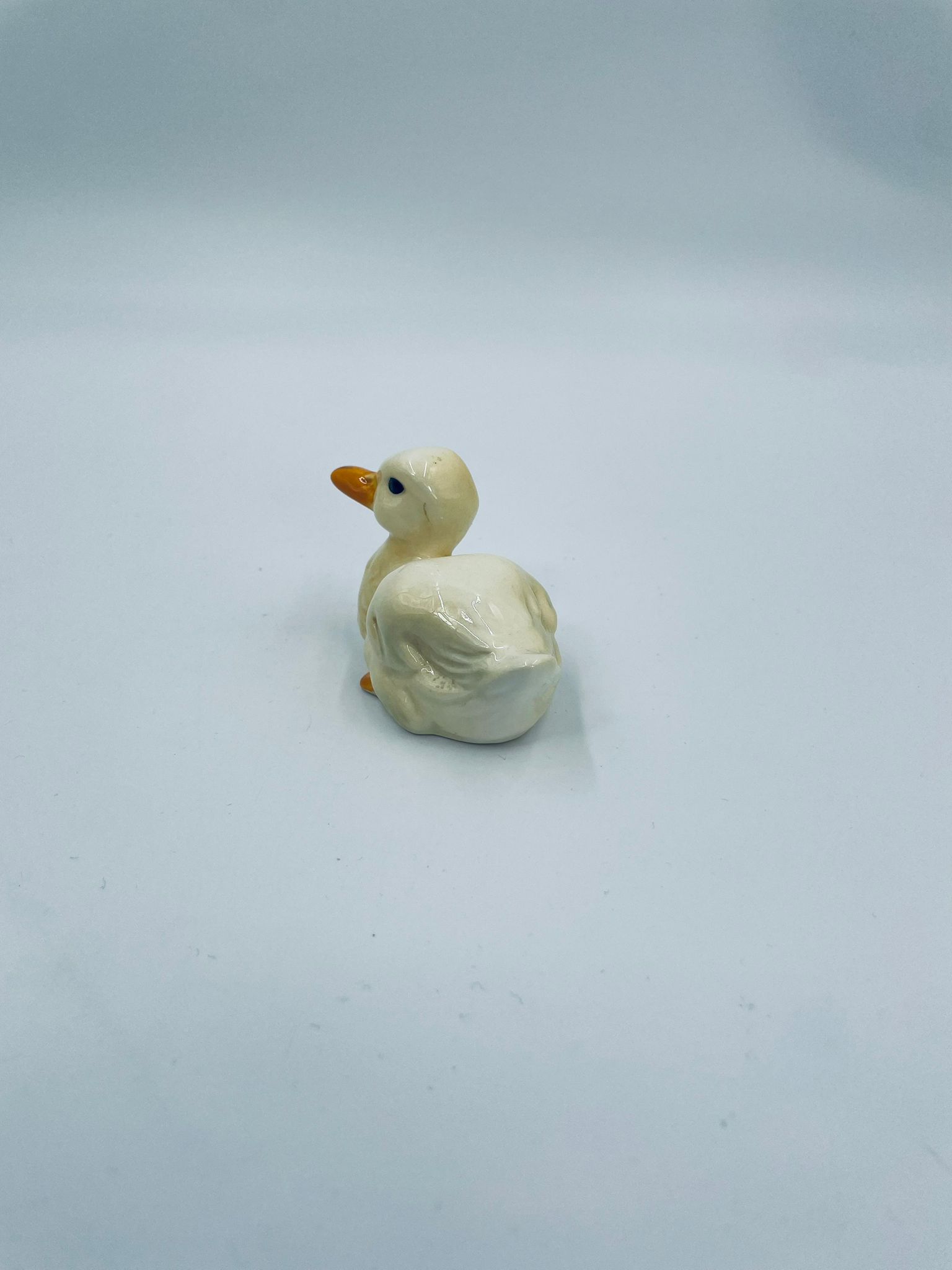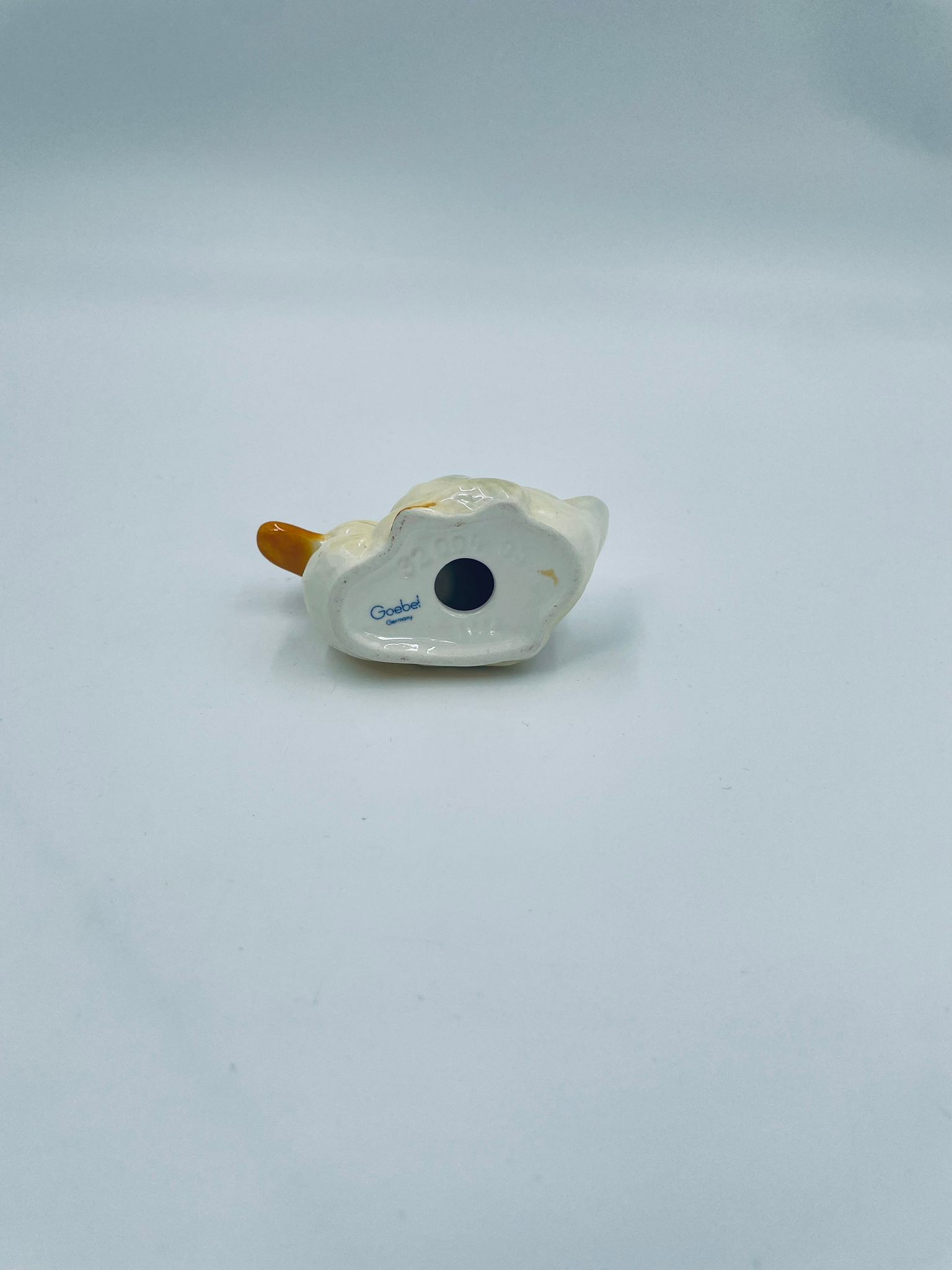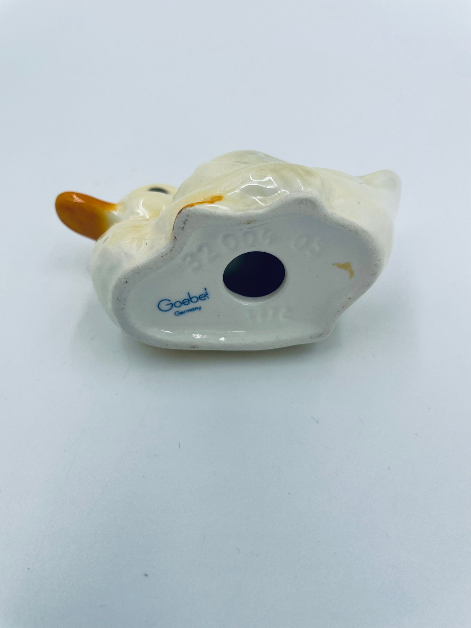Collector figurine by the Goebel label, made of high-quality porcelain. The figurine depicts a small, cute yellow duck with an orange beak.