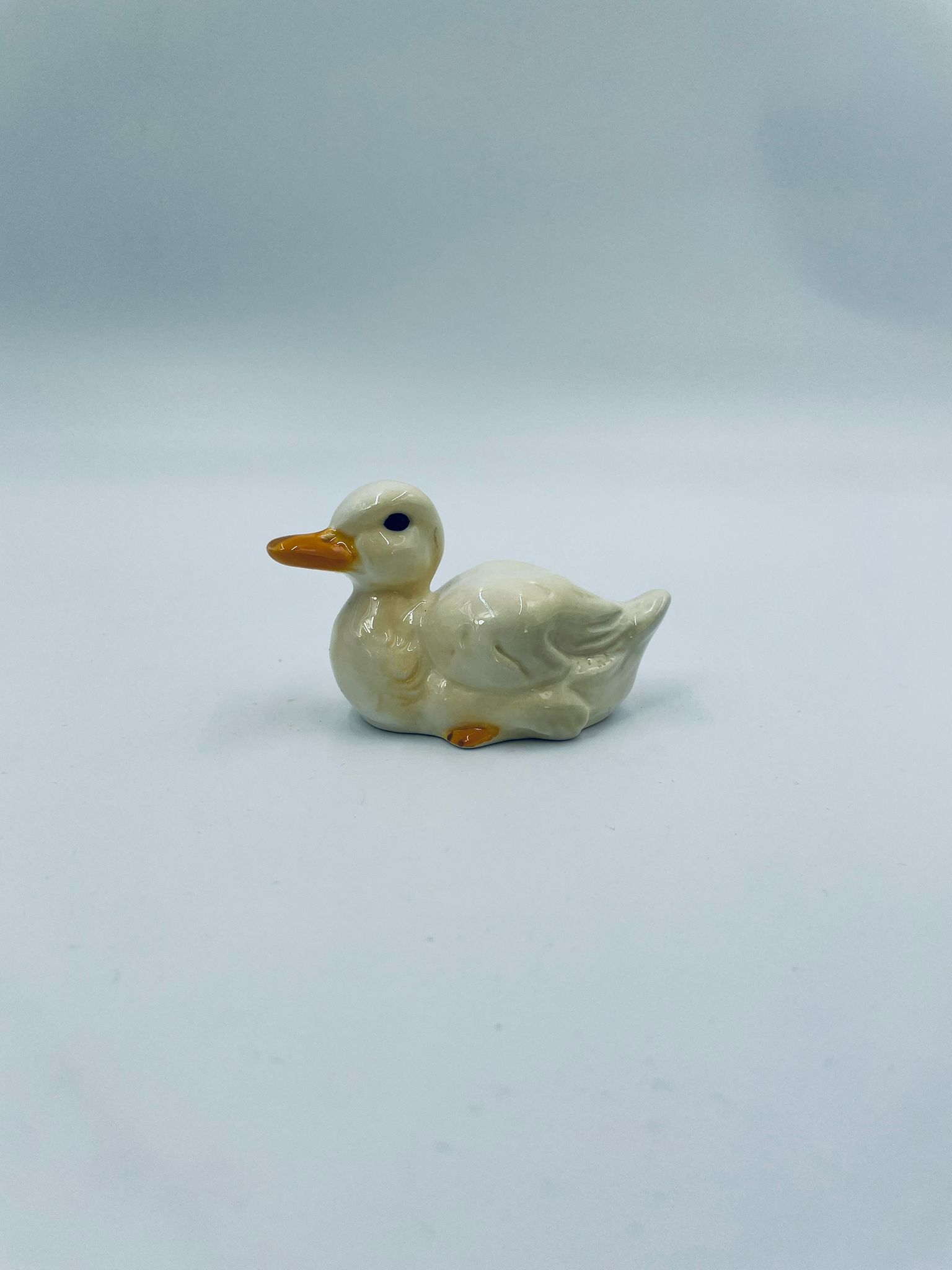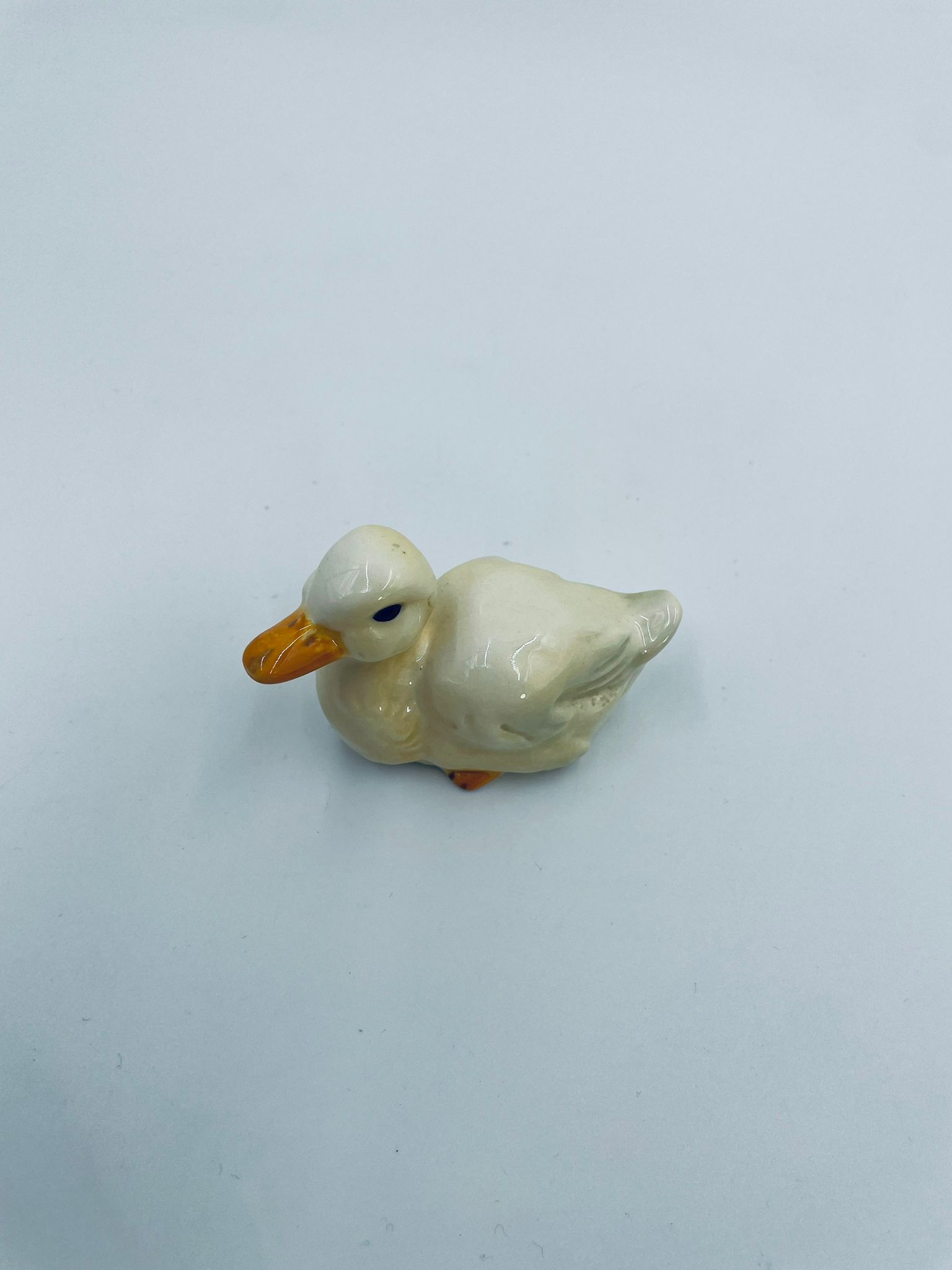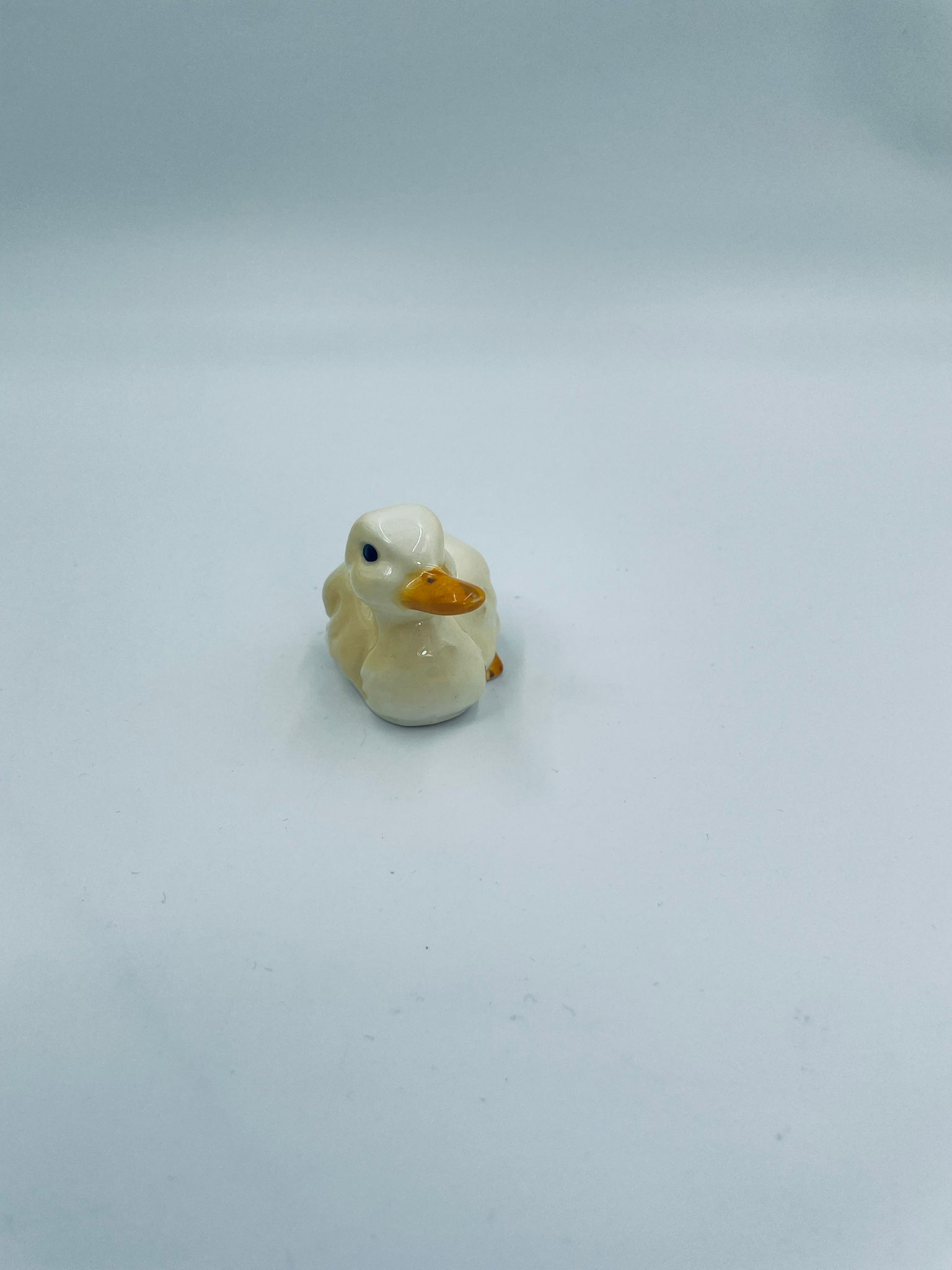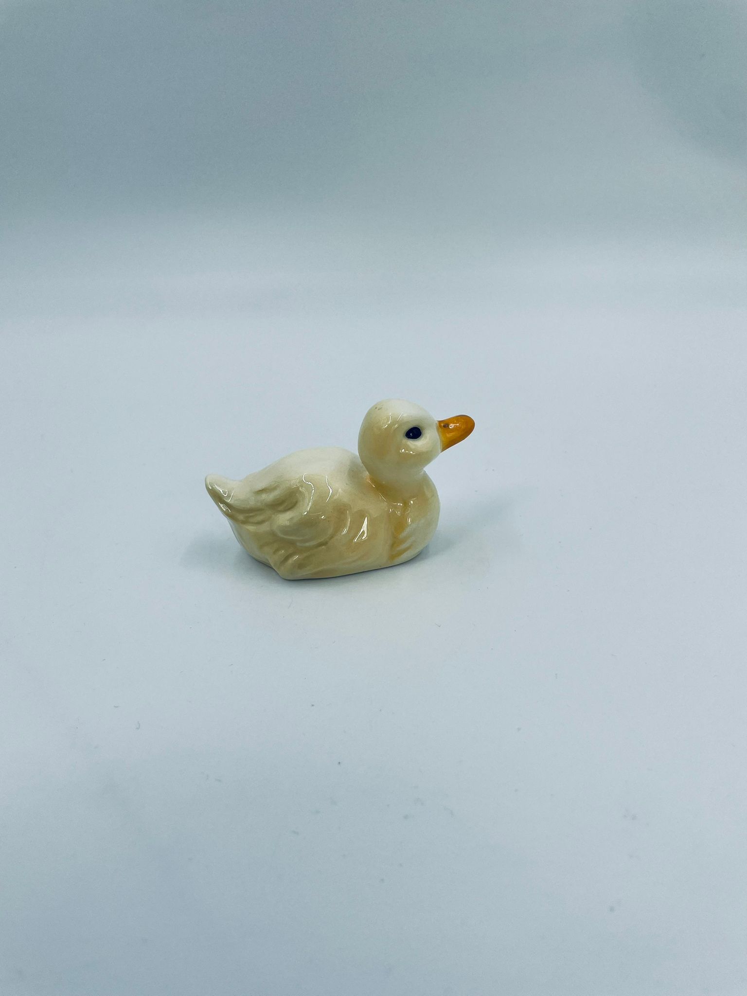 Collector figurine by the Goebel label, made of high-quality porcelain. The figurine depicts a small, cute yellow duck with an orange beak.