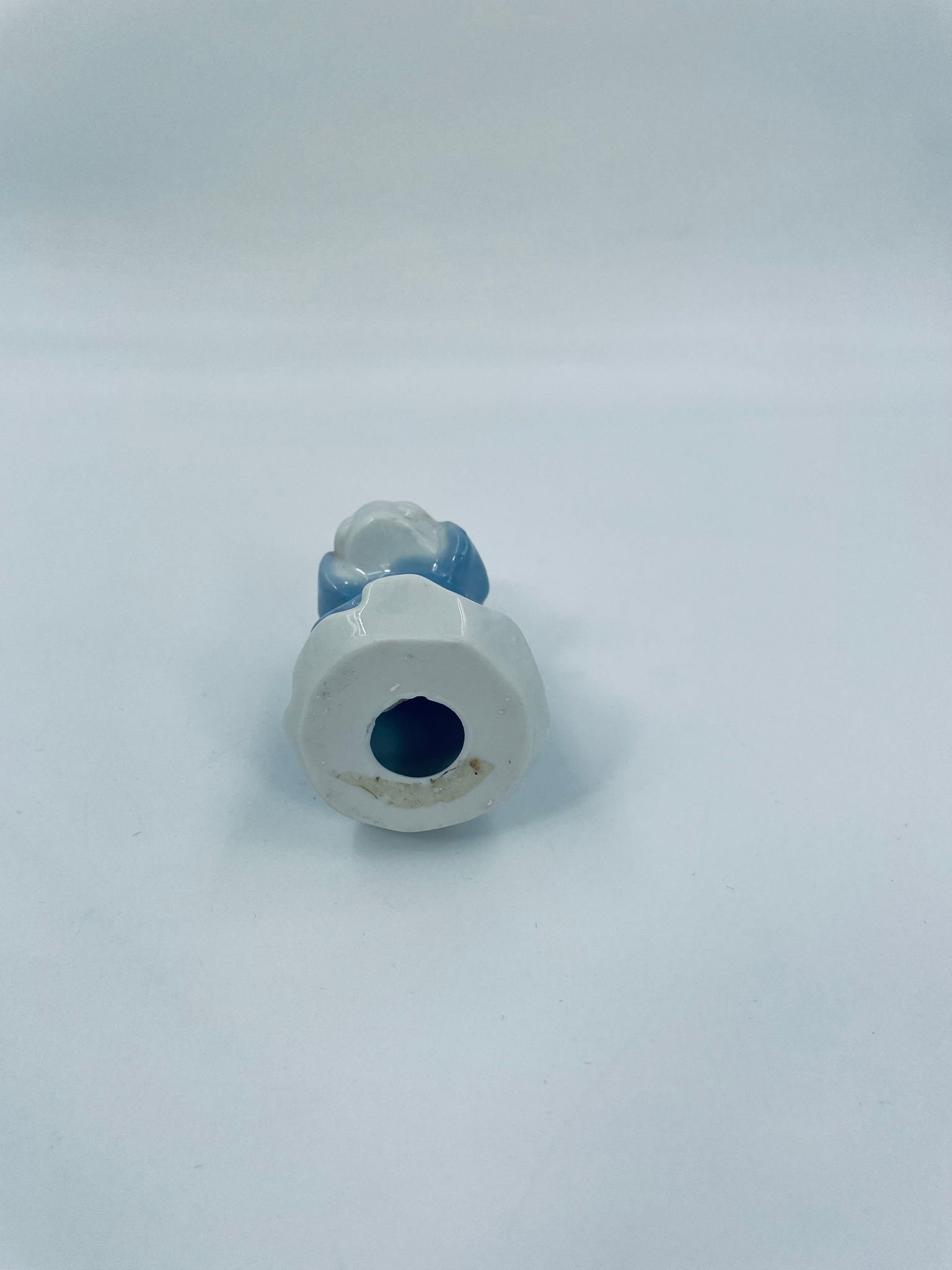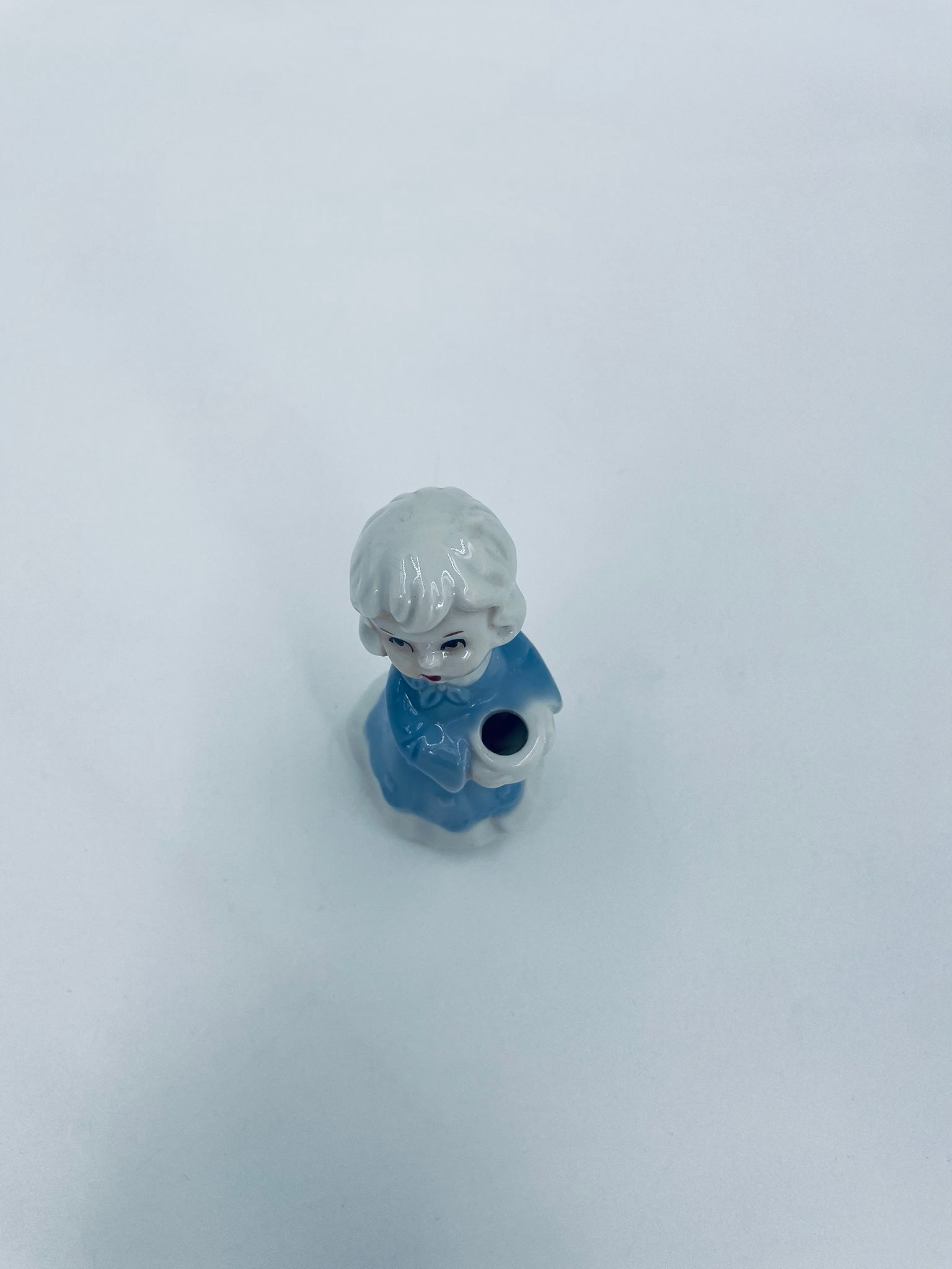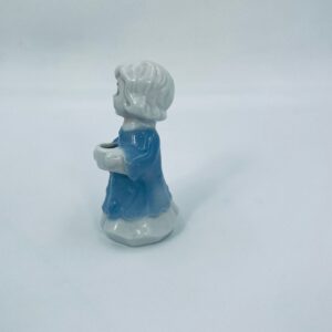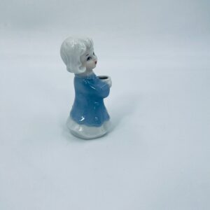 Vintage style collector's figurine, made of porcelain. A Christmas choir figurine, it depicts a girl dressed in a blue dress, holding a small candlestick.