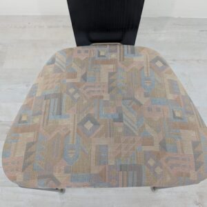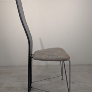 Stylish retro-style lounge chair from the 1980s. Chair designed by Torstein Flatoy, a well-known Norwegian furniture designer. Made of metal construction and upholstered in a colourful pattern. It has a distinctive high back giving it a unique look. A piece of furniture in good condition, ideal for complementing a vintage style interior design.