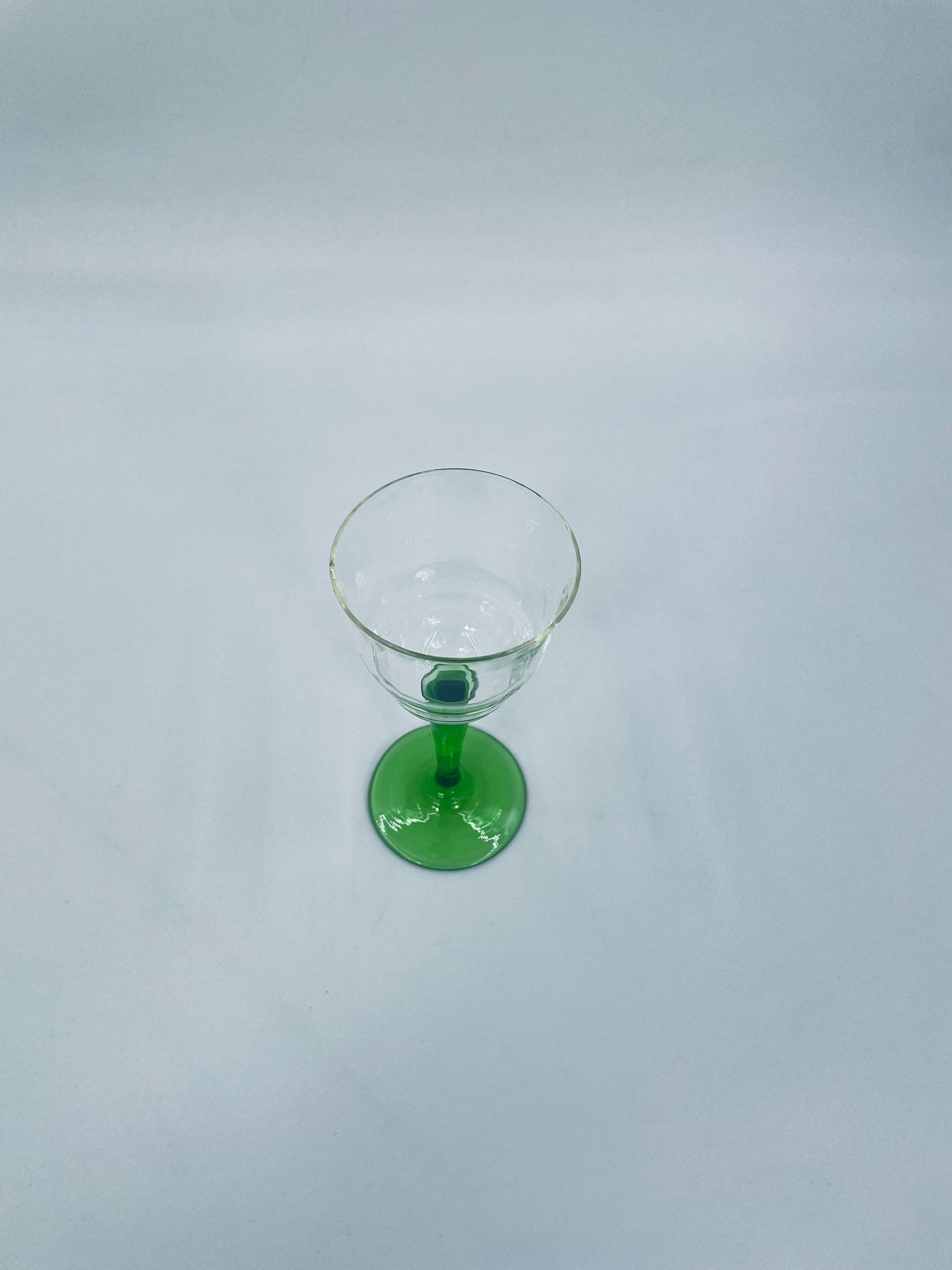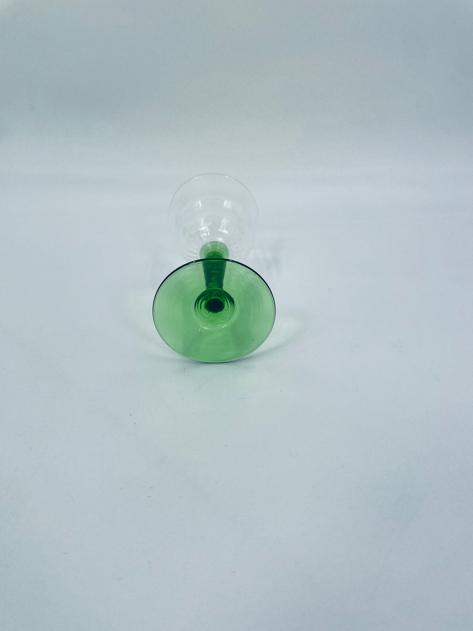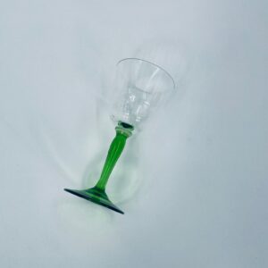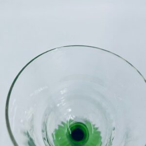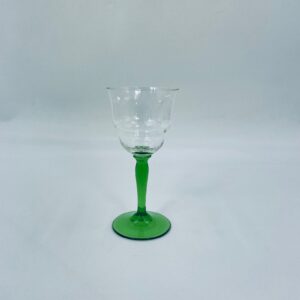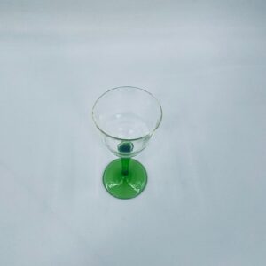 Vintage style liqueur/wine glass, made of high quality crystal glass. The glass is characterised by its translucent black and the green leg and base. It has a small loss on the top rim.