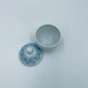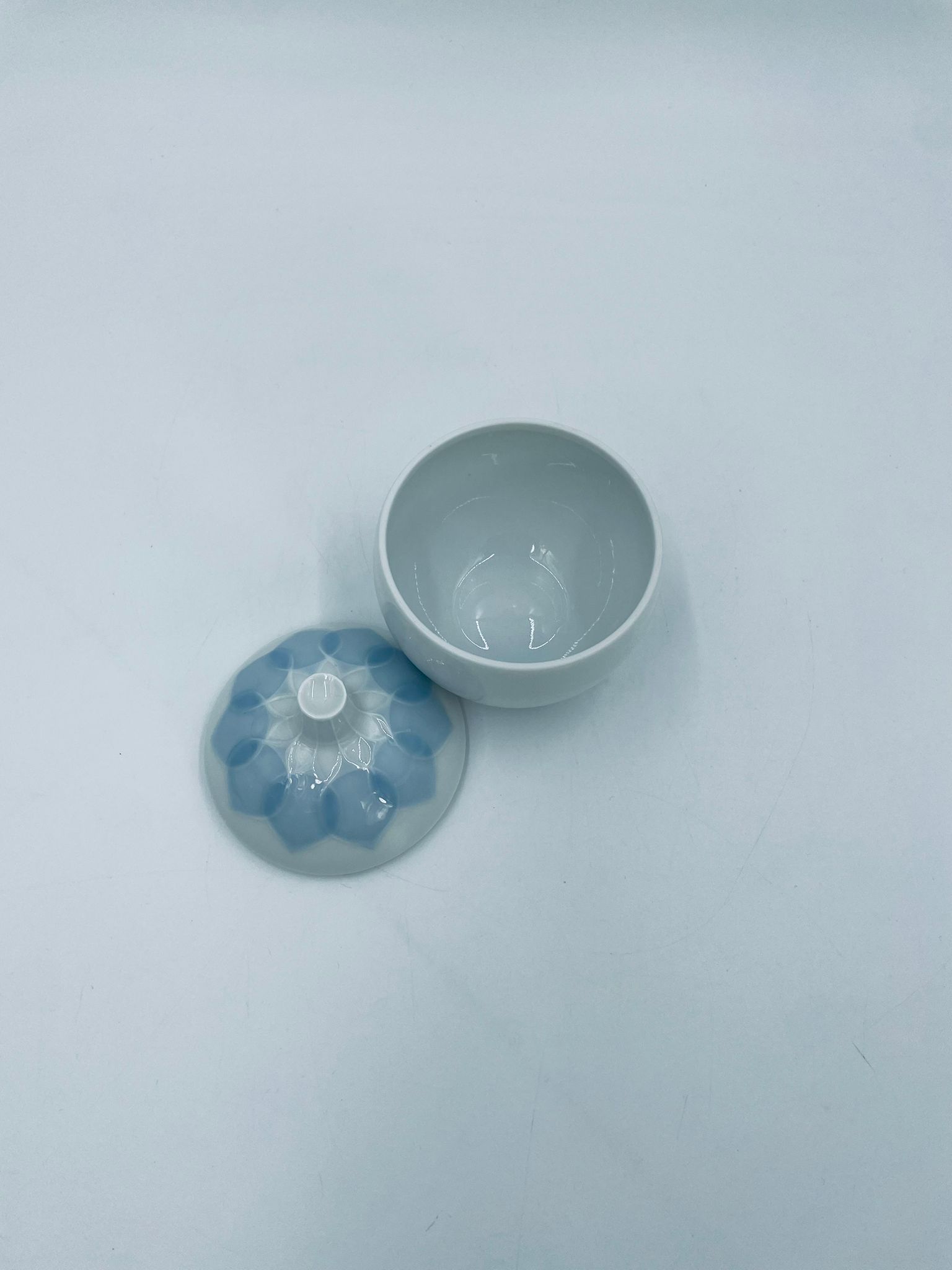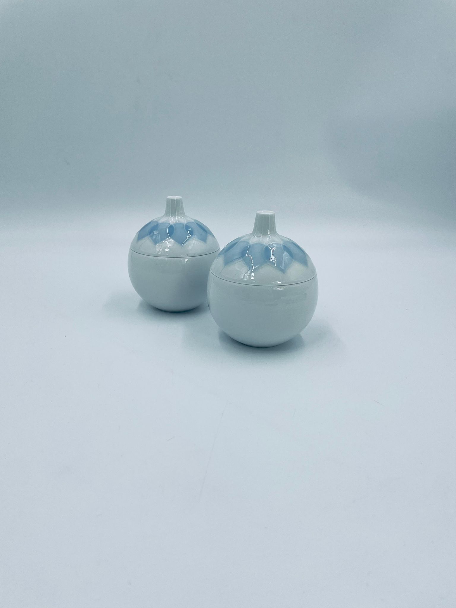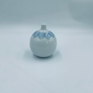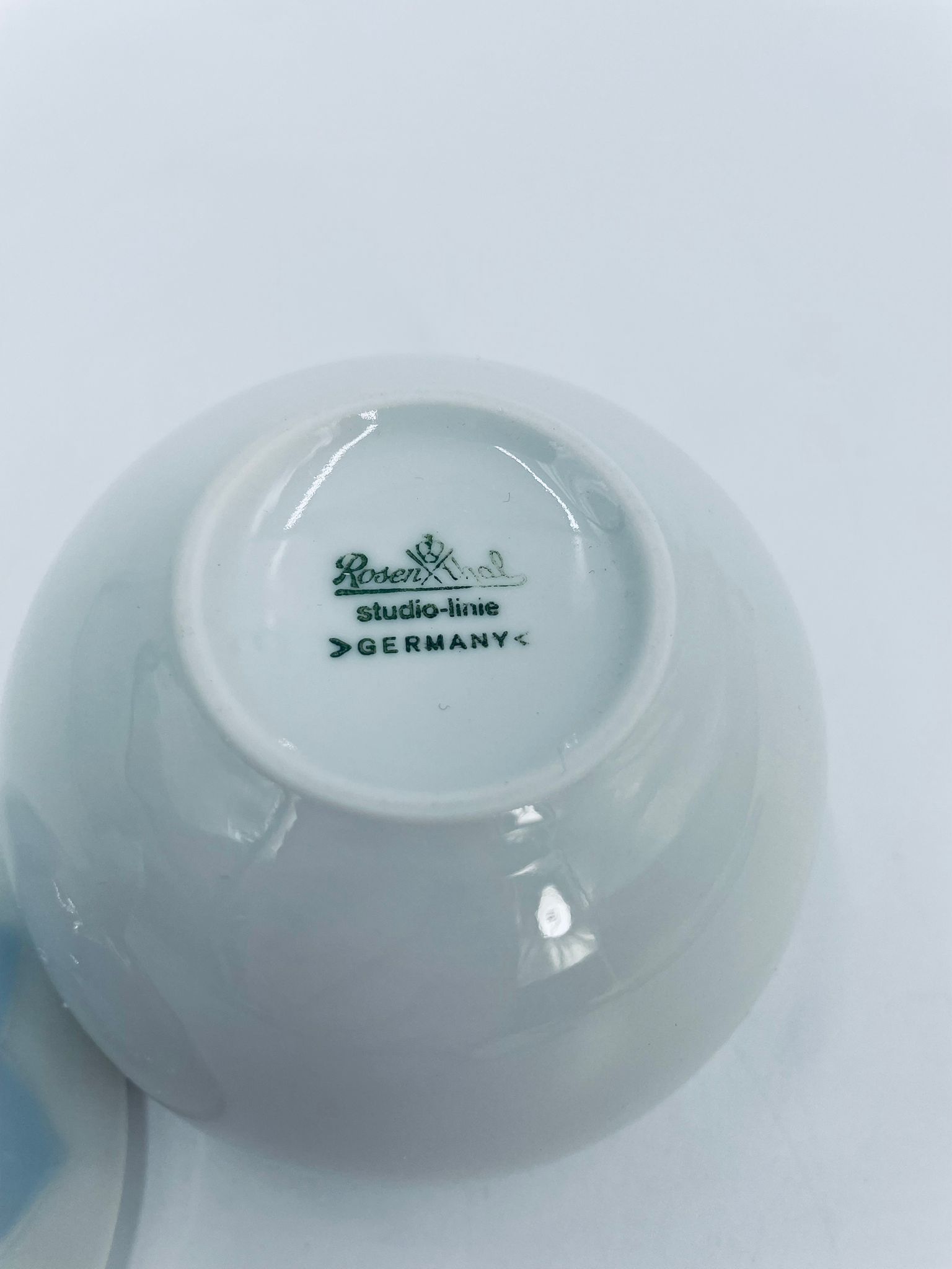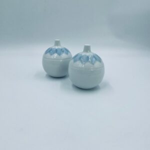Cukiernica renomowanej wytwórni Rosenthal Studio Line z serii Lotus Blau , zaprojektowana przez duńskiego artystę Bjorna Wiinblada w 1964r, wykonana z najwyższej jakości białej porcelany. Cukiernica o kulistym kształcie z pokrywą ozdobioną wzorem „Blau” z delikatnym, geometrycznym motywem przypominający liście lotosu w niebieskim odcieniu oraz z ozdobnym uchwytem.