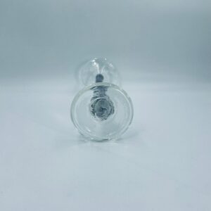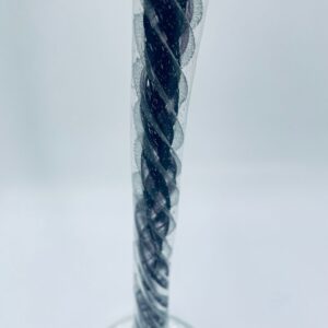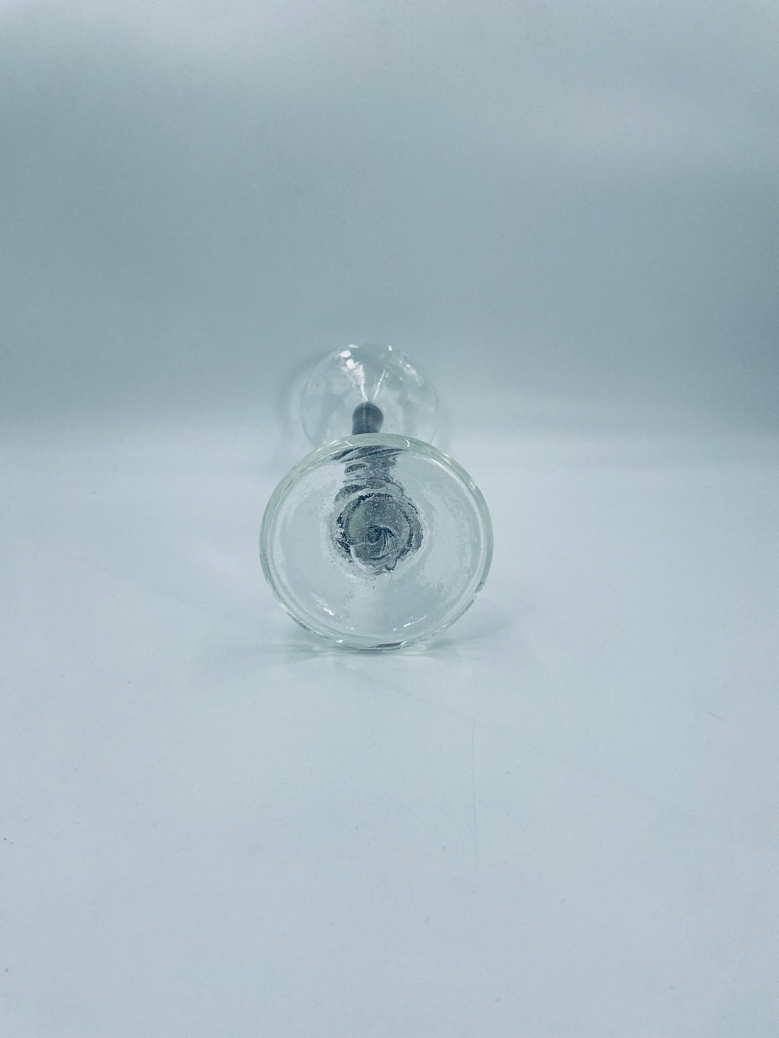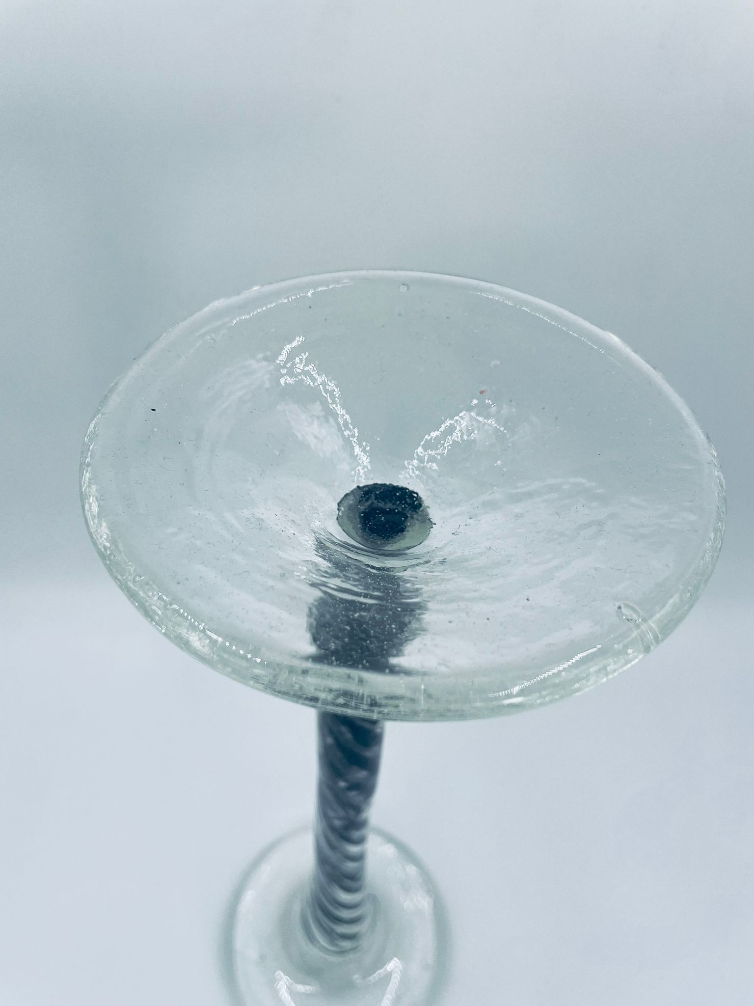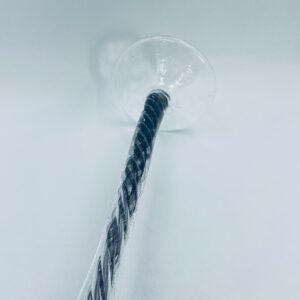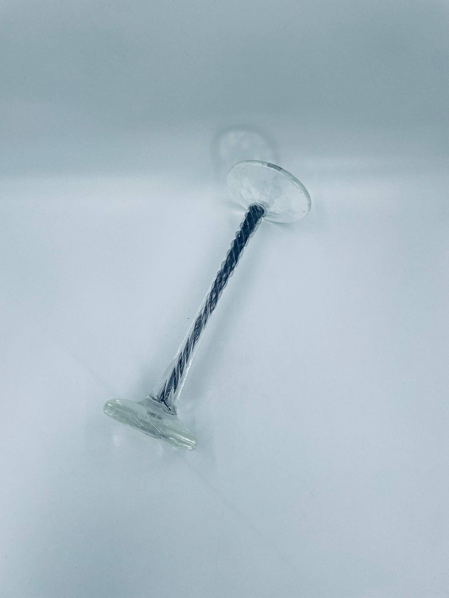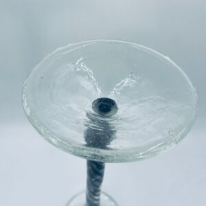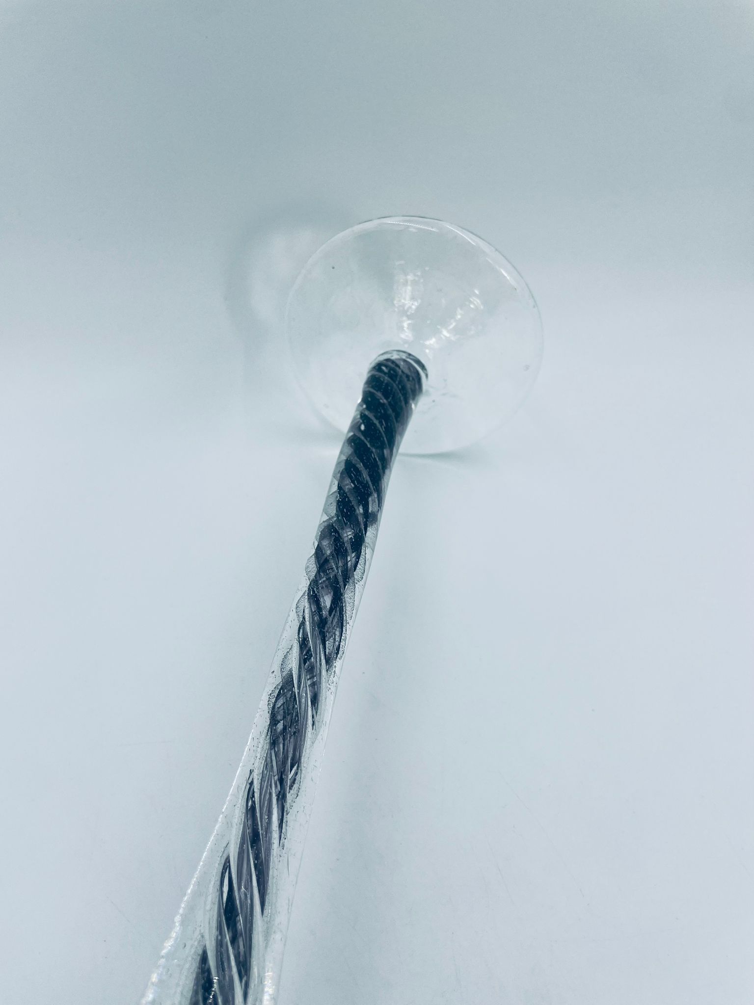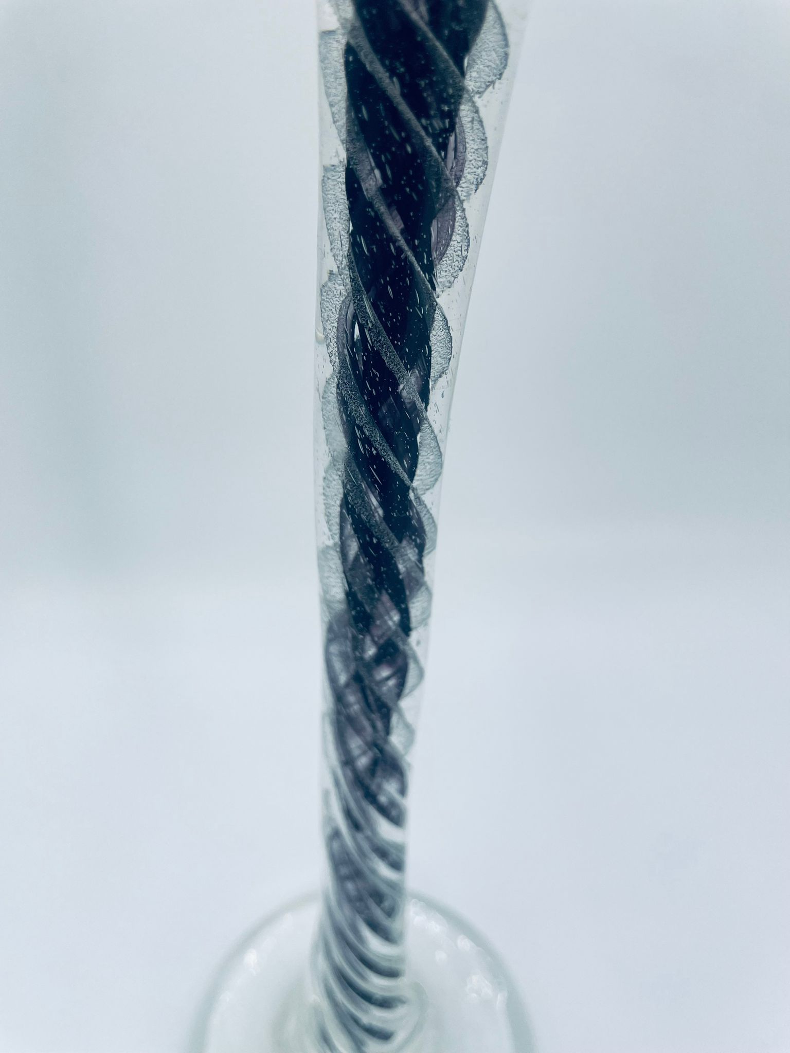 Vintage style decorative candle holder, made of high quality art glass, crystal. The candle holder is transparent with bubbles in the centre and has a decorative leg in which a spiral effect is embedded.