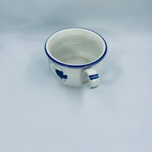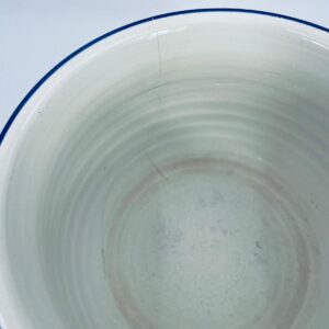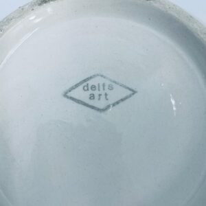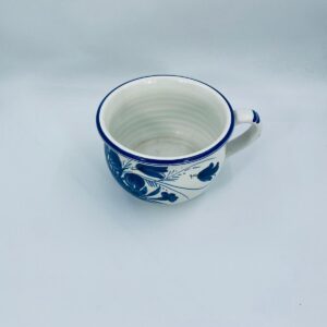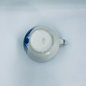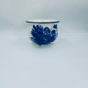Flower pot by the Delfs Art label, made of good quality ceramic in ecru. A teacup-shaped flowerpot with a beautiful hand-painted cobalt floral decoration. It has a crack in it.