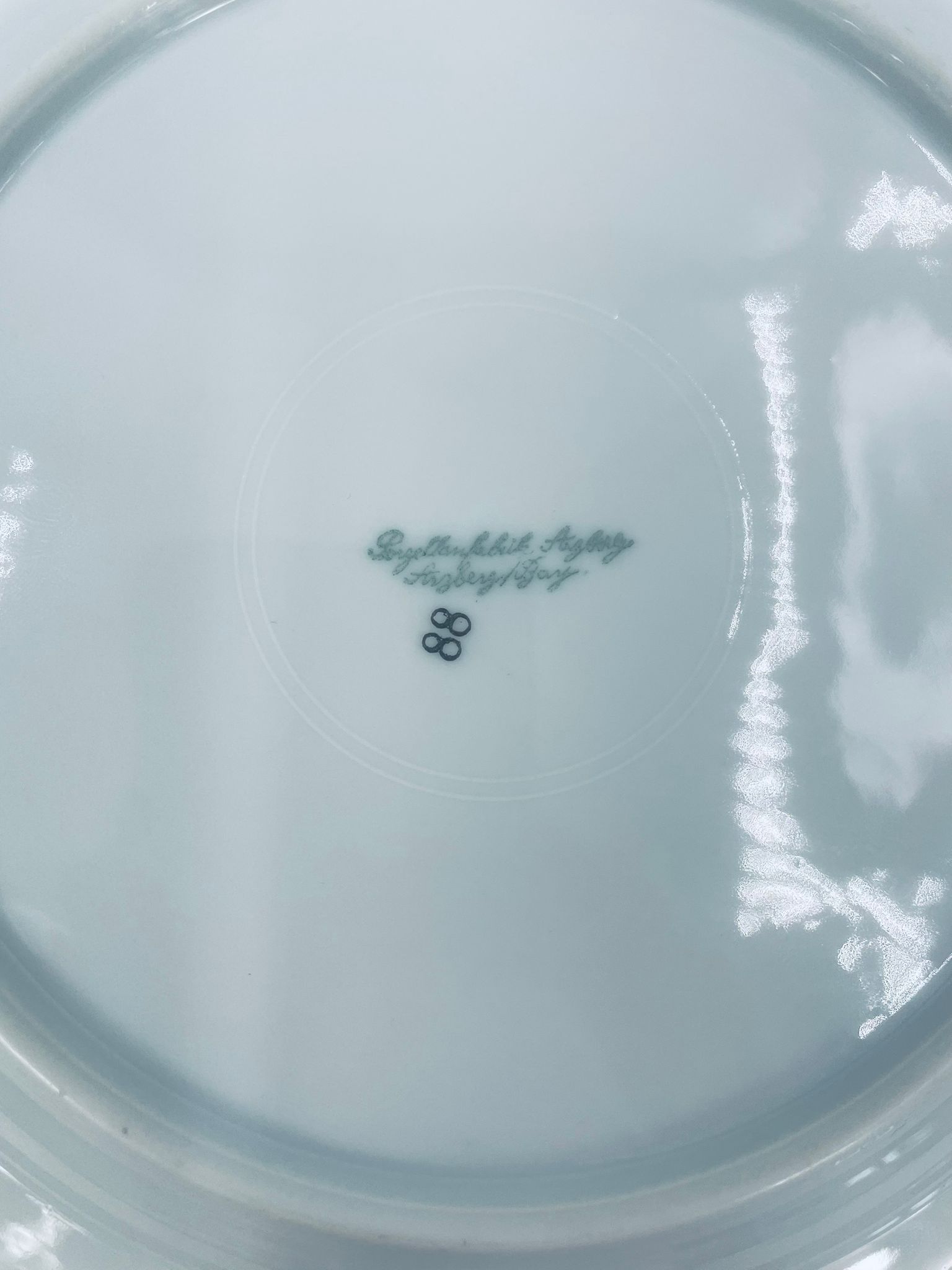 Dessert plate by the Arzberg Furstenberg label. Made of white porcelain with a flower motif, finished with gold rims.