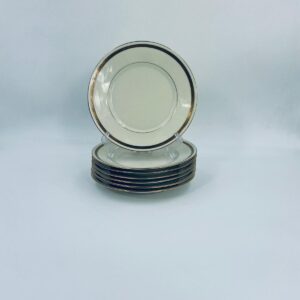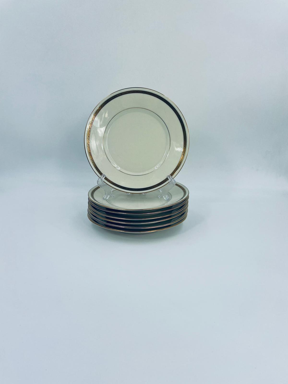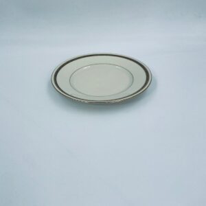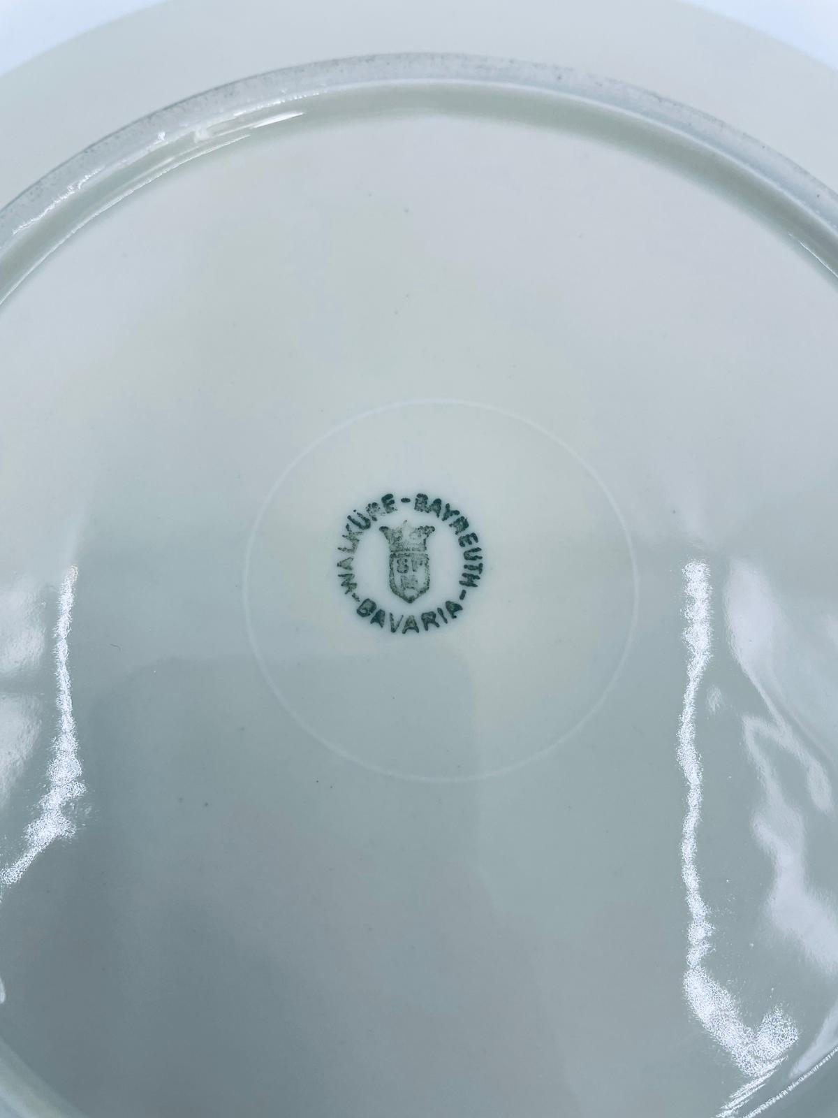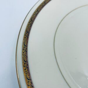 Dessert plate by the Walkure Bayreuth Bavaria label, made of high-quality porcelain in ecru. The plate is characterised by an elegant design with a gold band with a pattern around the plate and is finished with gilding on the rim.