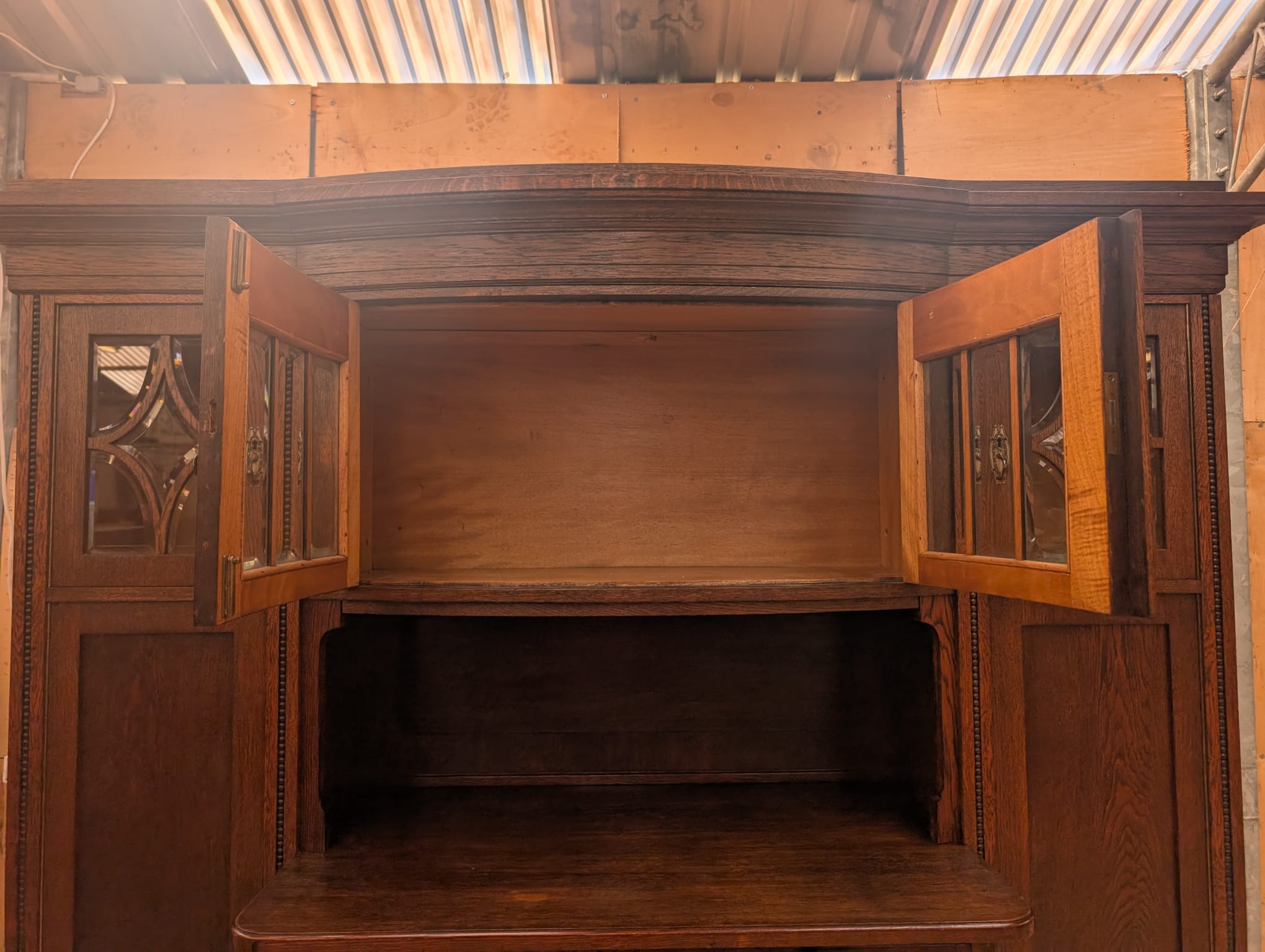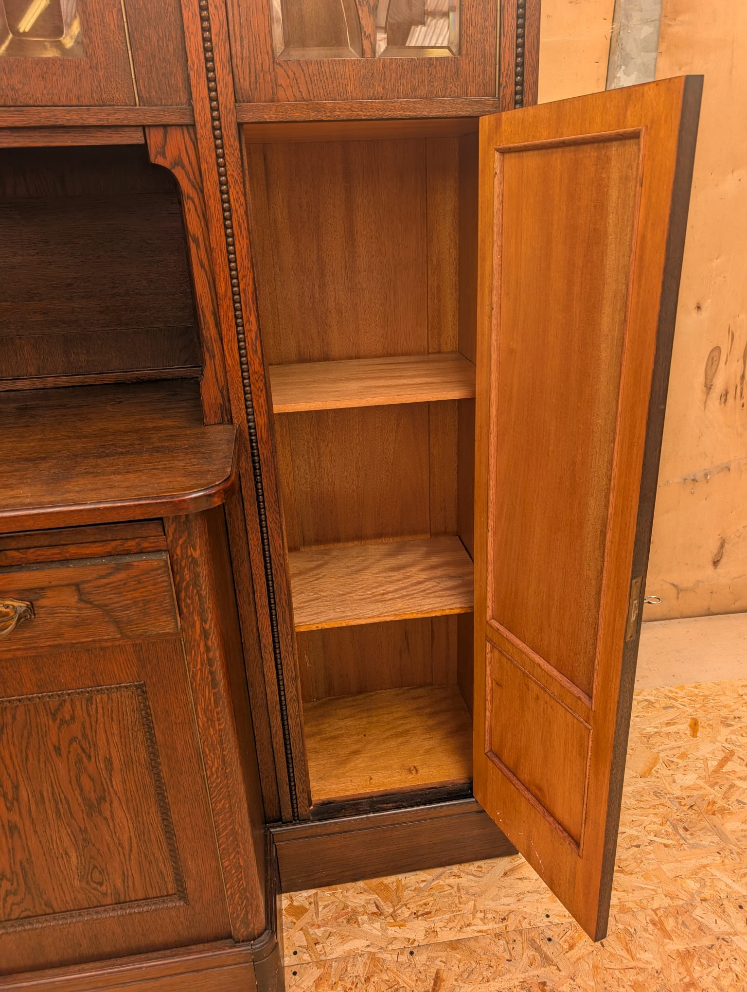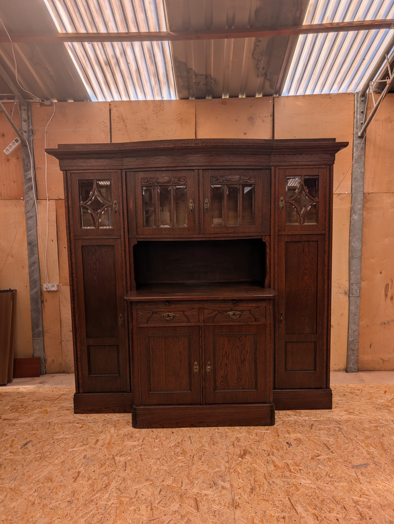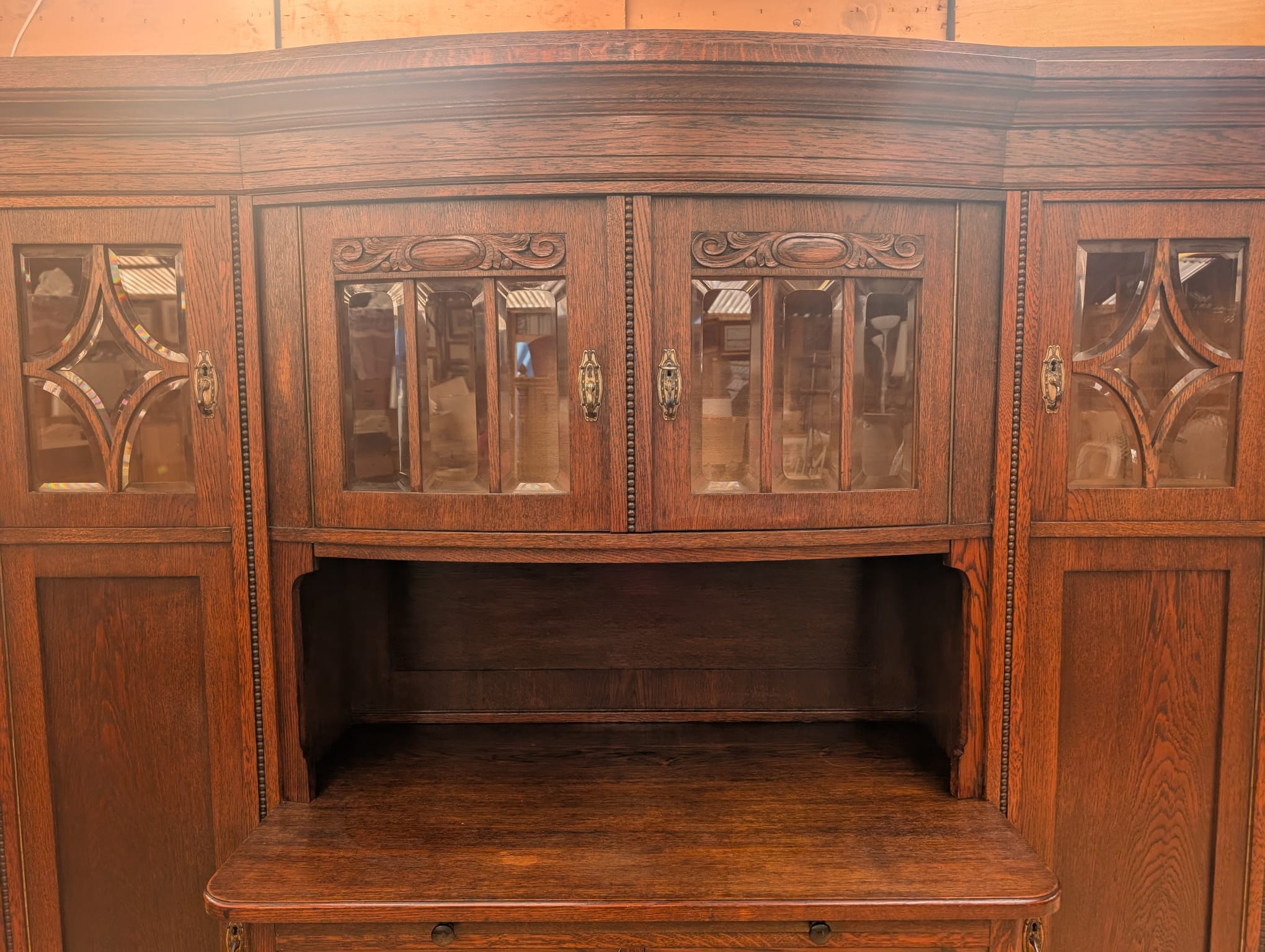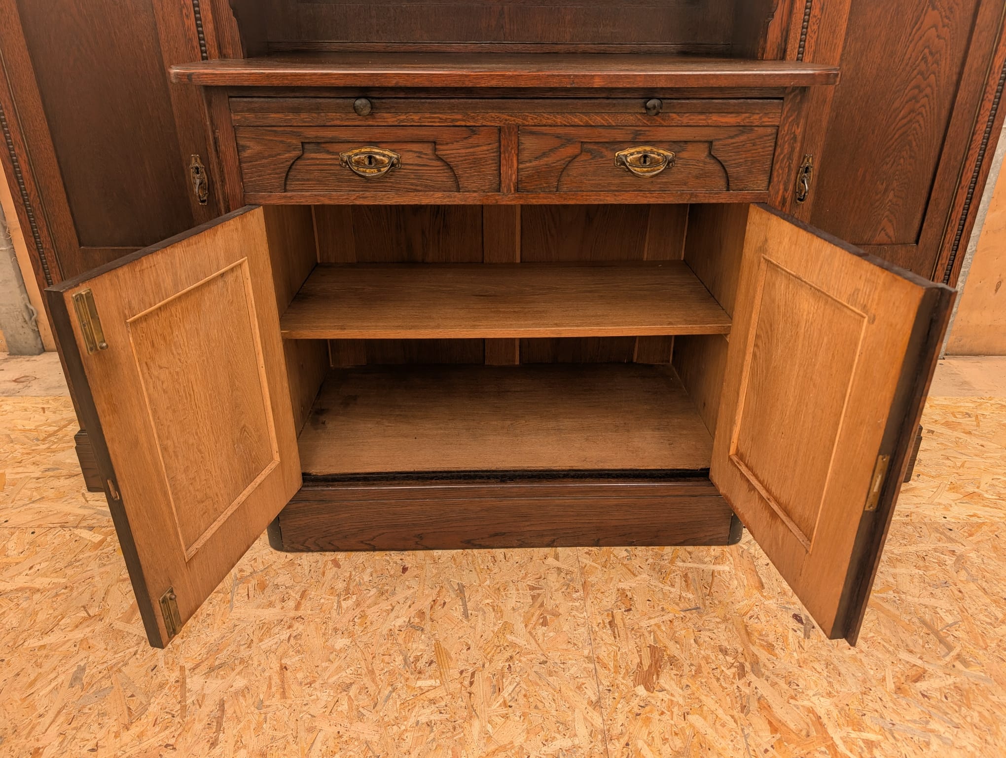 In the middle section, a top slides out to serve as a secretary.