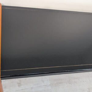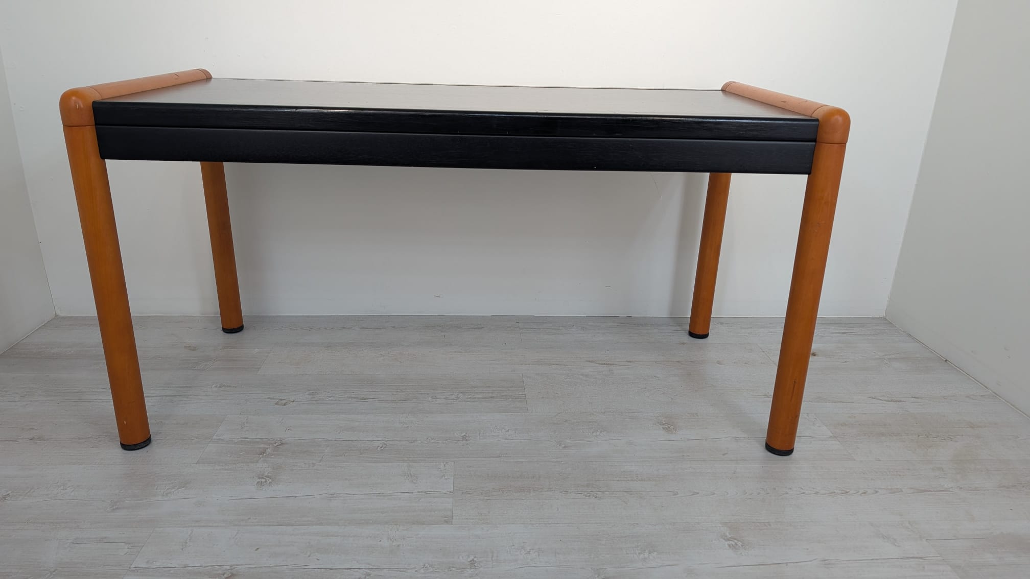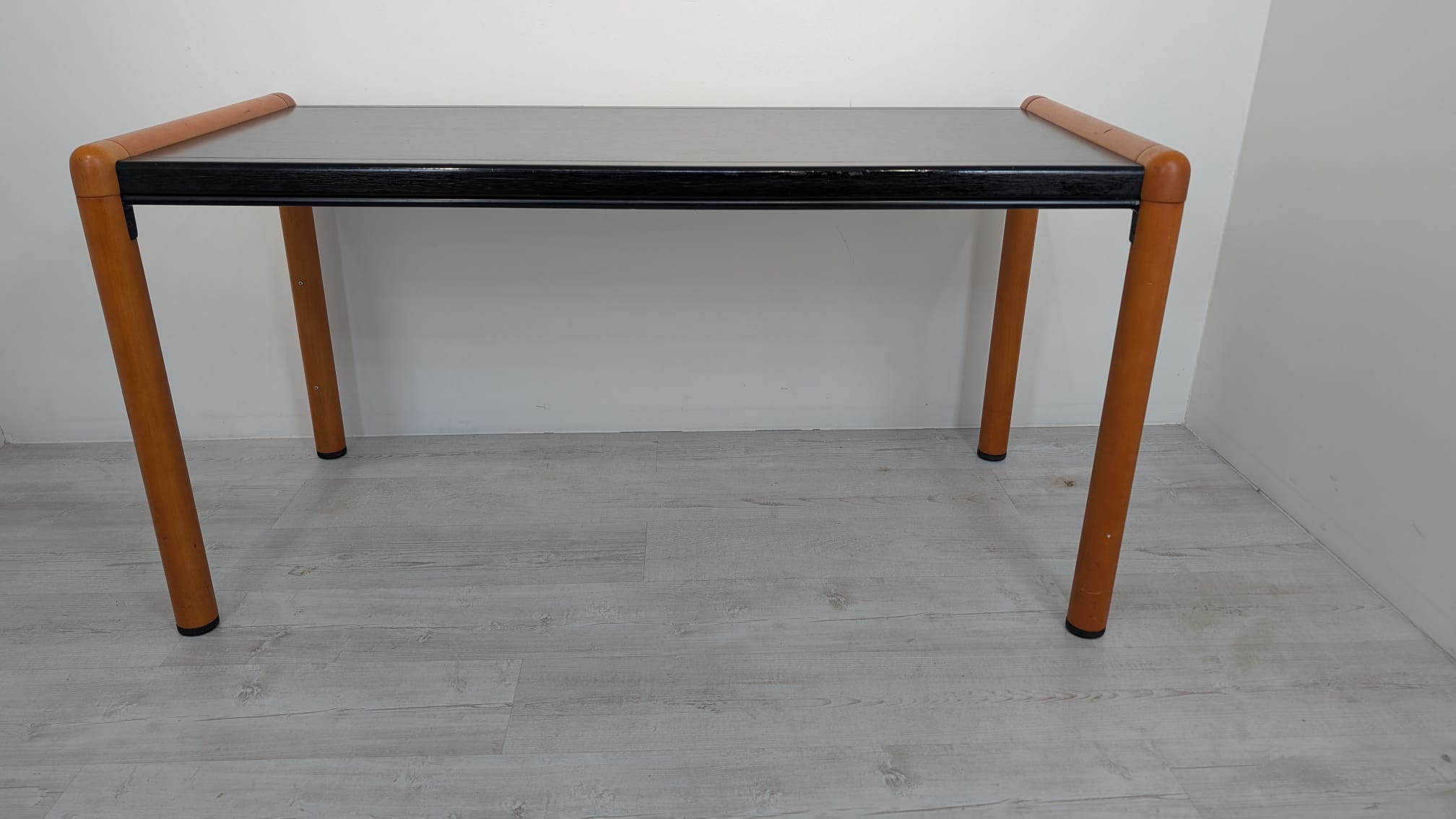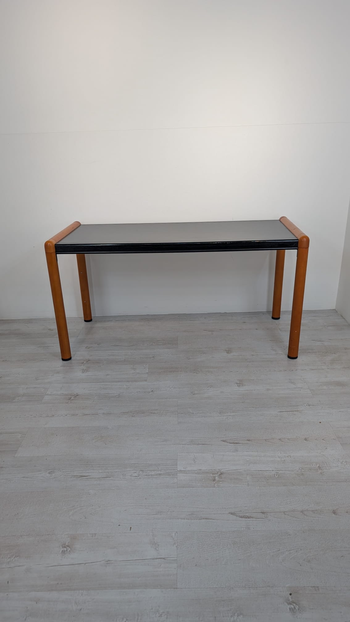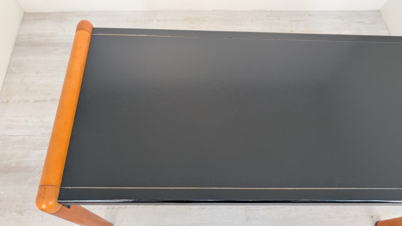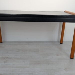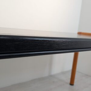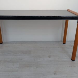 Stylish, double-sided, modernist mid-century style desk. Top in black, legs in wood. Furniture in good condition, suitable for home or office use.