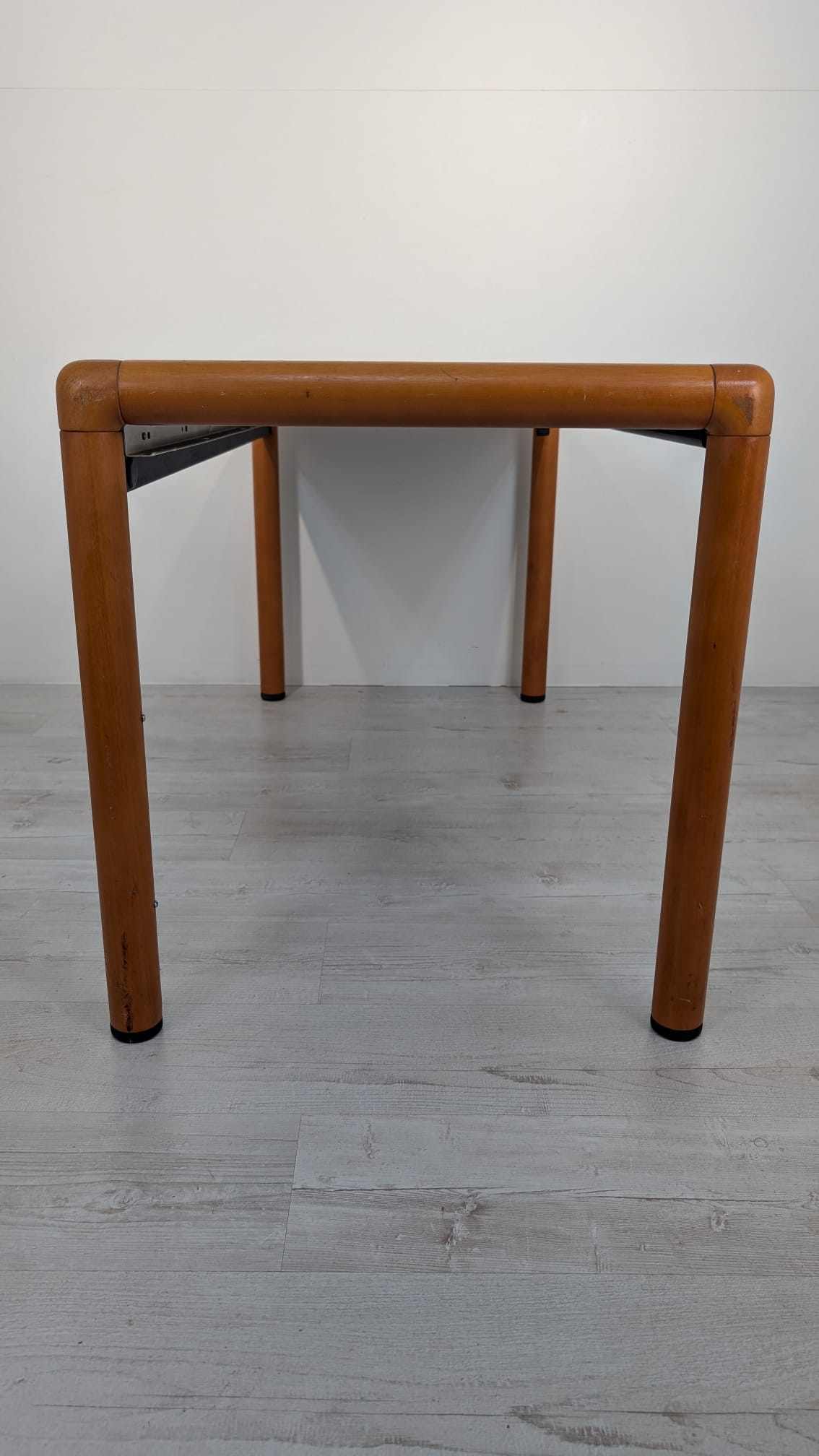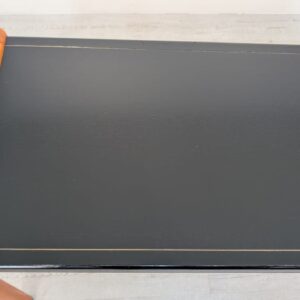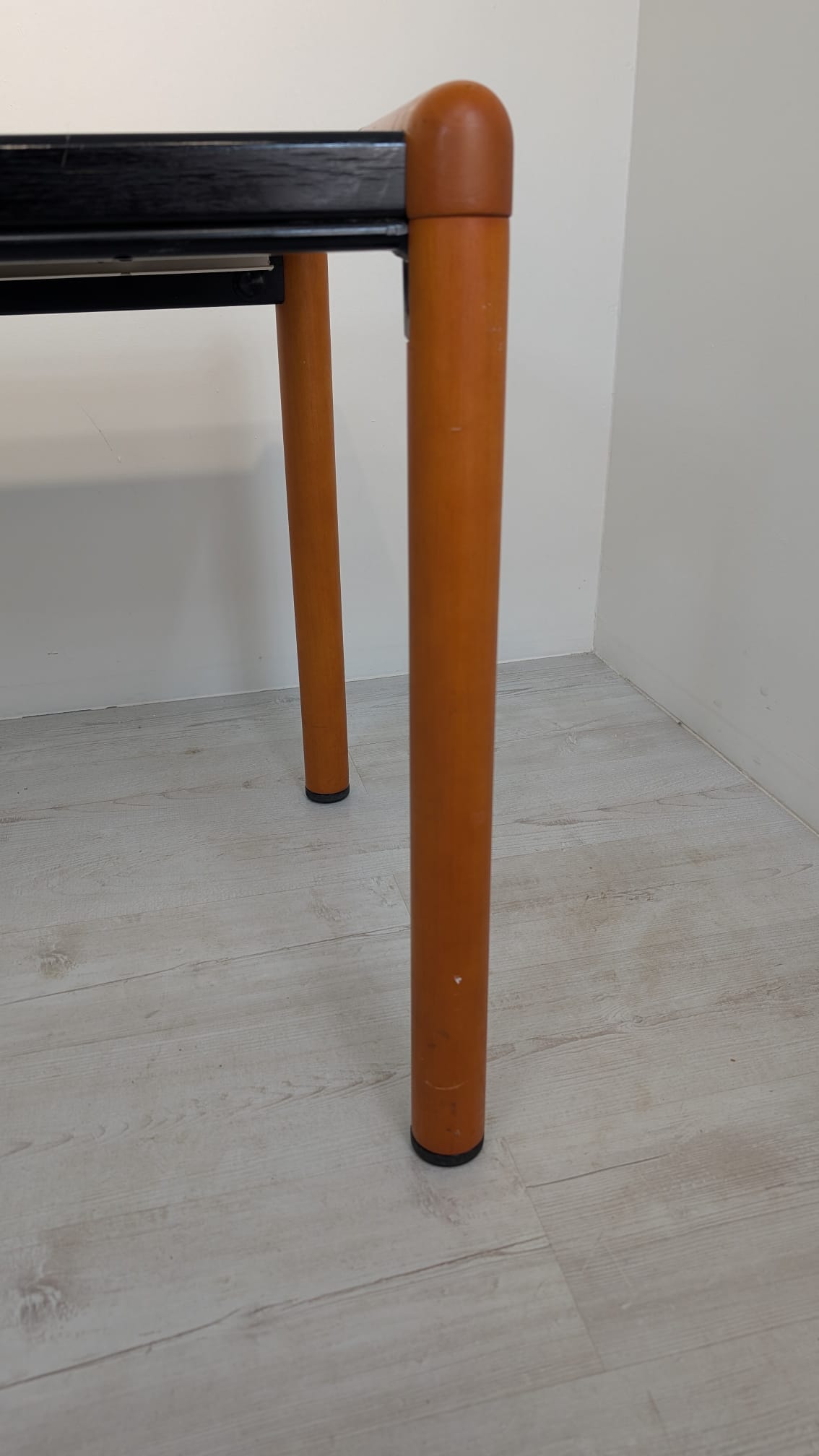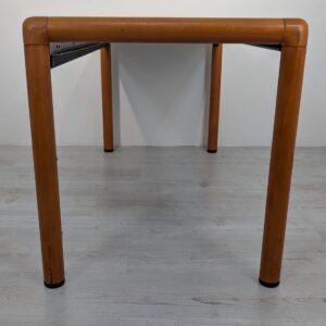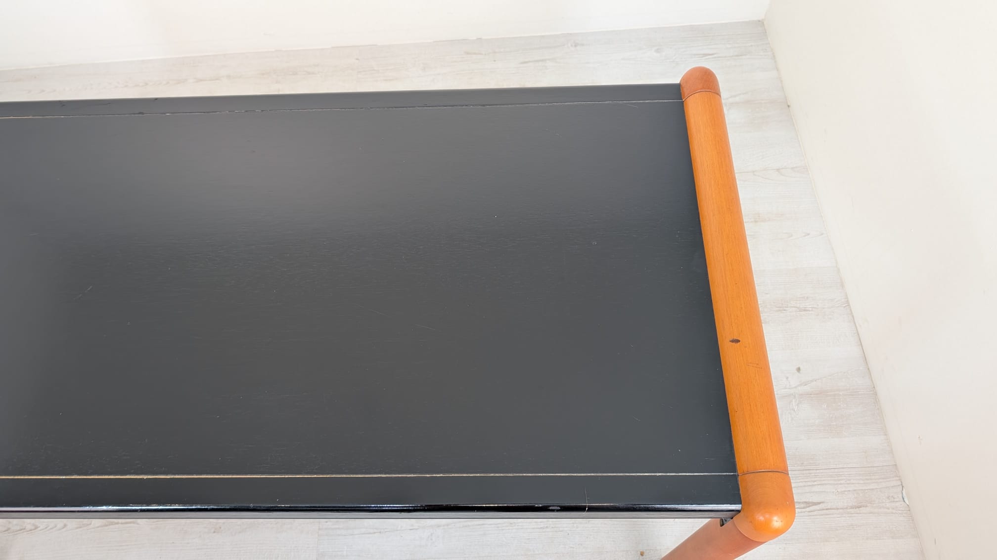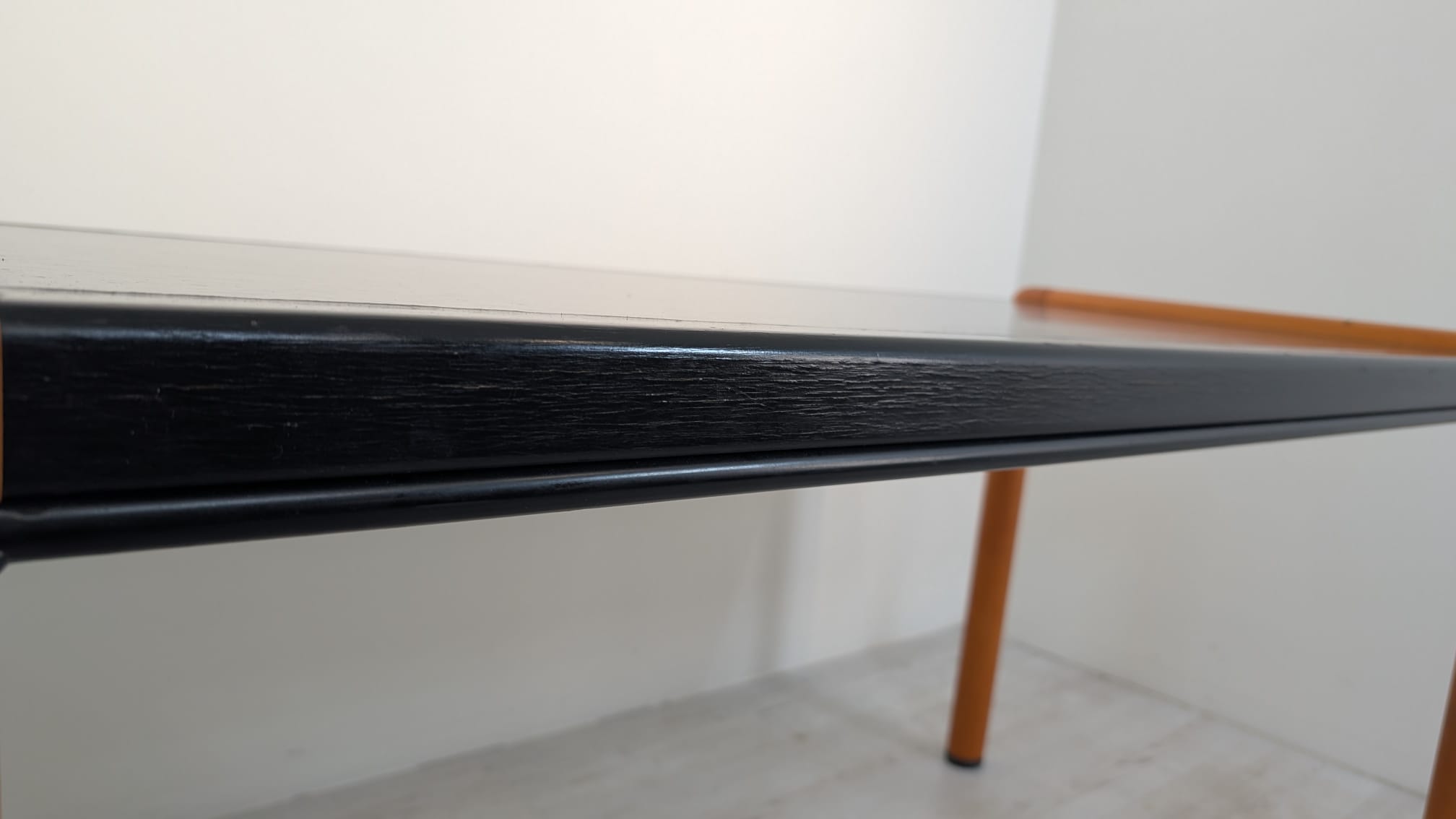 Stylish, double-sided, modernist mid-century style desk. Top in black, legs in wood. Furniture in good condition, suitable for home or office use.