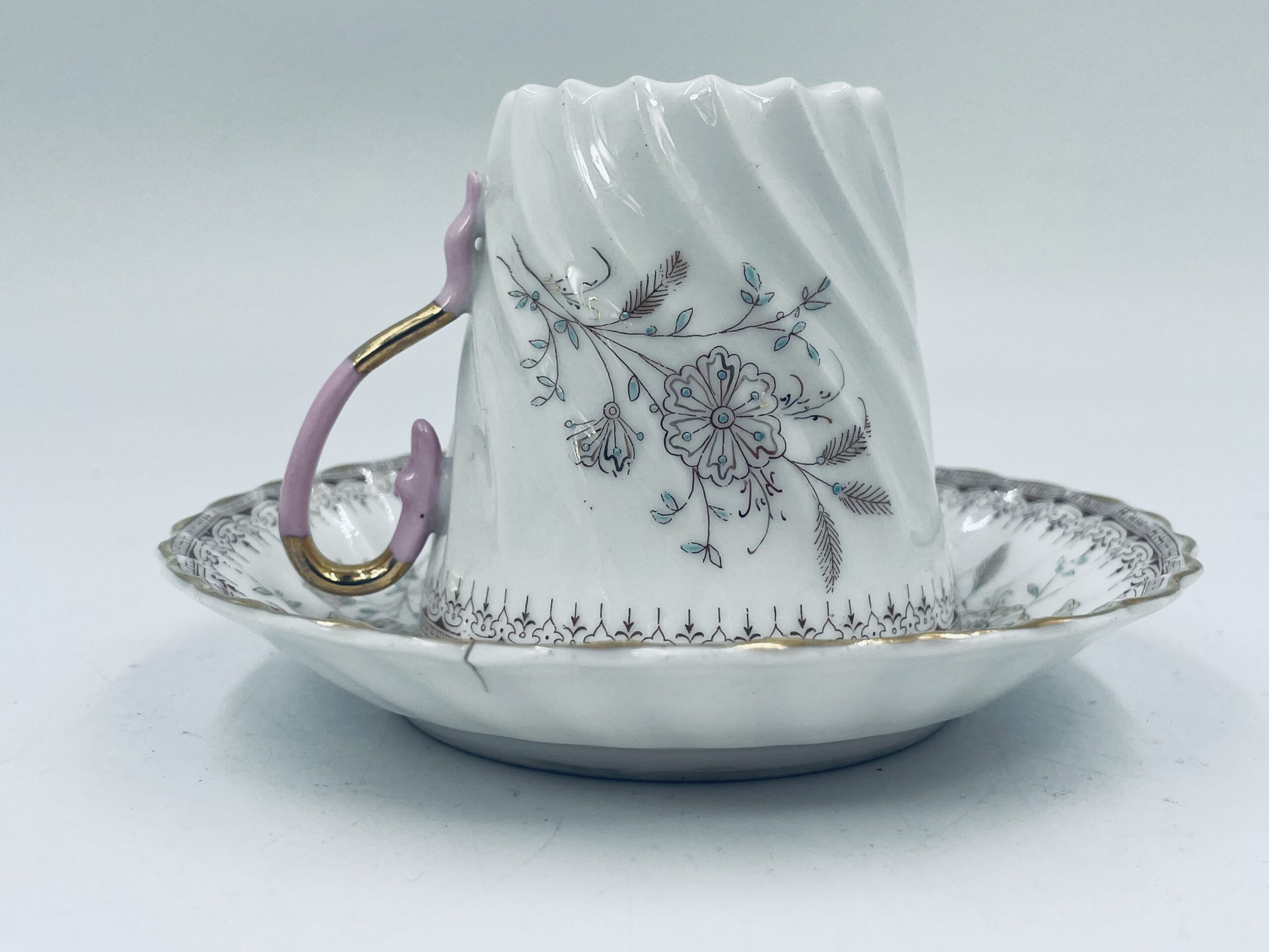 A beautiful Art Nouveau duo set in fine white porcelain with beautiful floral decoration.