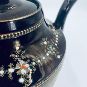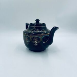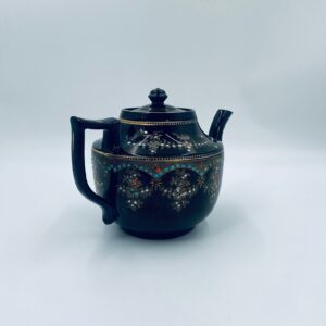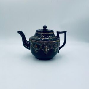 Imbryk do herbaty, wyprodukowany przez angielską firmę Price Bros (Burslem) Ltd, która działała w latach 1896-1934, wykonany z wysokiej jakości ceramiki. Charakteryzuje się brązowym szkliwem i misternym, wielokolorowym, emaliowanym zdobieniem w stylu wiktoriańskim, ze złotymi akcentami. Jest to przedmiot kolekcjonerski, ceniony za swoje rzemiosło i wiek. Posiada przetarcia na złoceniu.