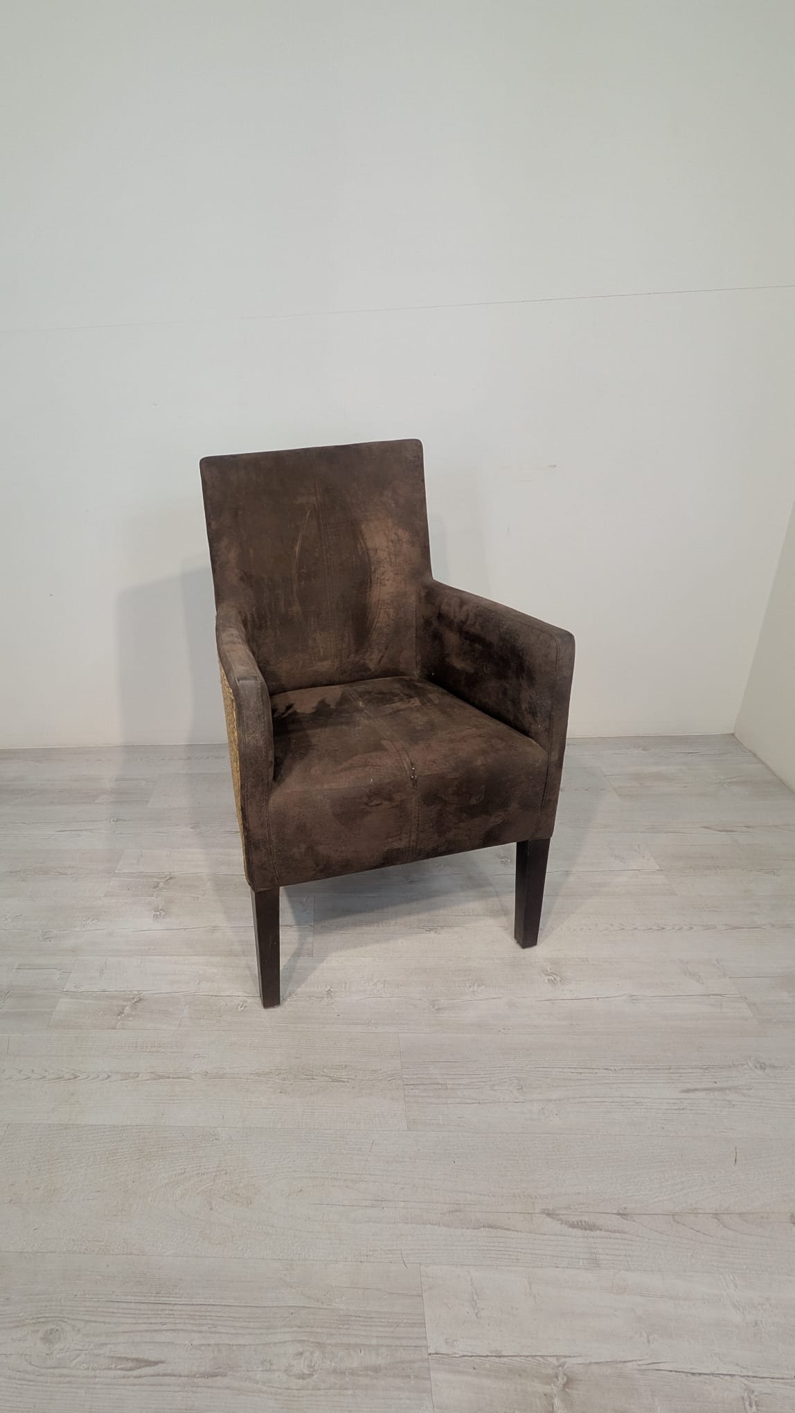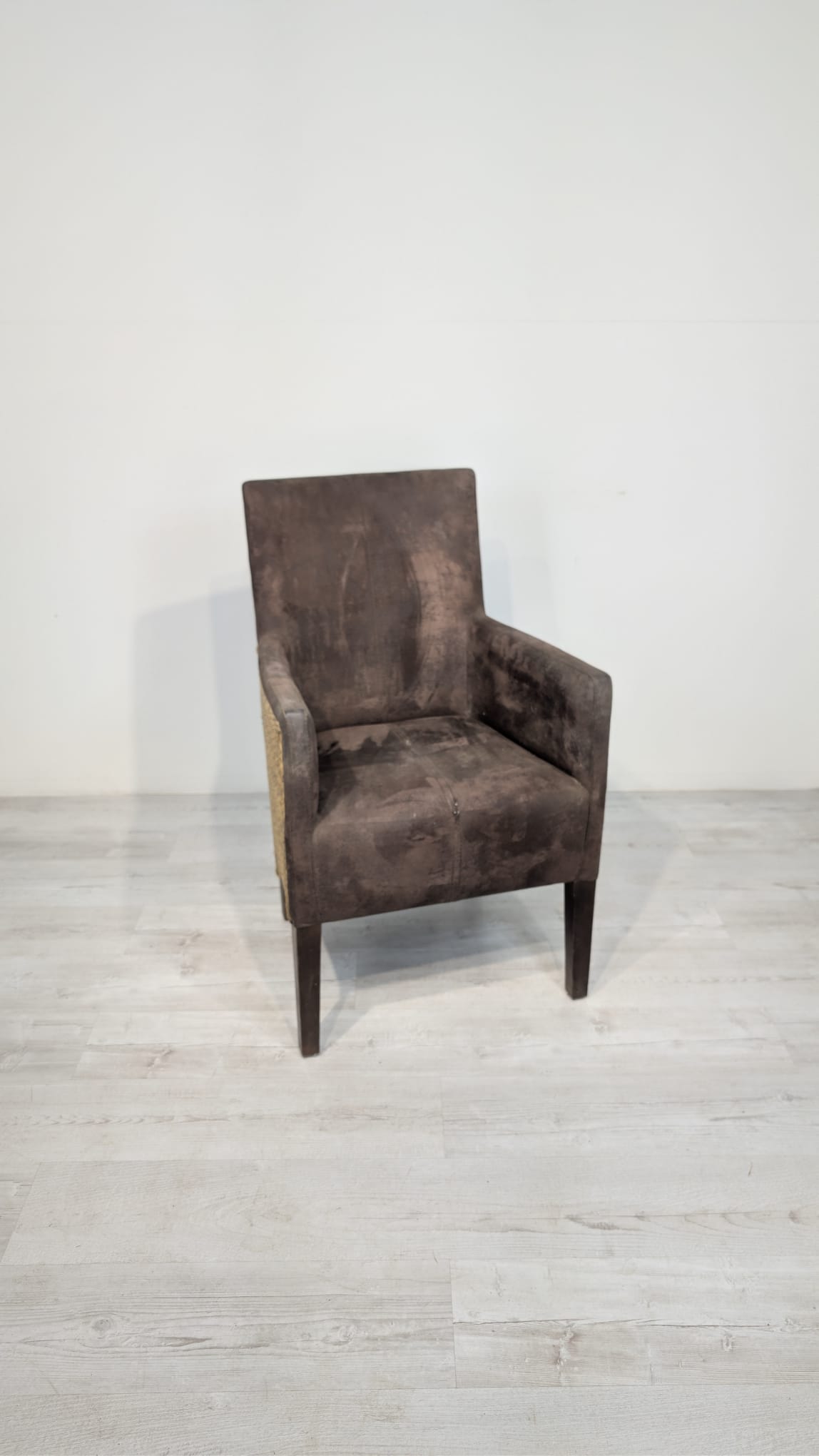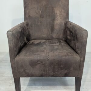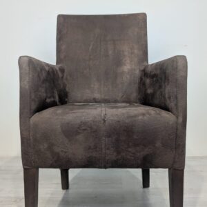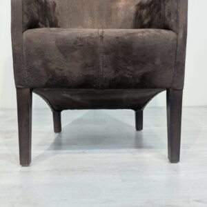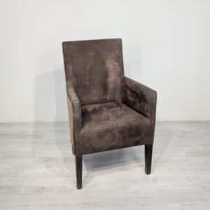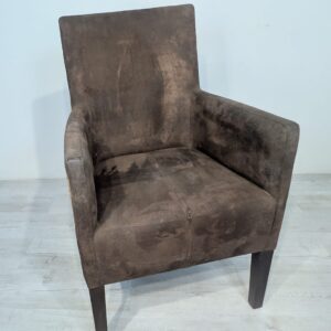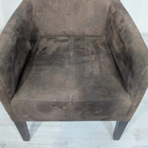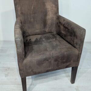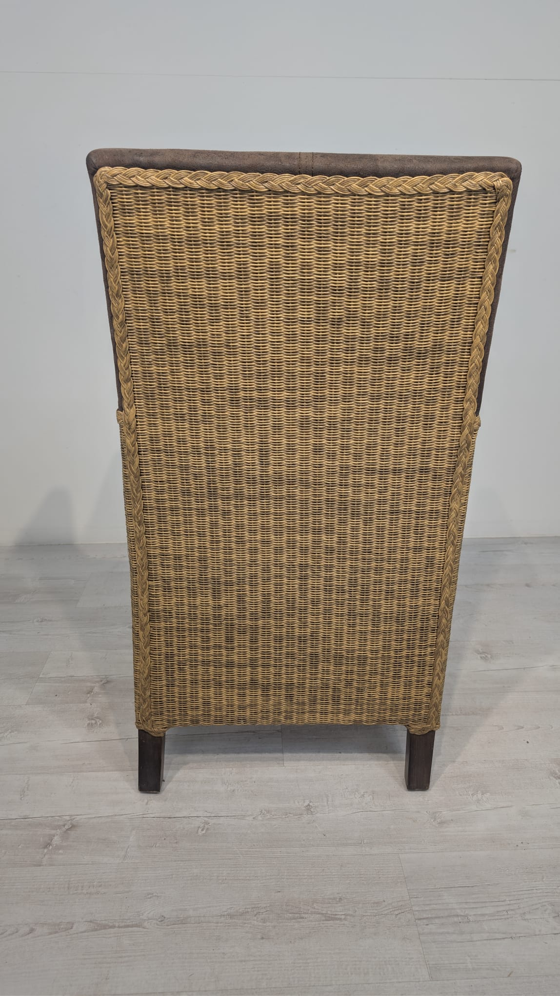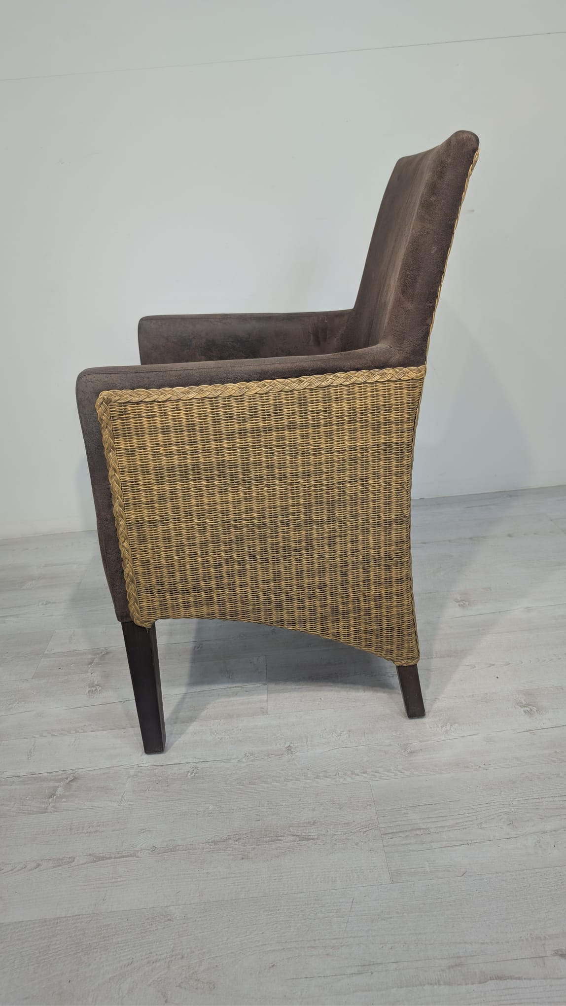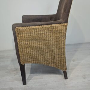 Eleganckie fotel rattanowe w ciemnobrązowym kolorze. Mebel ma prosty, minimalistyczny design, który pasuje do różnych stylów aranżacji wnętrz. Fotel jest używane, ale w dobrym stanie. Może być dobrym wyborem do salonu, jadalni lub sypialni.