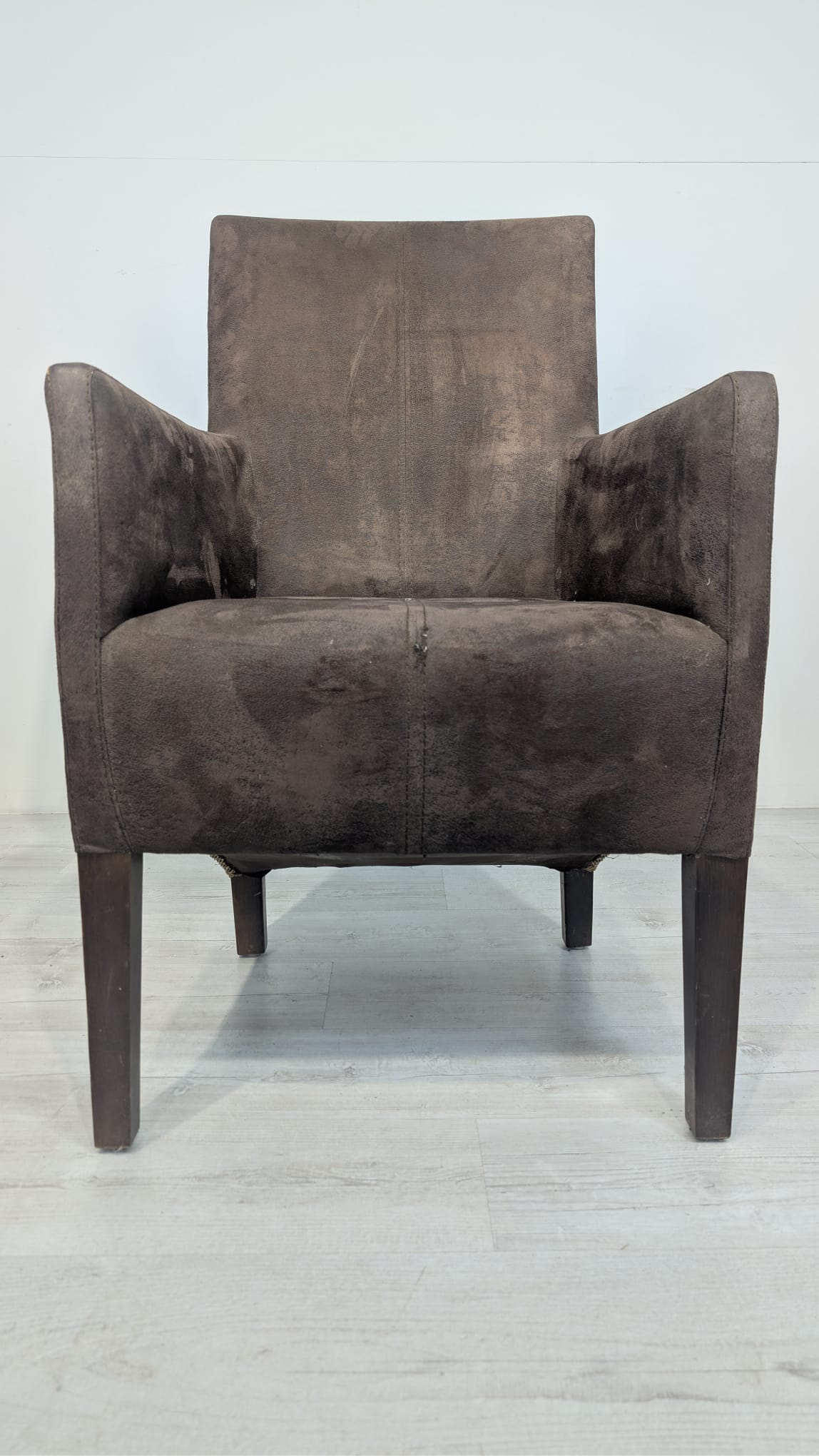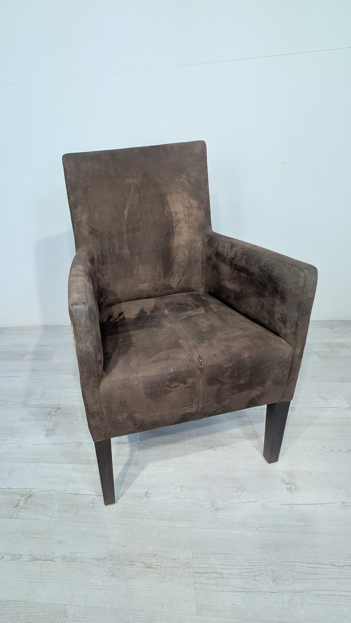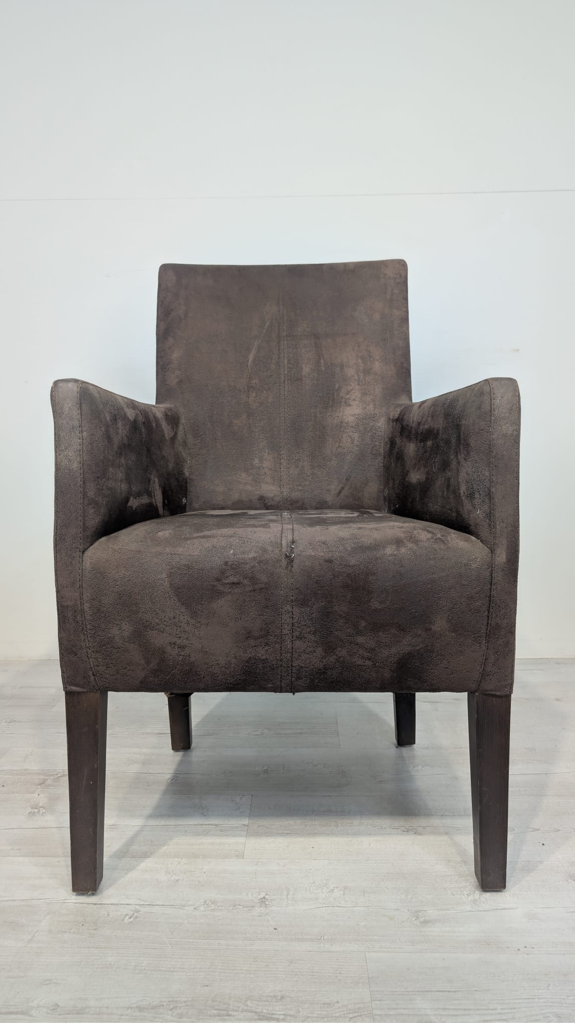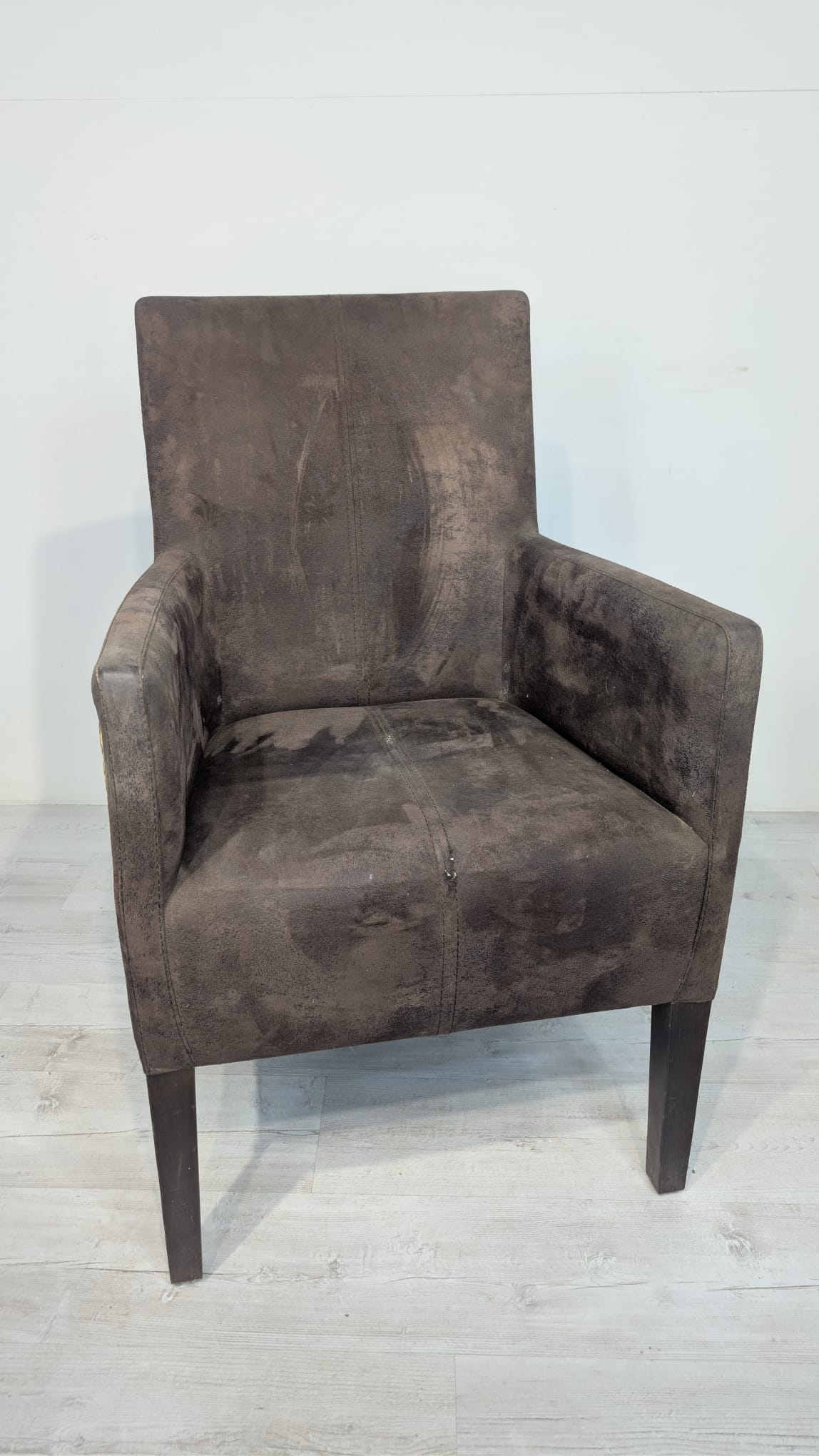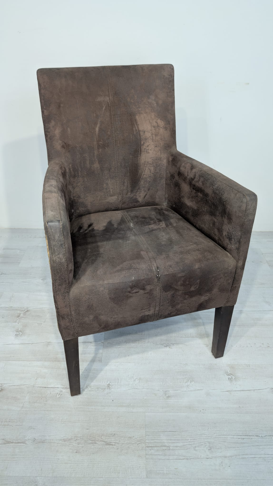 Eleganckie fotel rattanowe w ciemnobrązowym kolorze. Mebel ma prosty, minimalistyczny design, który pasuje do różnych stylów aranżacji wnętrz. Fotel jest używane, ale w dobrym stanie. Może być dobrym wyborem do salonu, jadalni lub sypialni.