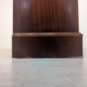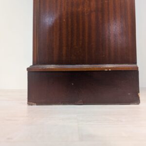 The bookcase has damage at the base.