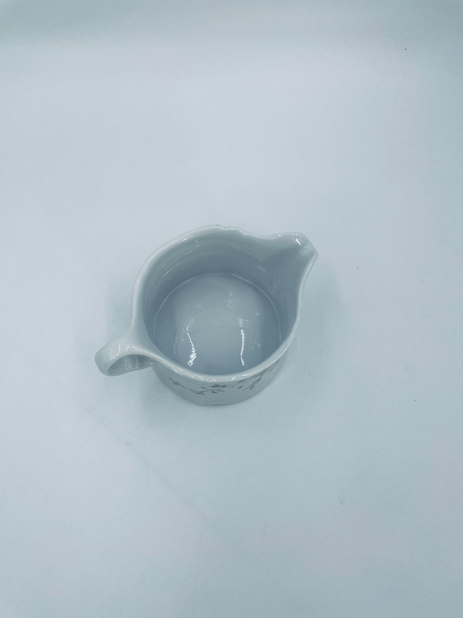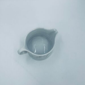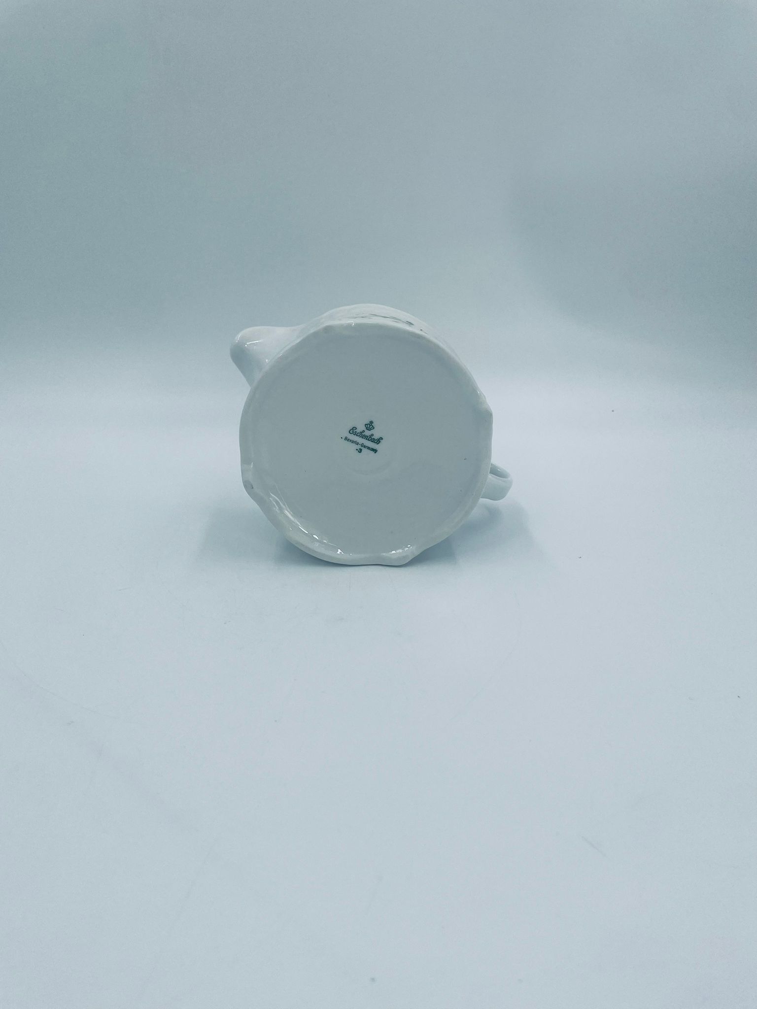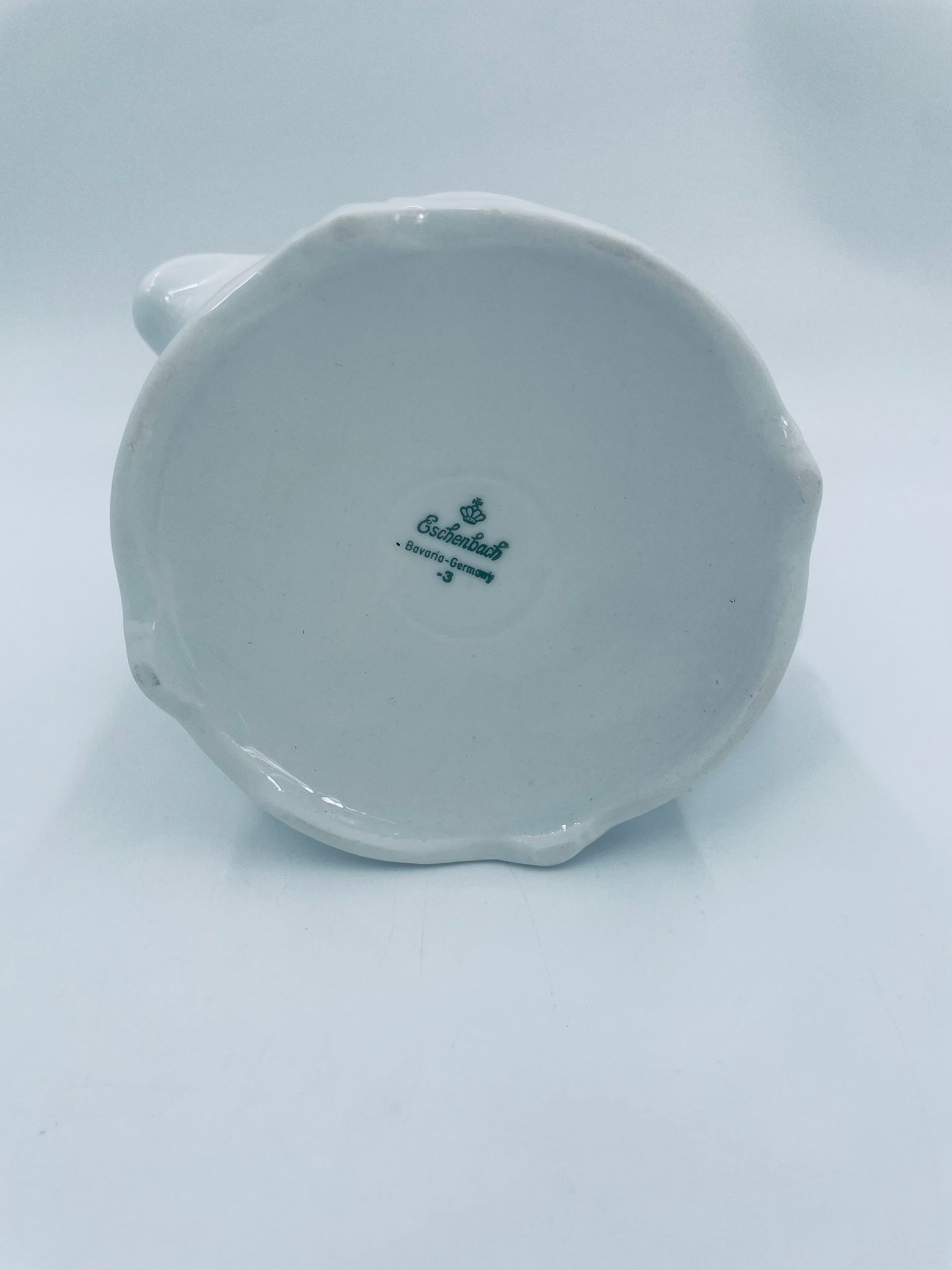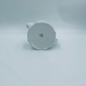 Saucepan by the Eschenbach Bavaria label, made of high-quality white porcelain. The saucepan with decorative handle, is characterised by a wavy top rim, a decorative relief pattern and a delicate pattern of pink flowers with green leaves.
